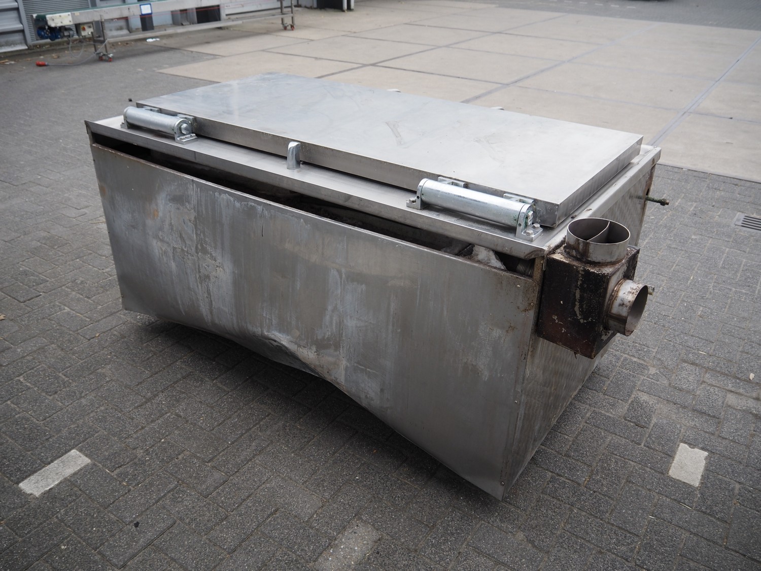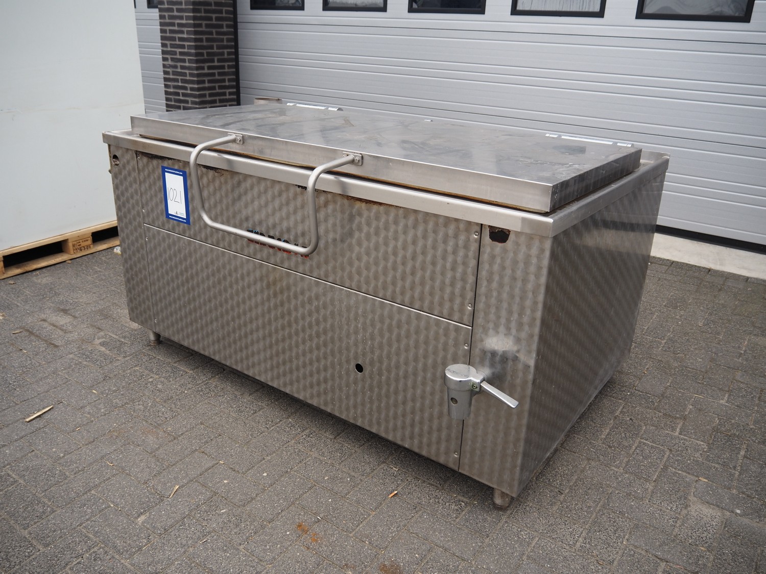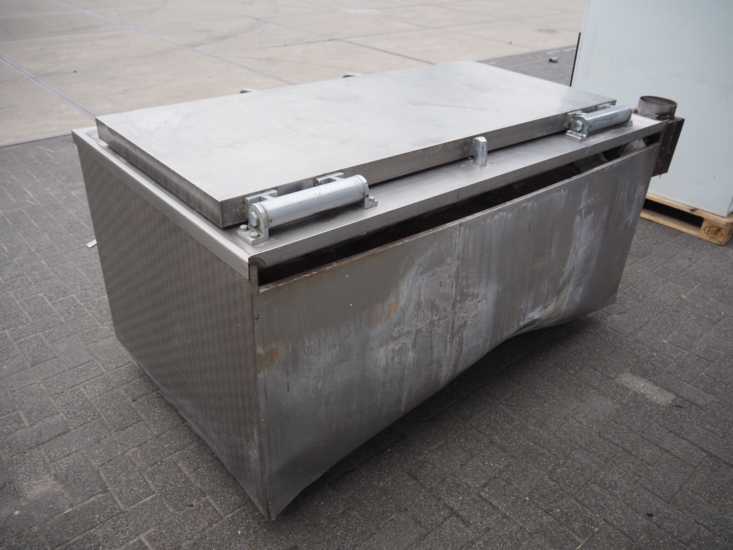 Muvero cooking vessel, inside dimensions: 1650 mm x 700 mm x 380 mm, total dimensions: 1950 mm x 1200 mm x 1000 mm.