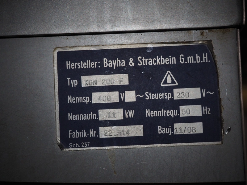 Bayha & Strackbein GmbH mobile cooking vessel, type: KDN 200 F, serial number: 22.514, year of construction: 11/2008, 400 V, 50 Hz, 11 kW, capacity: 200 liter, inside dimensions: Ø 700 mm x 550 mm, total dimensions: 1180 mm x 850 mm x 1080 mm.