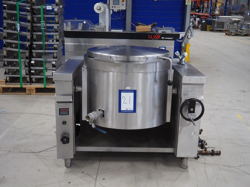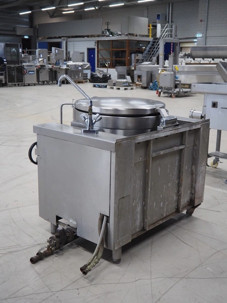 Senking tiltable cooking vessel, inside dimensions: Ø 710 mm x 400 mm, total dimensions: 1600 mm x 1130 mm x 1300 mm.