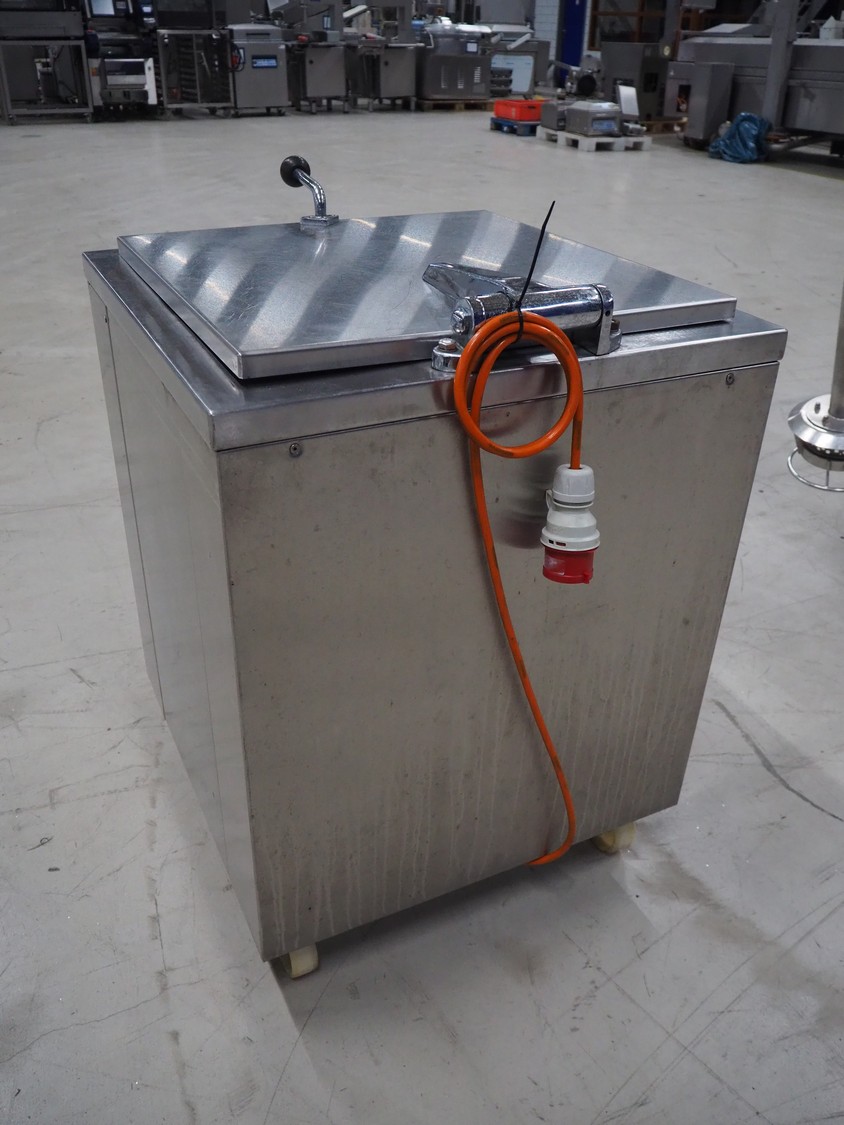 Muvero mobile cooking vessel, electric heated, inside dimensions: Ø 600 mm x 530 mm, total dimensions: 700 mm x 830 mm x 1000 mm.