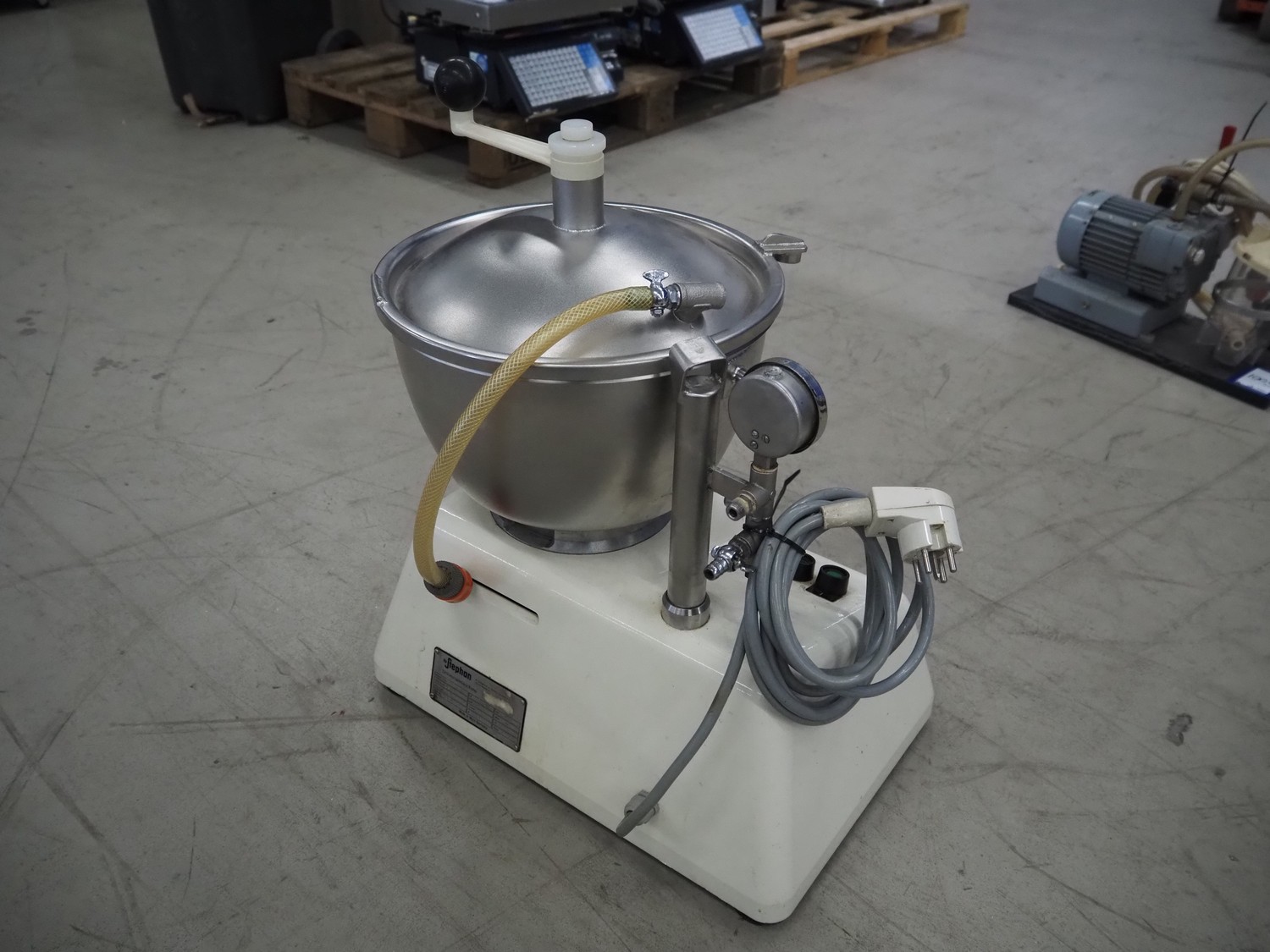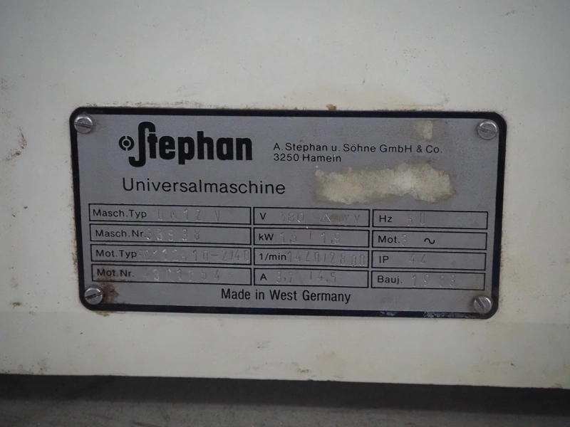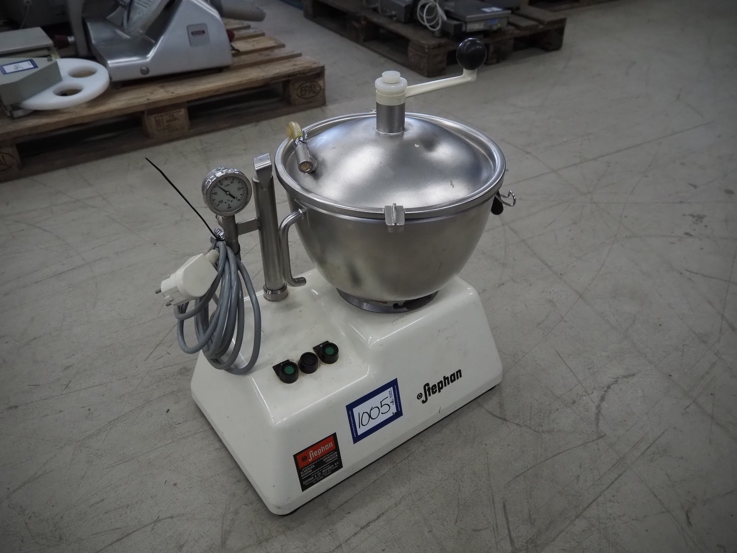 Stephan universal machine, type: UM12 V, machine number: 33838, year of construction: 1983, 380 V, 50 Hz, 3 Ph, 3.7/4.5 A, 1.5/1.9 kW, volume: 12 liter, dimensions: 530 mm x 350 mm x 550 mm. Including vacuum pump.