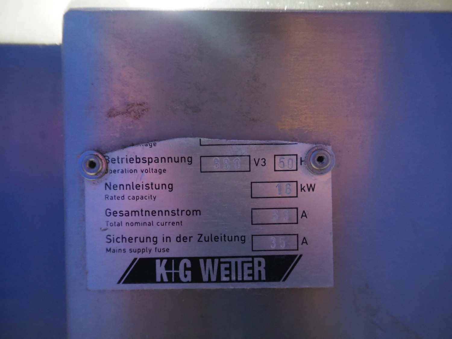 K+G Wetter cutter, model: S 45, machine number: 258 1114 , 380 V, 3 Ph, 50 Hz, 33/35 A, 16 kW, s/s bowl, volume: 45 liter, dimensions: 1460 mm x 1020 mm x 1230 mm.