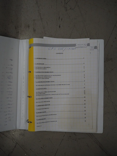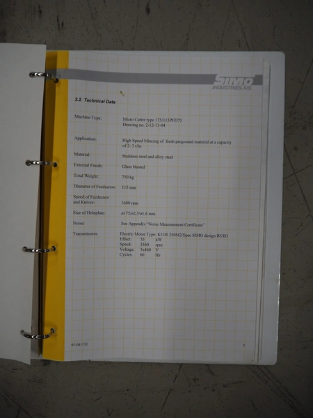 Simo micro cutter, type: 175/115PFD175, serial number: 97-041132, year of construction: 1997, diameter plate: 210 mm, total dimensions: 1400 mm x 700 mm x 1450 mm.