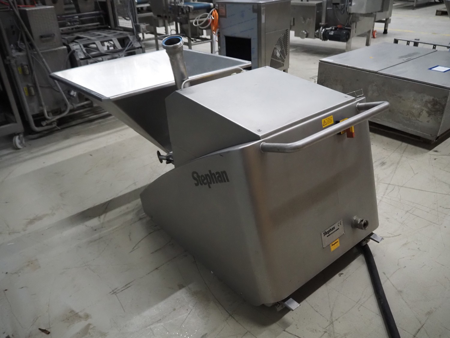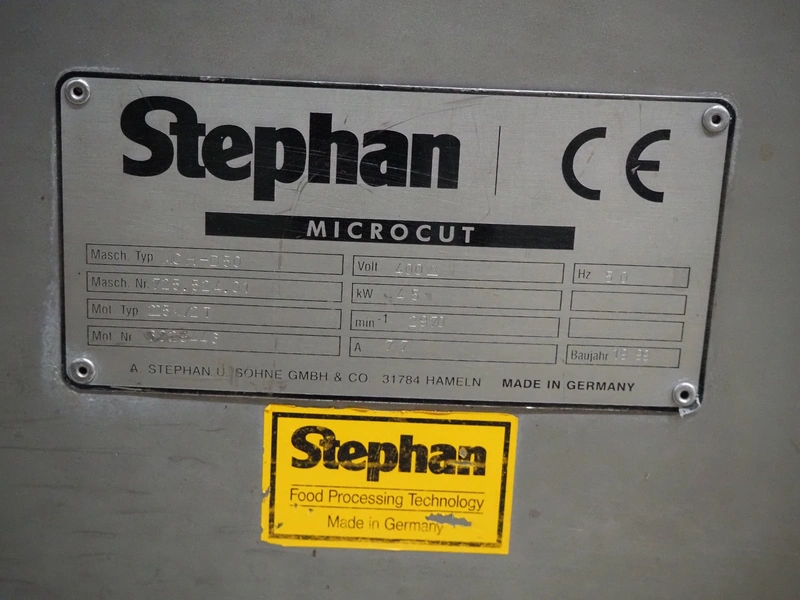 Stephan mobile micro cutter, type: MCH-D50, machine number: 725.524.01, year of construction: 1999, 400 V, 50 Hz, 77 A, 45 kW, dimensions: 1900 mm x 1030 mm x 1150 mm. With box with knives.