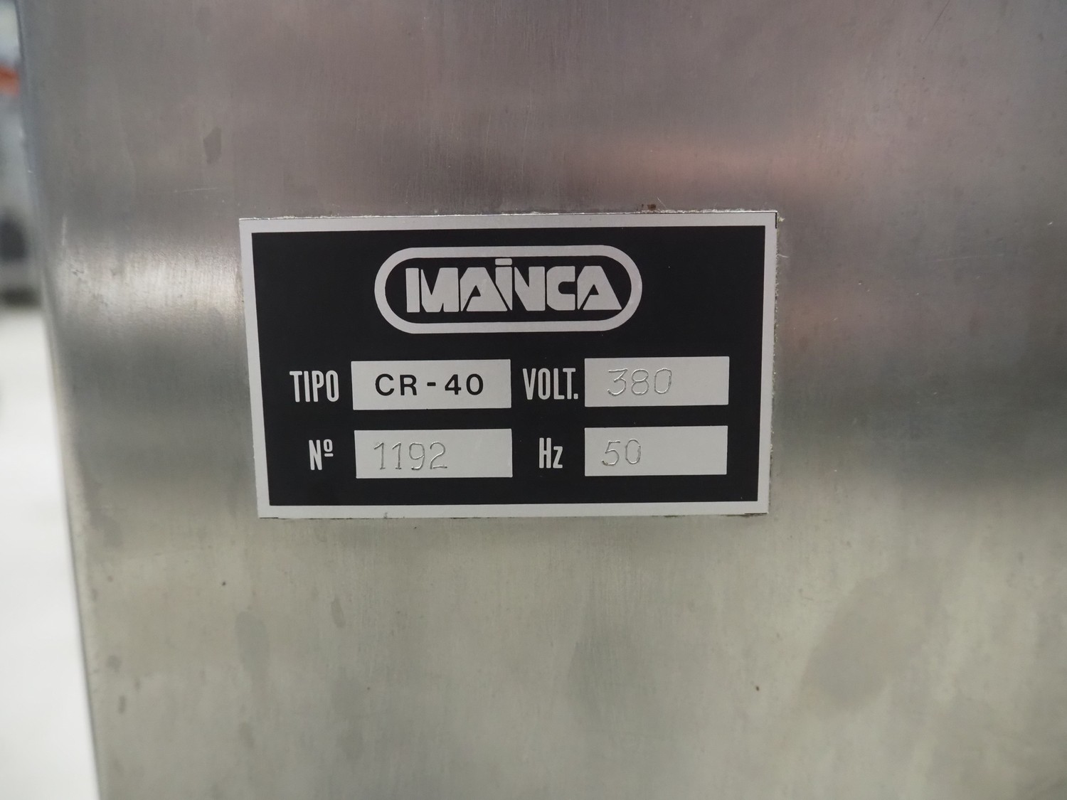 Mainca cutter, type: CR-40, number: 1192, 380 V, 50 Hz, s/s bowl, volume: 40 liter, dimensions: 1220 mm x 900 mm x 700 mm.