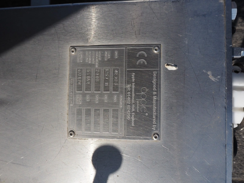 Apple International mobile depositor, model: MR 900, serial number: 1269 11, year of construction: 2008, pressure: 55 bar, diameter head: 70 mm, total dimensions: 1450 mm x 950 mm x 1040 mm. Incomplete.