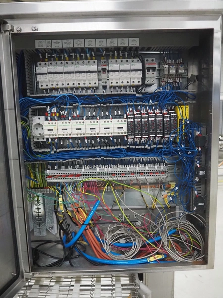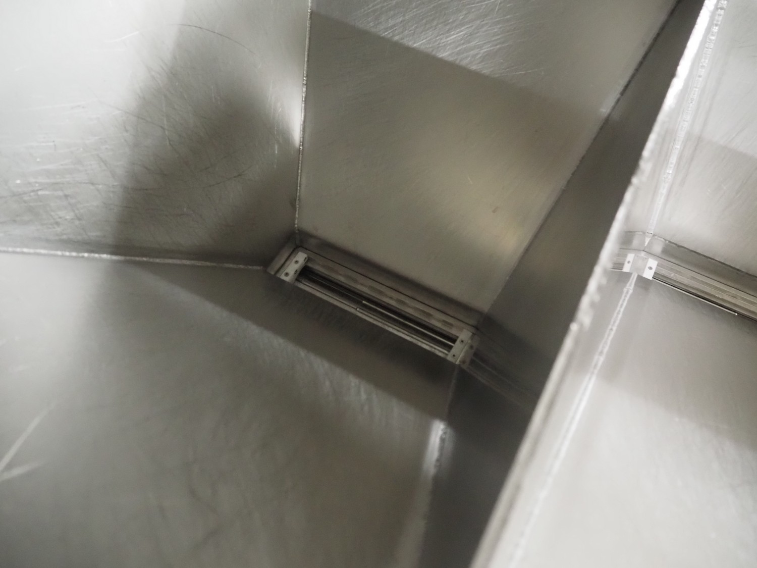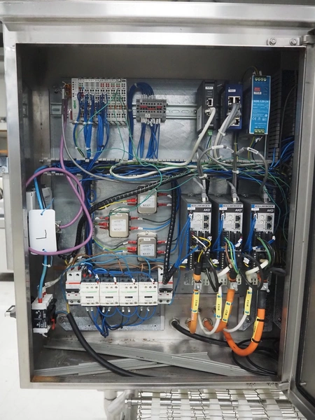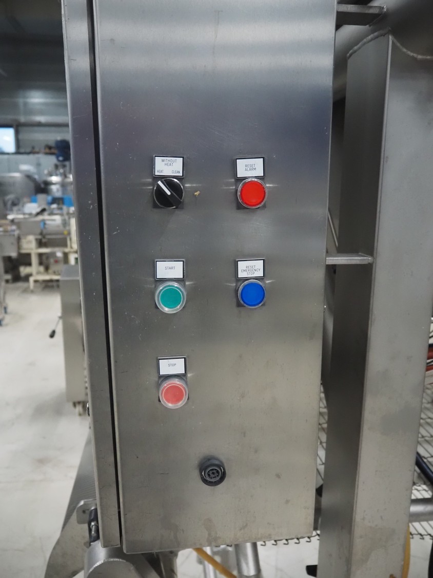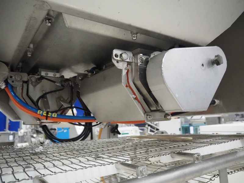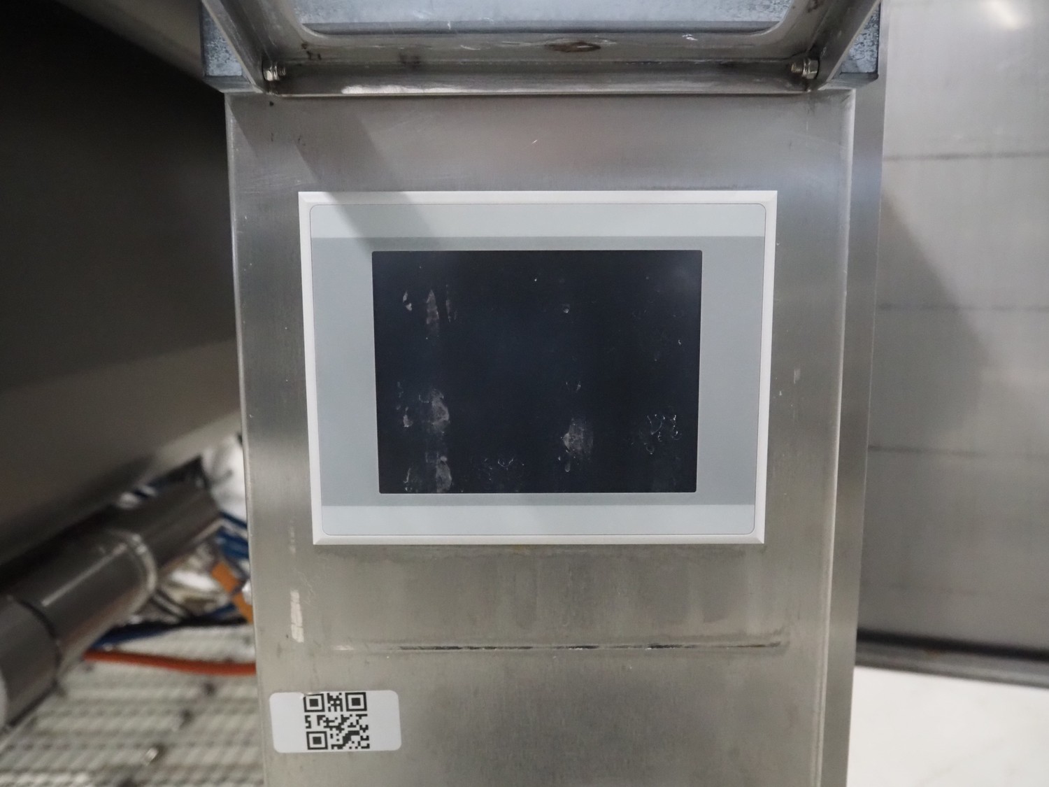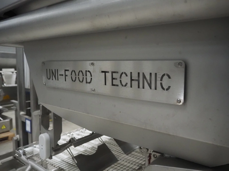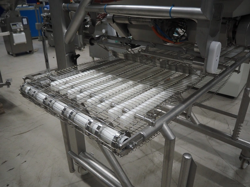 UNI-FOOD TECHNIC mobile depositor, s/s frame, s/s mesh belt, belt width: 710 mm, total dimensions: 1900 mm x 1300 mm x 2040 mm.
