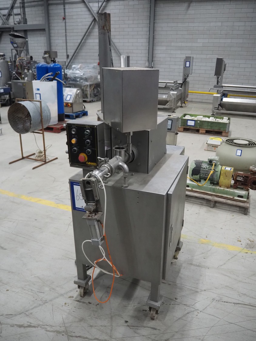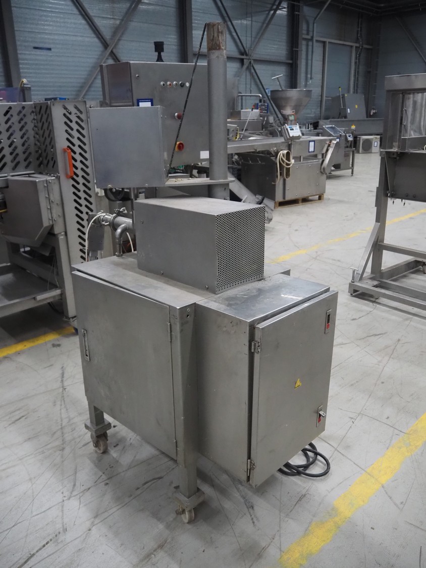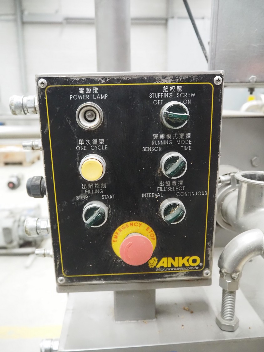 ANKO mobile depositor, model: FF-2, serial number: PO201200638-2, year of construction: 2012, 380 V, 3 Ph, 50 Hz, 500 W, 1 head, dimensions: 1300 mm x 660 mm x 1870 mm. Incomplete, missing funnel.