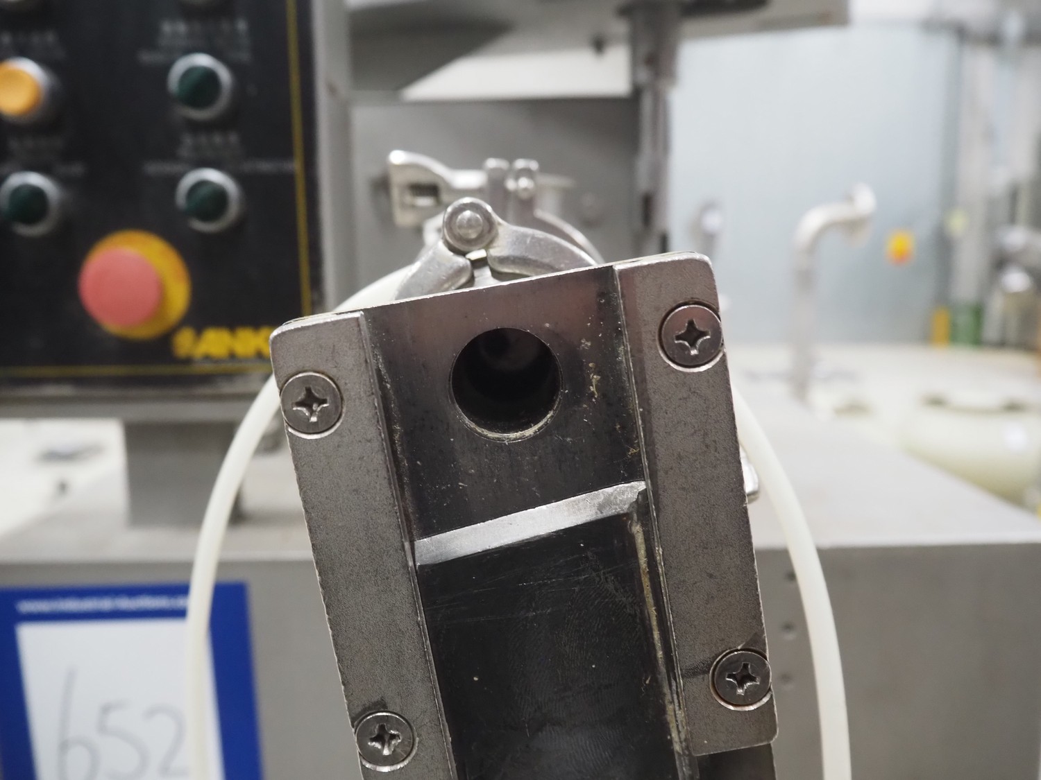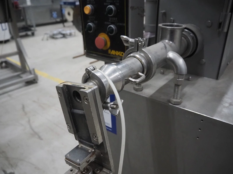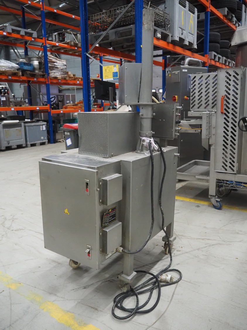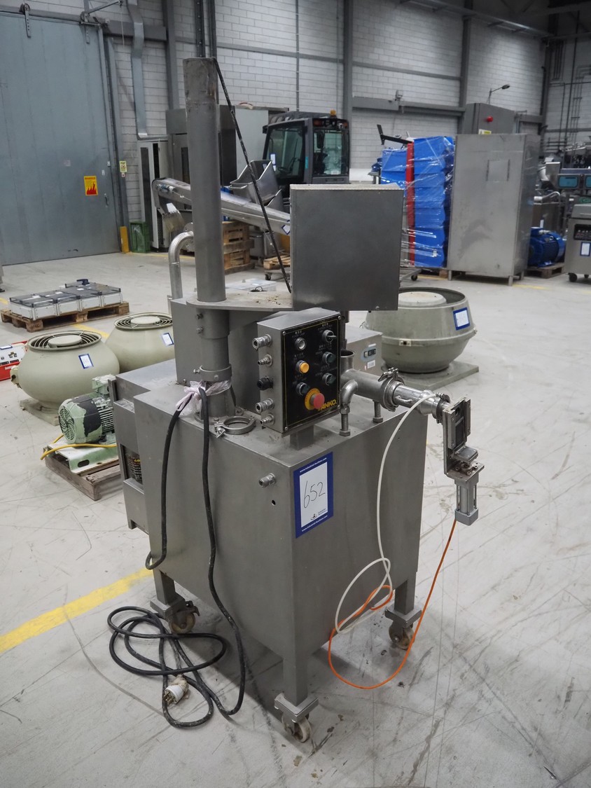 ANKO mobile depositor, model: FF-2, serial number: PO201200638-2, year of construction: 2012, 380 V, 3 Ph, 50 Hz, 500 W, 1 head, dimensions: 1300 mm x 660 mm x 1870 mm. Incomplete, missing funnel.