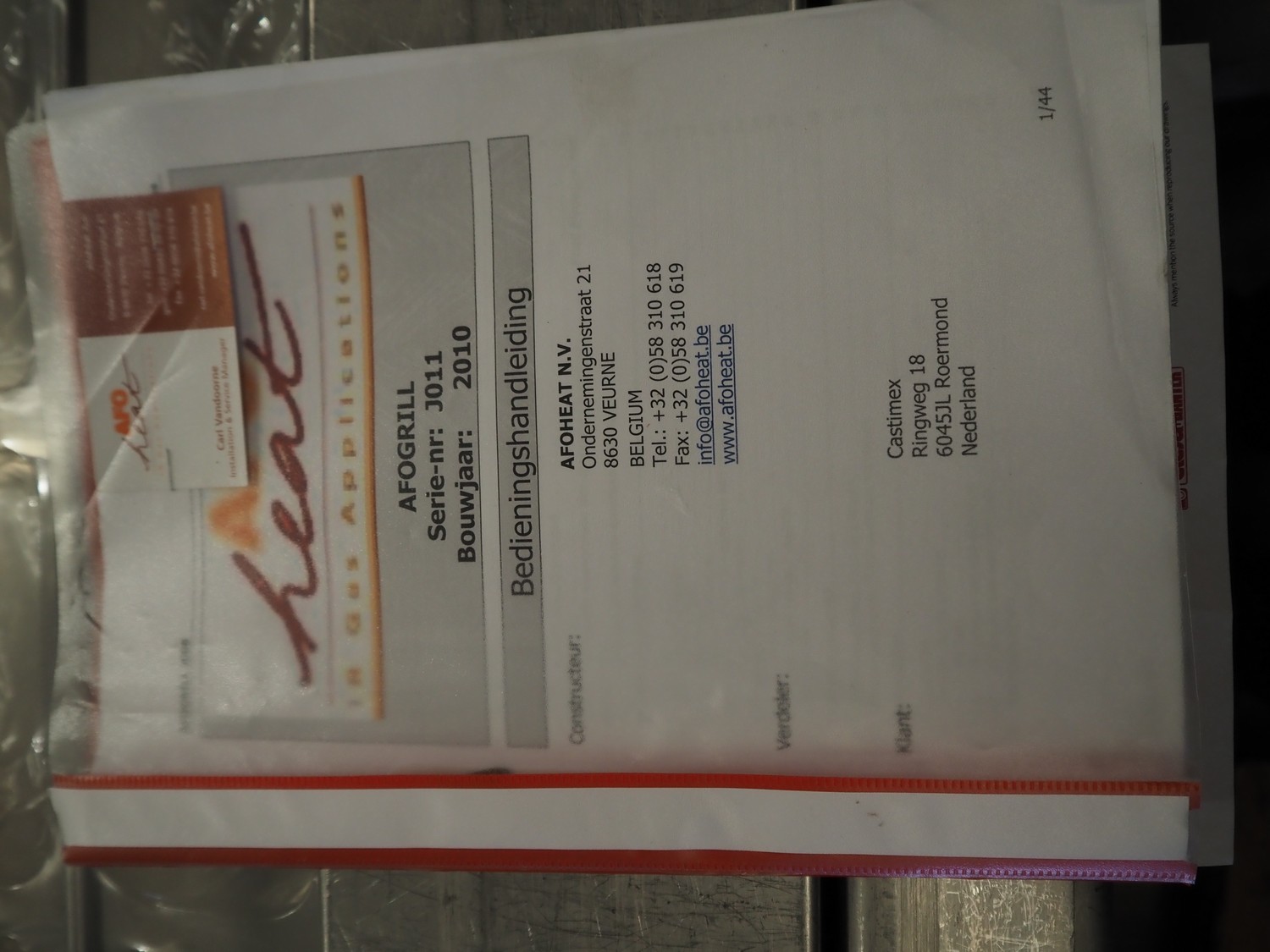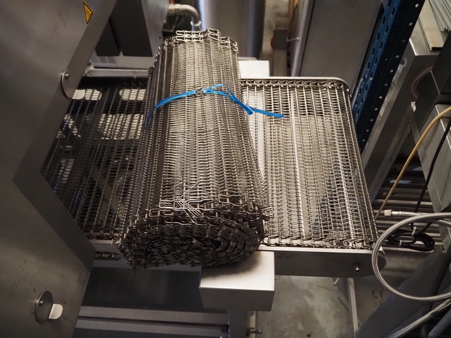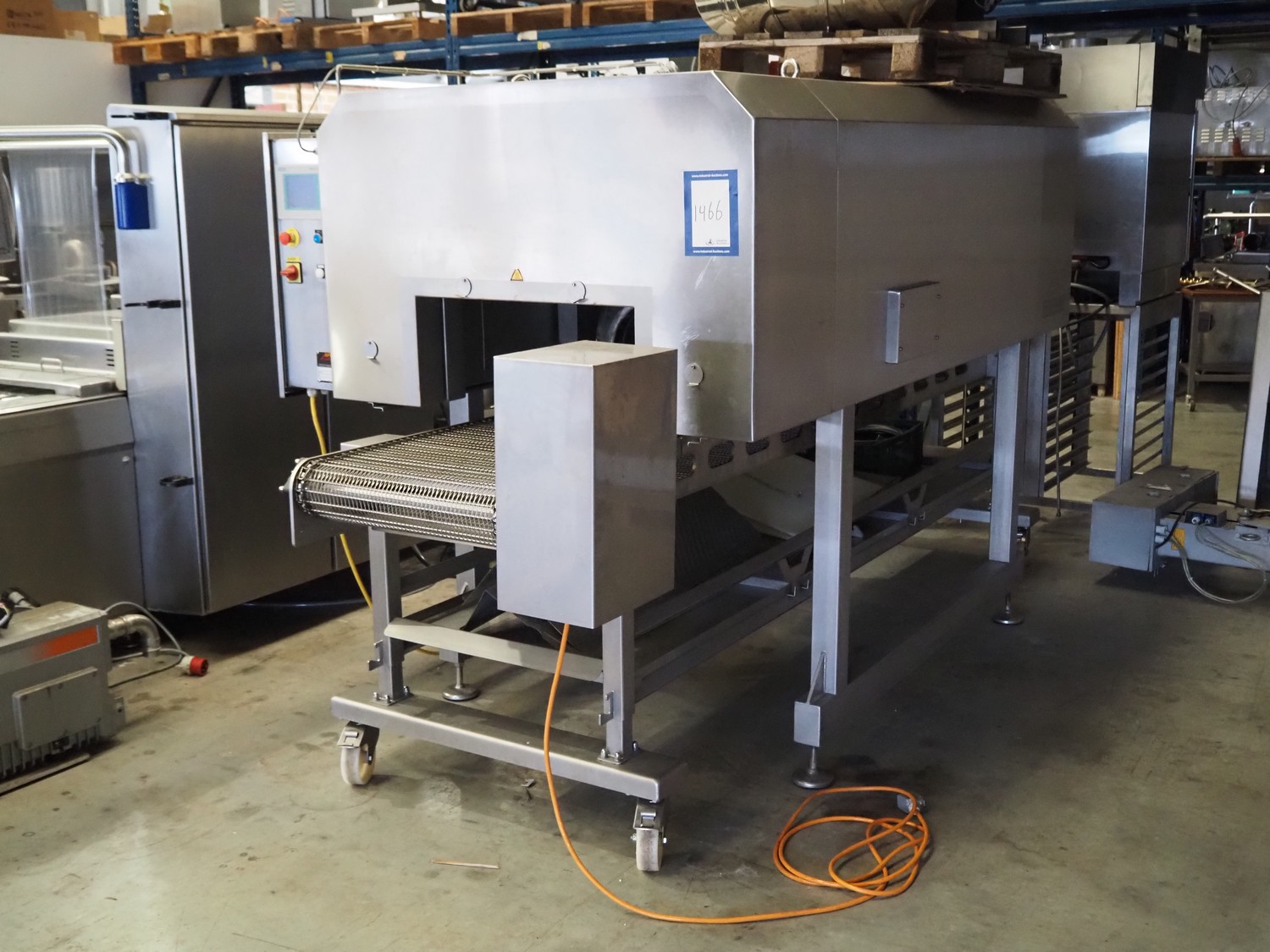 Afoheat NV infrared grill, type: AFOGRILL, serial number: J 008, year of construction: 2010, 400 V, 3 Ph, 4.2 kW, weight: 1200 kg, s/s mesh belt, belt width: 630 mm, total dimensions: 3180 mm x 1650 mm x 1900 mm.