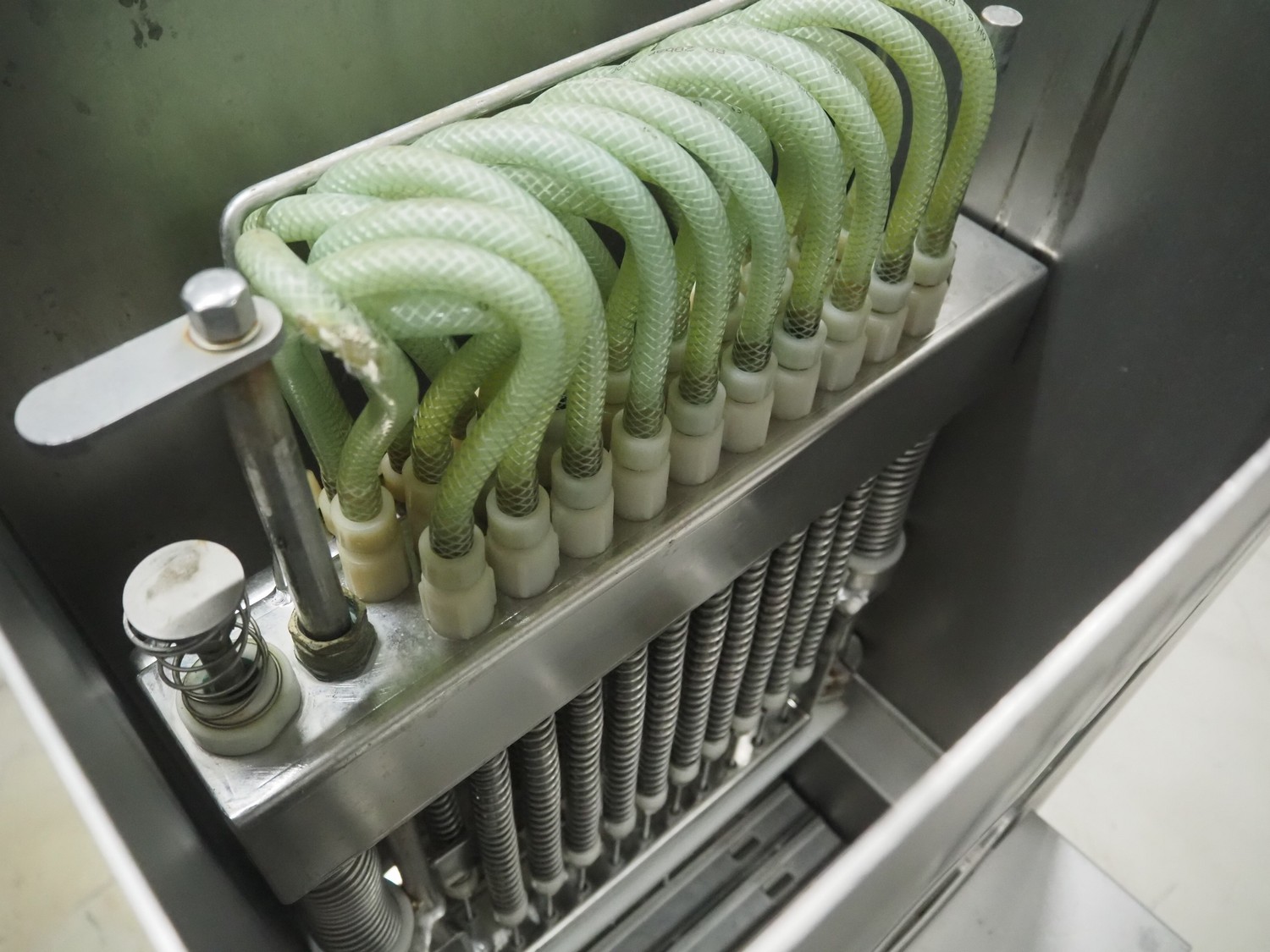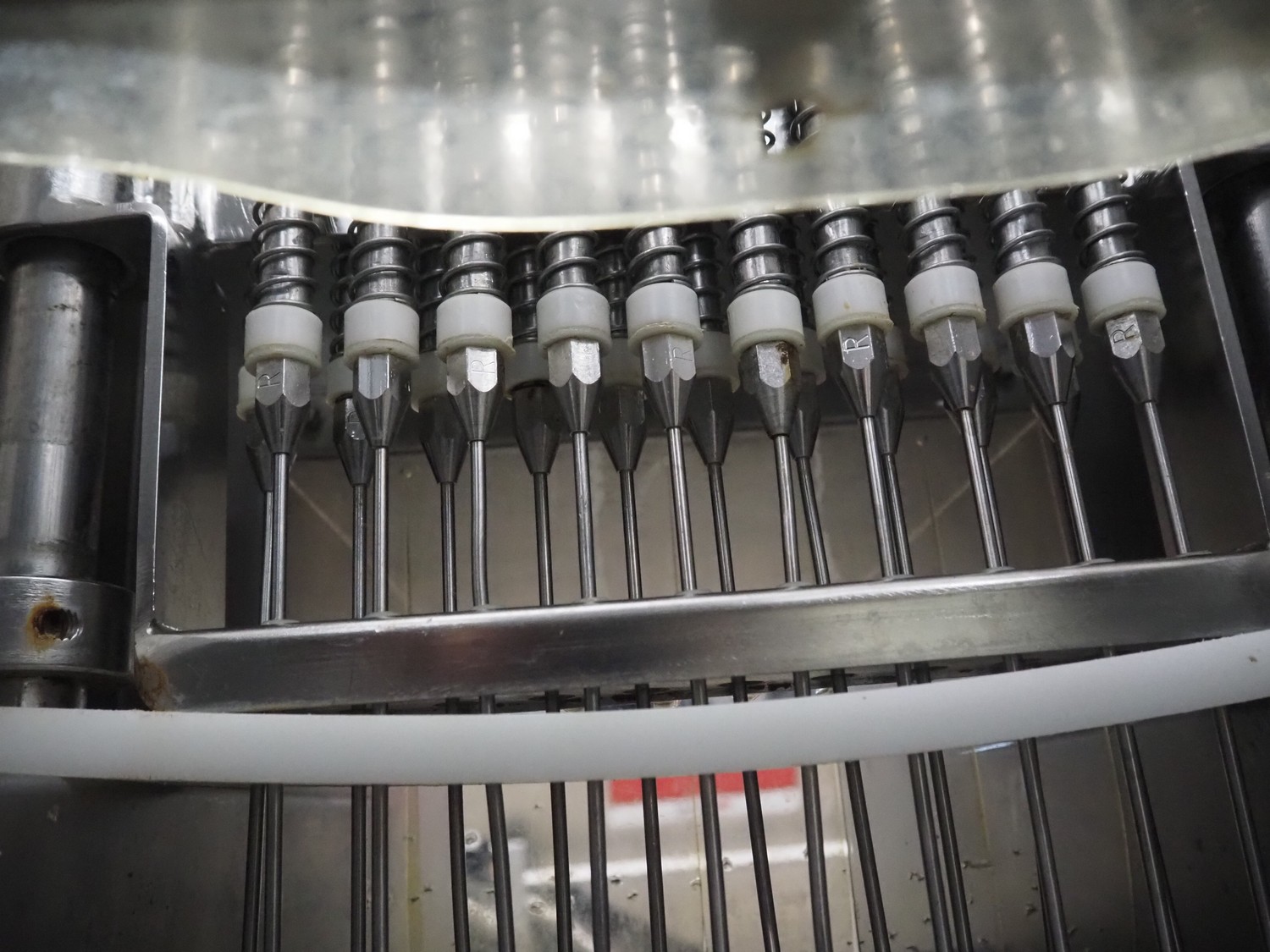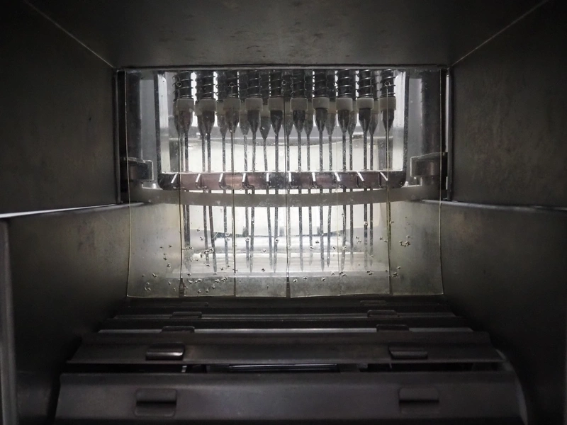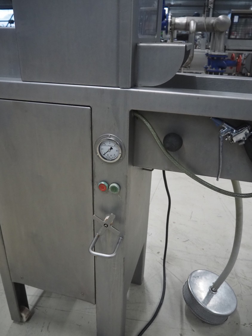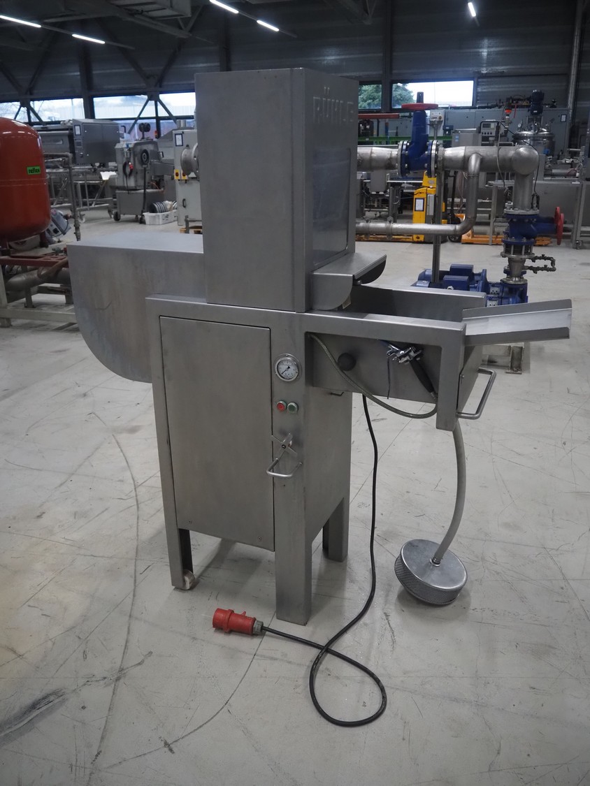 Rühle mobile injector, 21 needles, s/s belt, belt width: 290 mm, total dimensions: 1500 mm x 500 mm x 1600 mm.