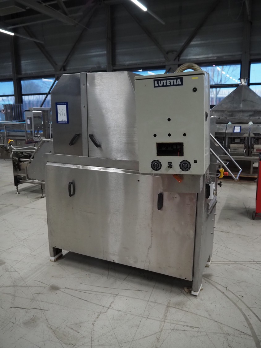 Lutetia injector, model: IMPB, number: 11353, year of construction: 2000 ,400 V, 50 Hz, 6.5 A, 670 kg, s/s mesh belt, belt width: 370 mm, total dimensions: 2400 mm x 700 mm x 1900 mm. Incomplete.
