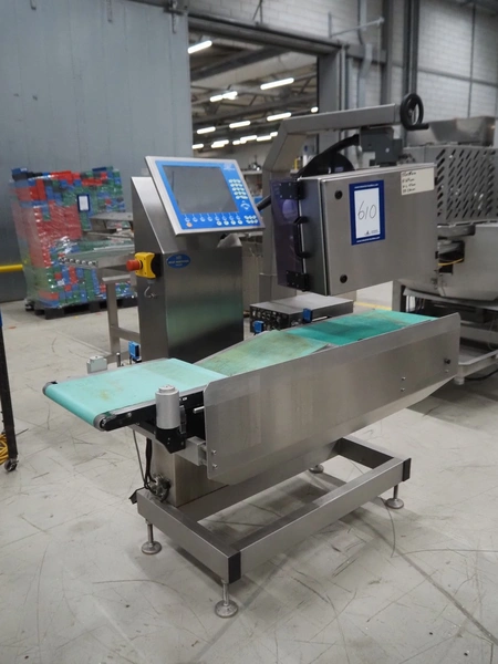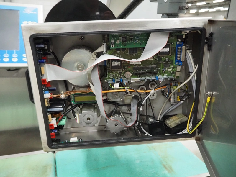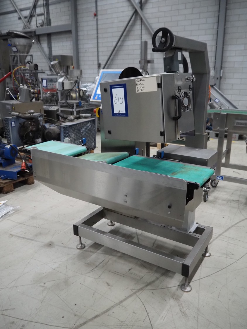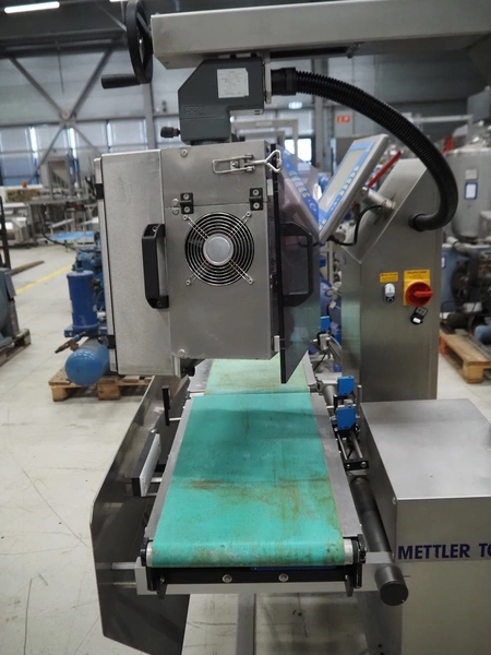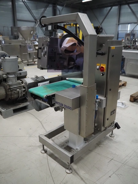 Mettler-Toledo Garvens GmbH weighing and labelling machine with top labeller, type: PAS 3012, serial number: 170403, year of construction: 2005, 115 V, 50/60 Hz, maximum weight: 7500 gram, plastic belt, belt width: 280 mm, 290 mm and 300 mm, total dimensions: 1560 mm x 850 mm x 1660 mm.
