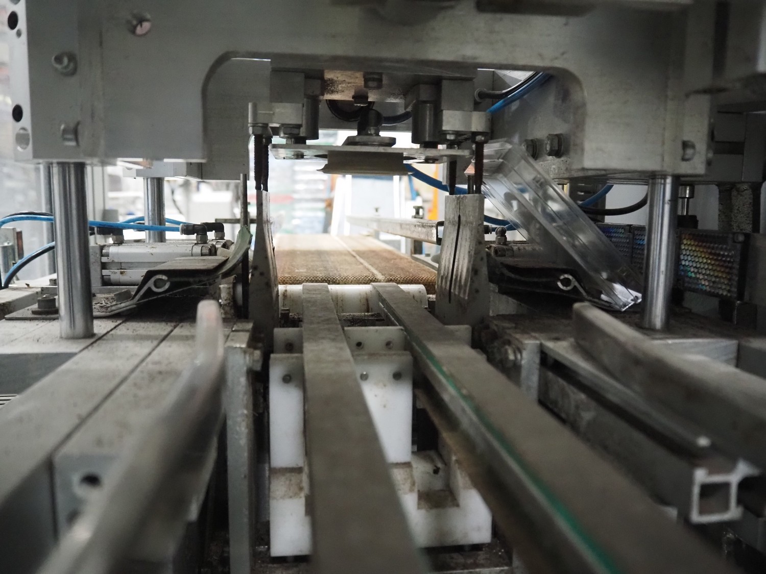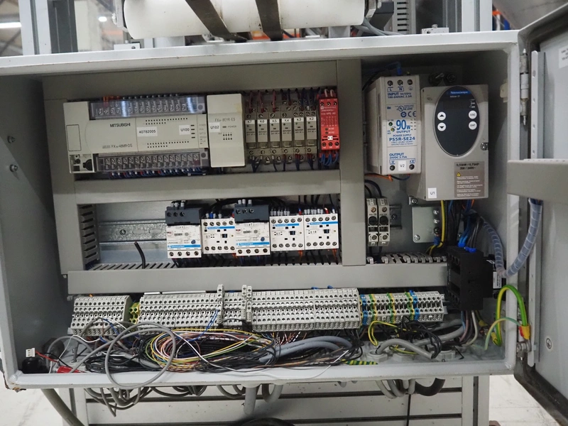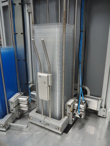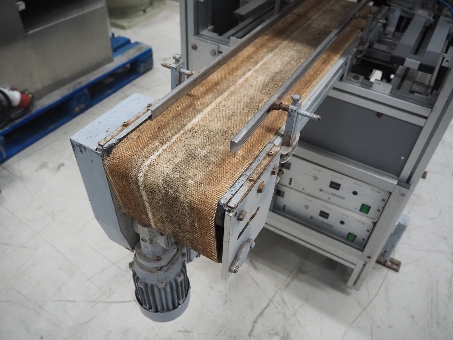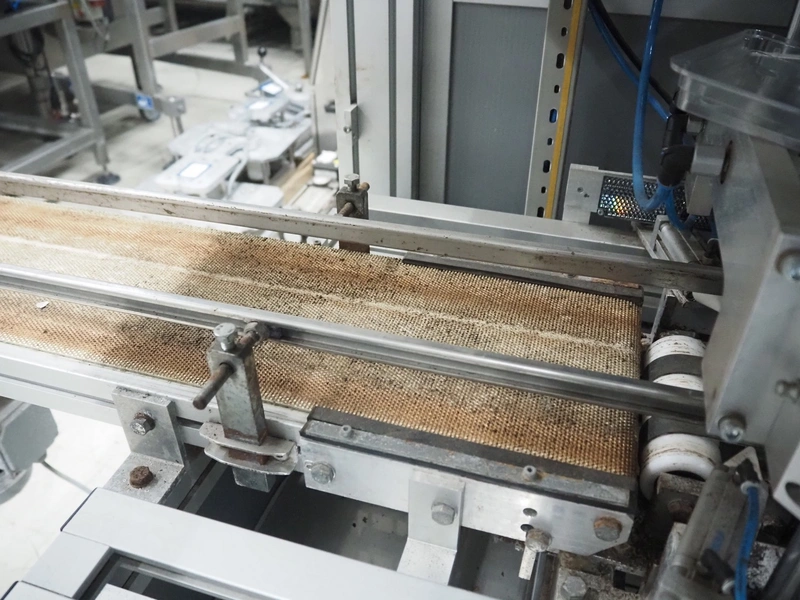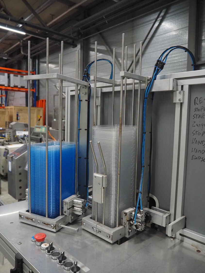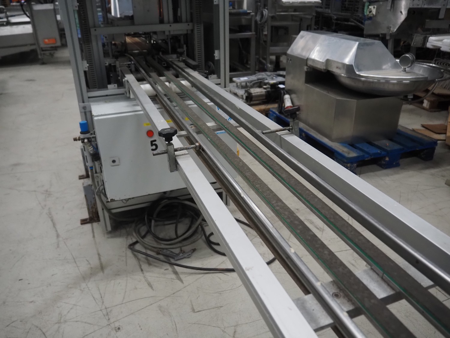 Viscon lid applicator, type: Dekselmachine, serial number 67331-430, year of construction: 2007, weight: 270 kg, plastic belt, belt width: 195 mm, lid size: 120 mm x 140 mm / 190 mm x 150 mm, total dimensions: 3800 mm x 1000 mmx 2000 mm.