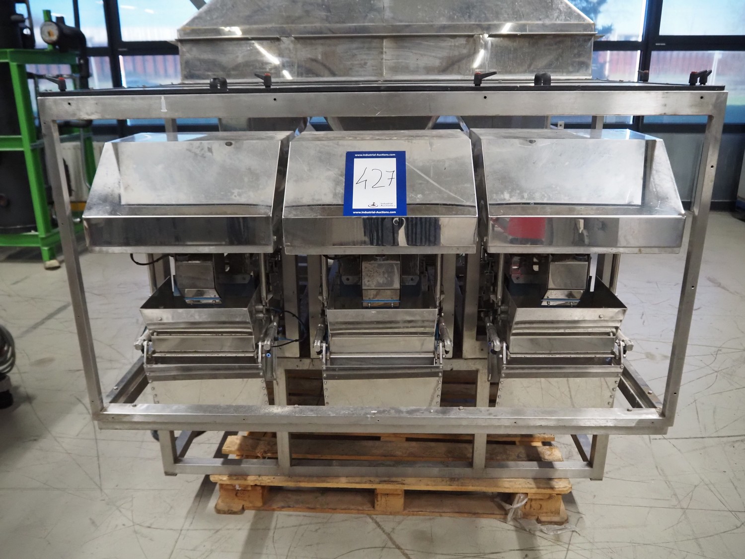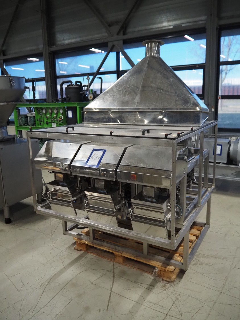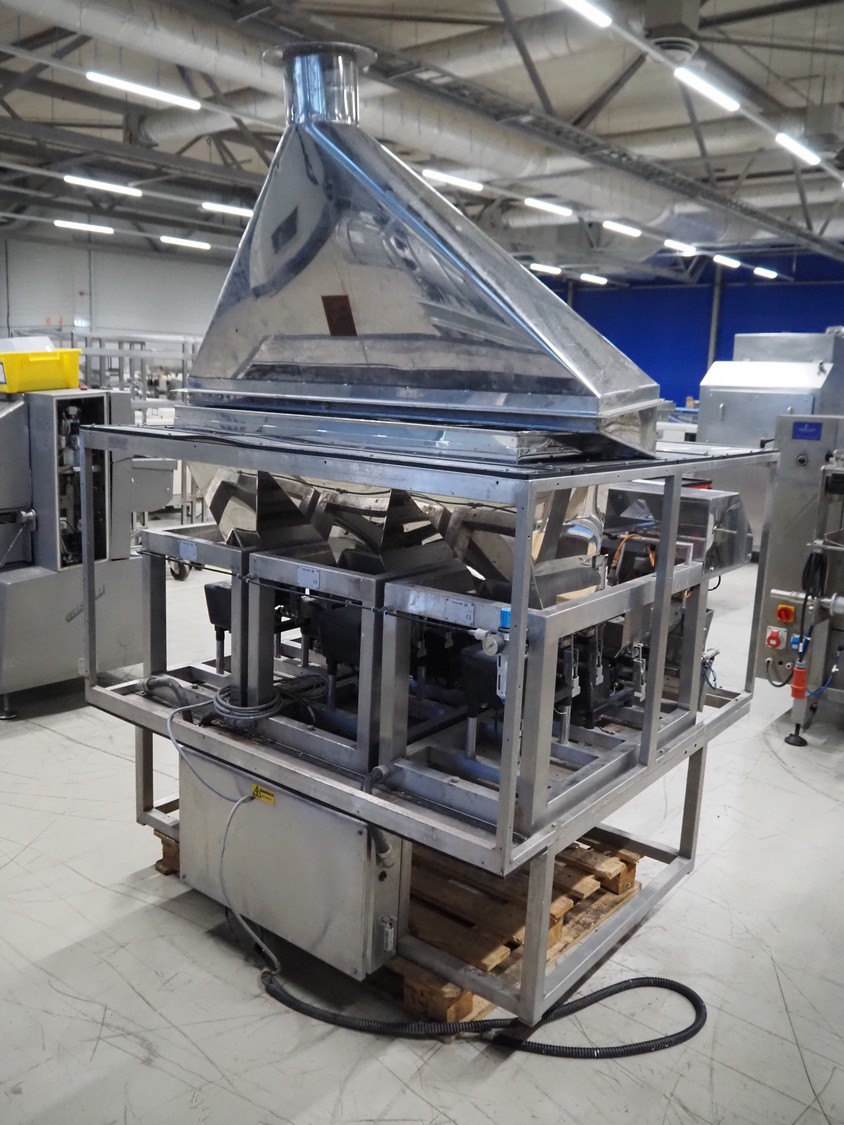Easiweigh linear weigher, 3 lanes, type: Maxi, serial number: 080105/080106/080107, year of construction: 2008, 3 s/s vibrating gutters, total dimensions: 1500 mm x 1500 mm x 2100 mm.