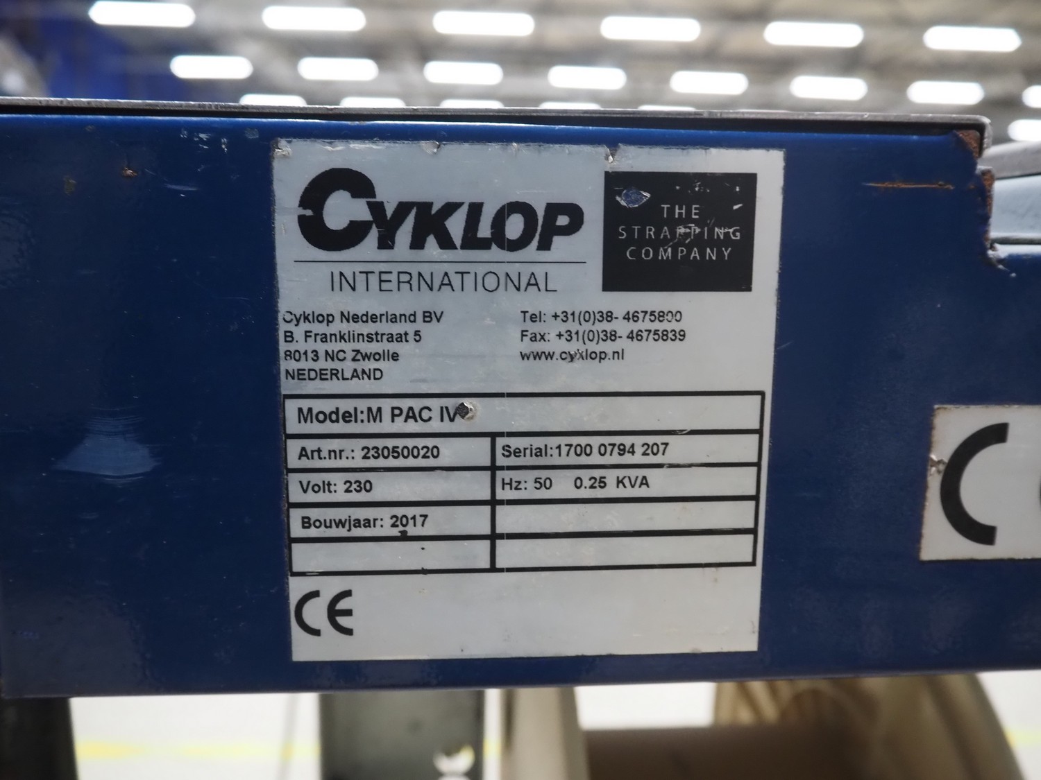 Cyklop mobile semi automatic strapping machine, model: M-PAC IV 12 mm, machine number: 1700 0794 207, year of construction: 2017, 230 V, 1 Ph, 50 Hz, 0.25 kVa, dimensions: 780 mm x 540 mm x 900 mm.