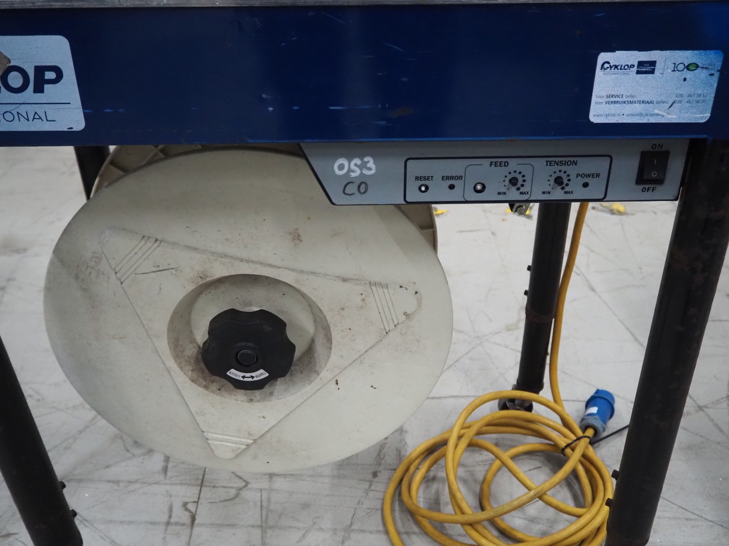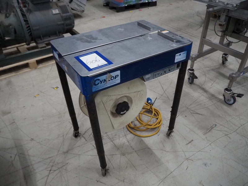Cyklop mobile semi automatic strapping machine, model: M-PAC IV, machine number: 5007931 / 705, 230 V, 1 Ph, 50/60 Hz, 0.25 kVa, dimensions: 780 mm x 540 mm x 900 mm.