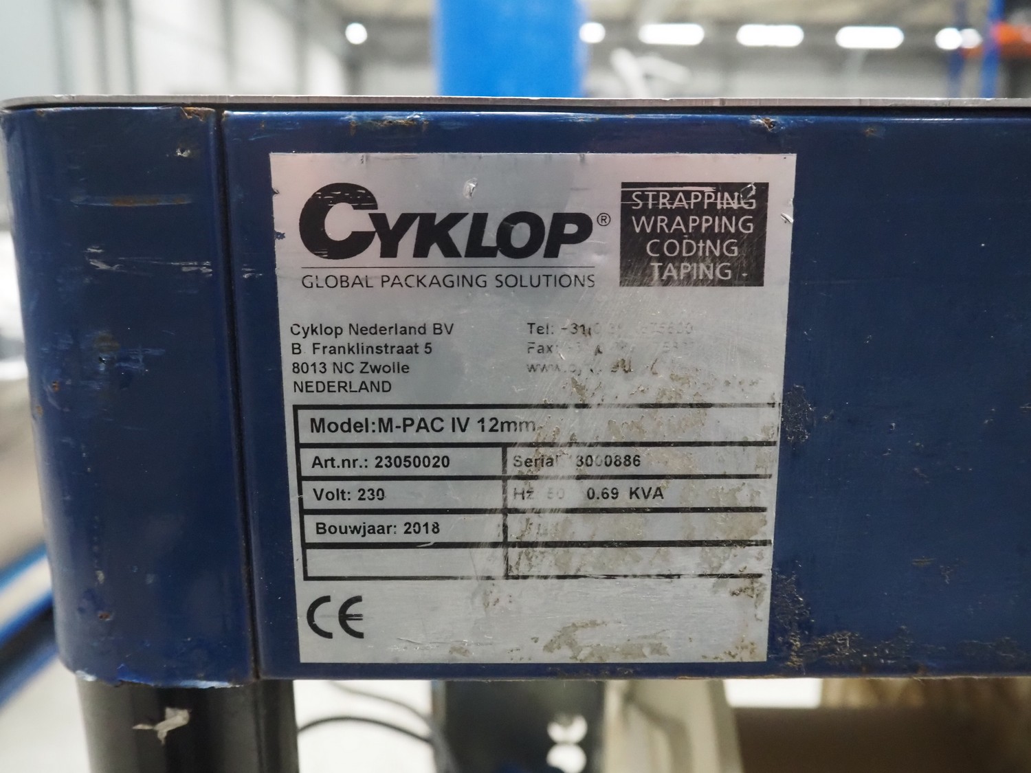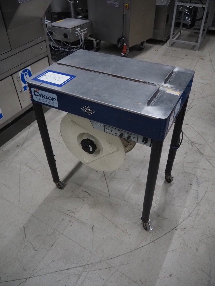 Cyklop mobile semi automatic strapping machine, model: M-PAC IV 12 mm, machine number: 18000886, year of construction: 2018, 230 V, 1 Ph, 50 Hz, 0.69 kVa, dimensions: 780 mm x 540 mm x 900 mm.
