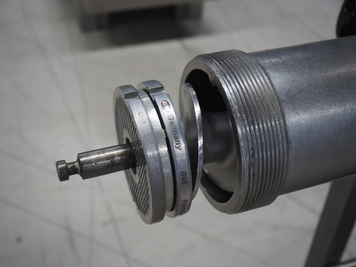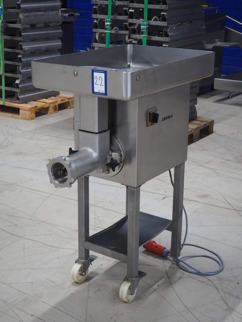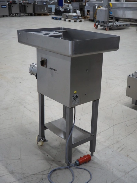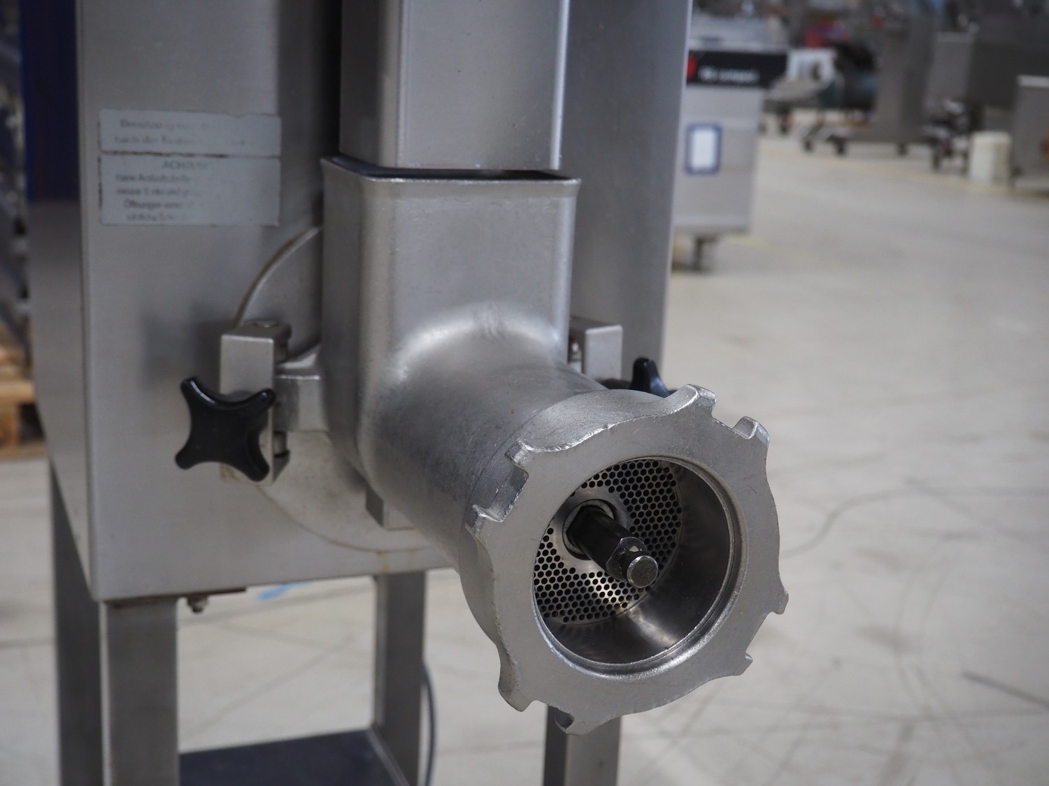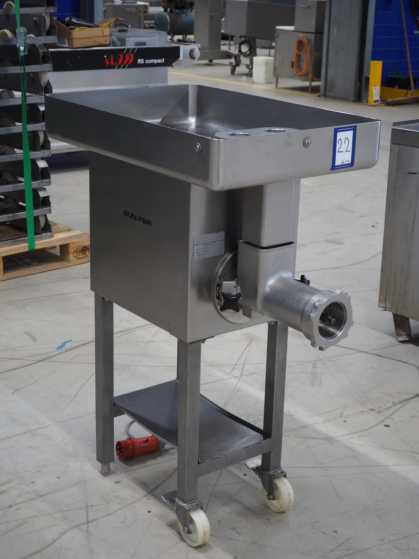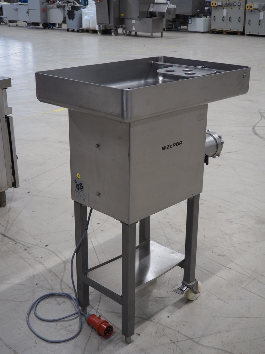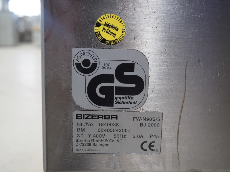 Bizerba mobile grinder, model: FW-N98S/5, number: 1840038, year of construction: 2000, 400 V, 3 Ph, 50 Hz, 5.6 A, plate diameter: 98 mm, total dimensions: 530 mm x 900 mm x 1130 mm.