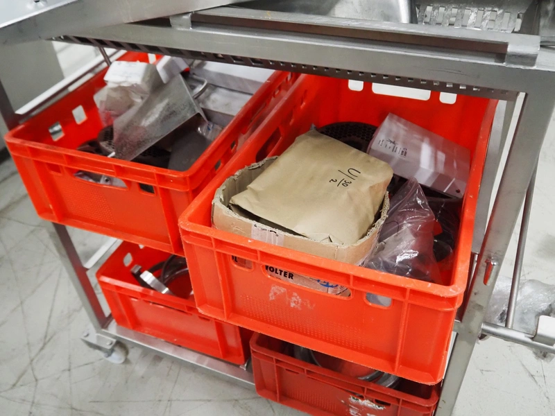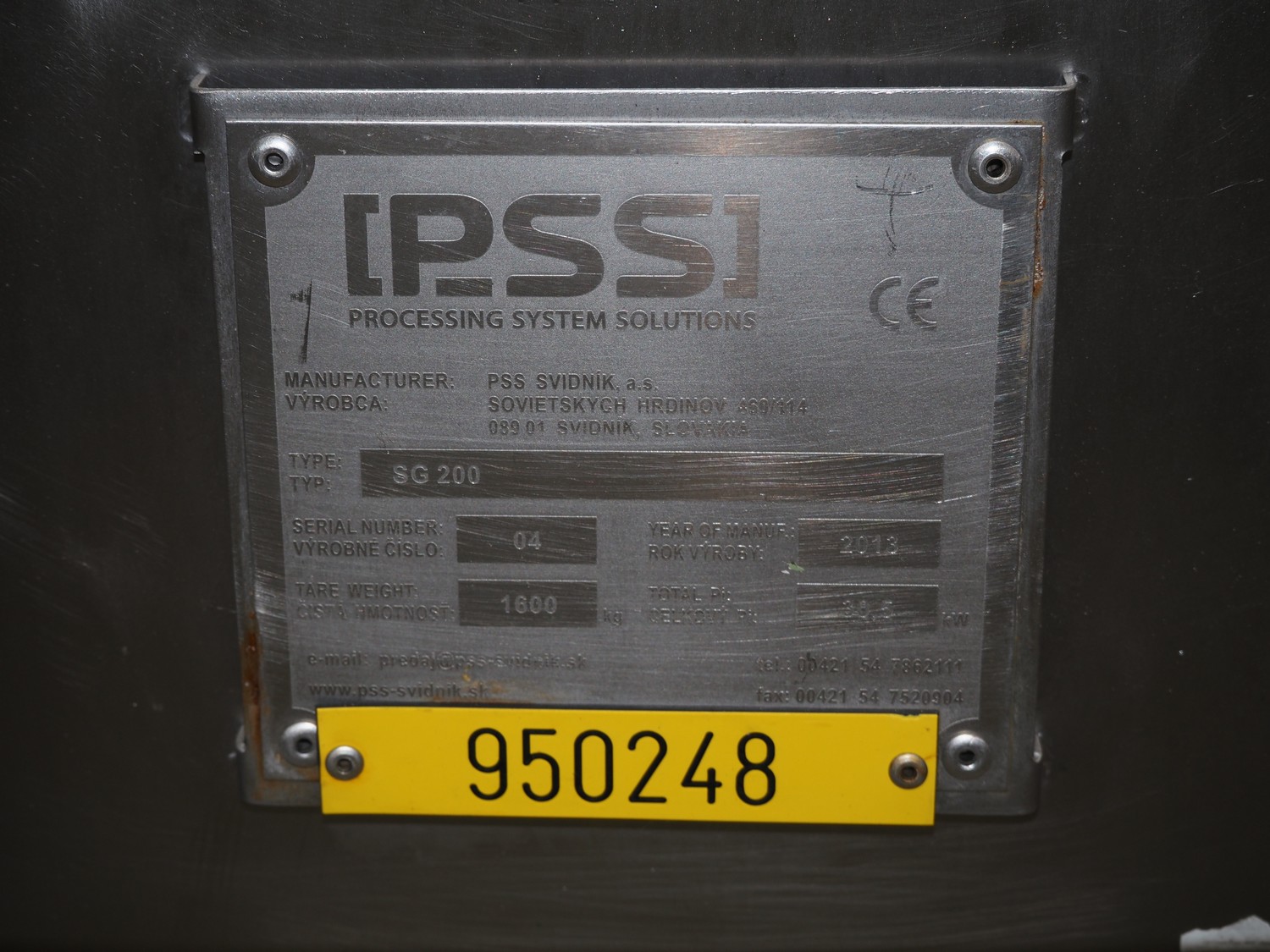 PSS Svidnik a.s. grinder, type: SG 200, serial number: 04, year of construction: 2013, 30.5 kW, weight: 1600 kg, plate diameter: 200 mm, total dimensions: 2700 mm x 1300 mm x 2350 mm. Including s/s trolley with parts, dimensions: 1250 mm x 1000 mm x 1050 mm.