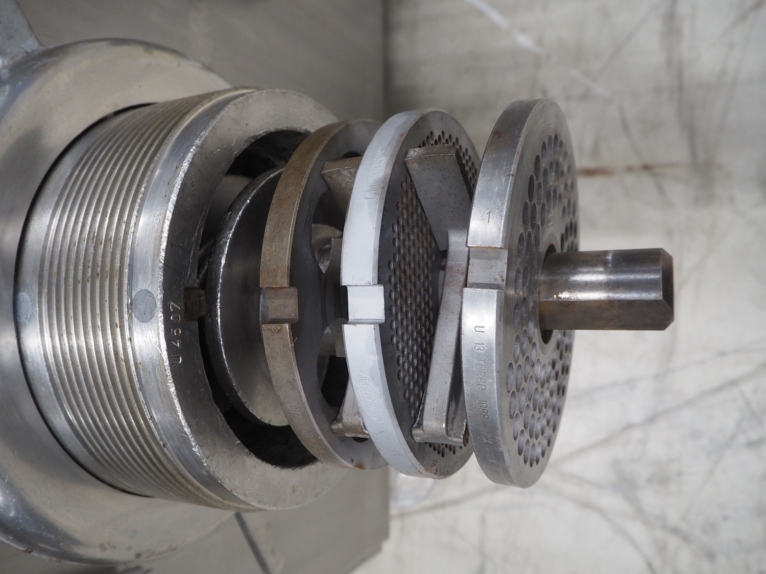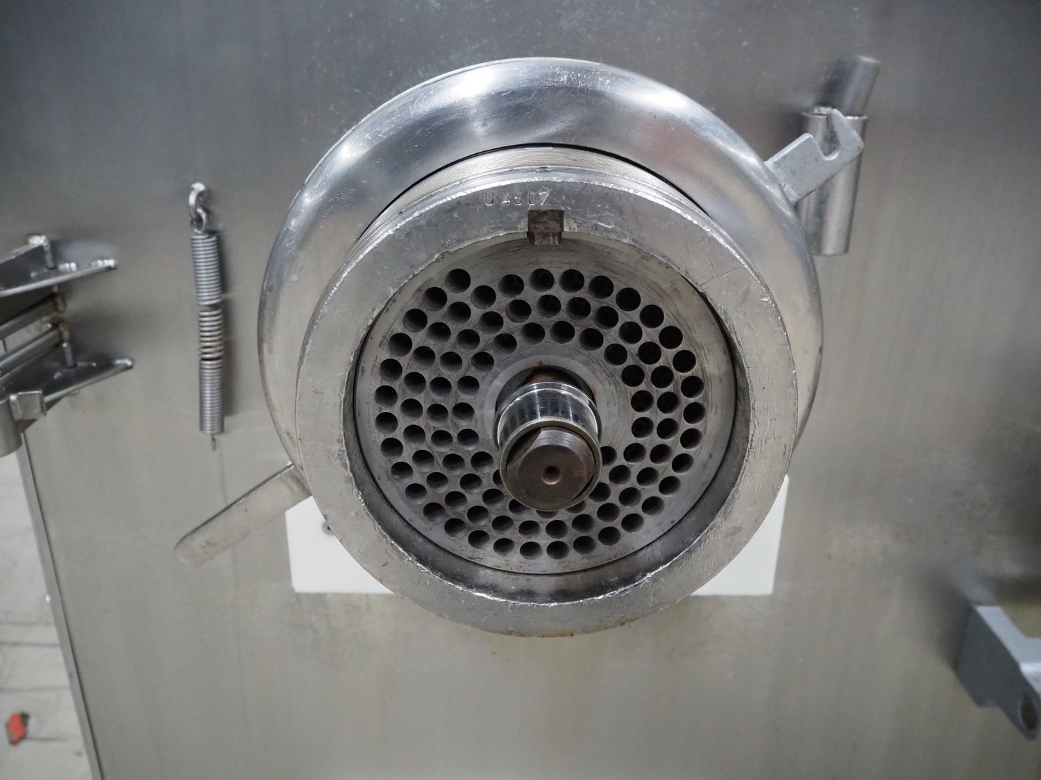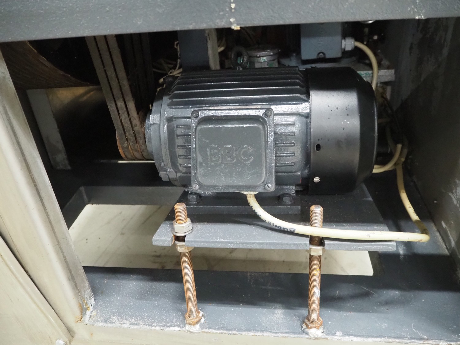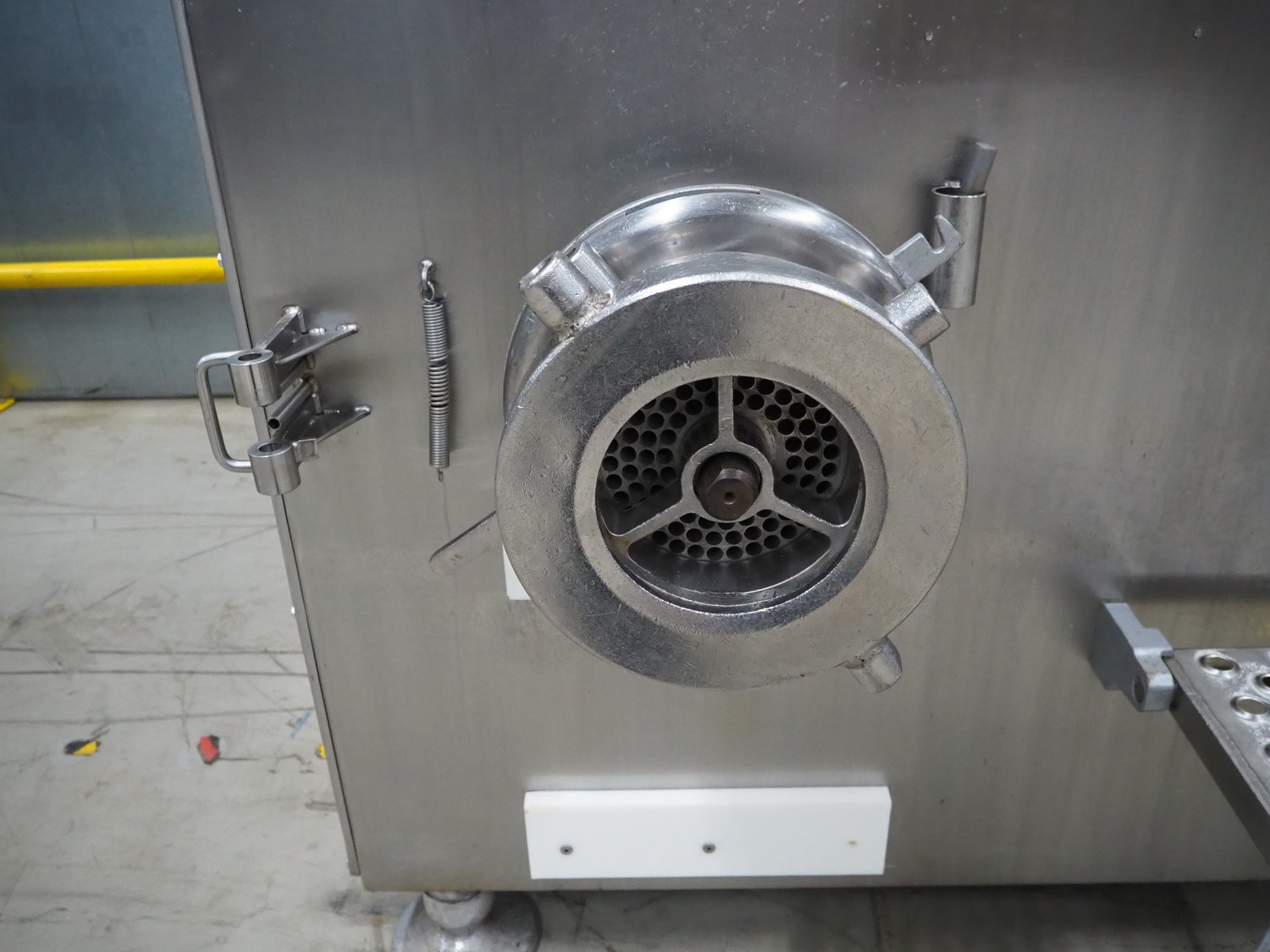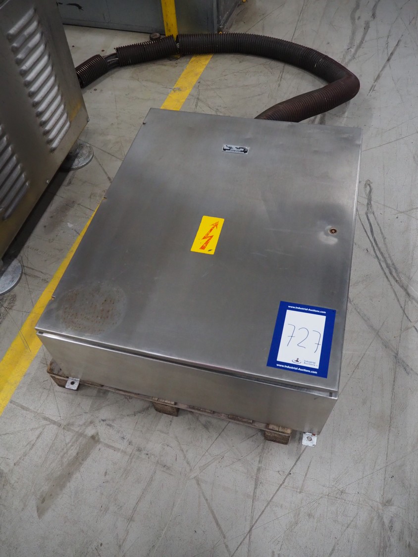 Laska Maschinenfabrik grinder, type: WW 200 G, serial number: U4507, 220 V, 50 Hz, 45 kW, plate diameter: 200 mm, total dimensions: 1630 mm x 1550 mm x 1670 mm. Dimensions switch cabinet: 1000 mm x 800 mm x 320 mm.