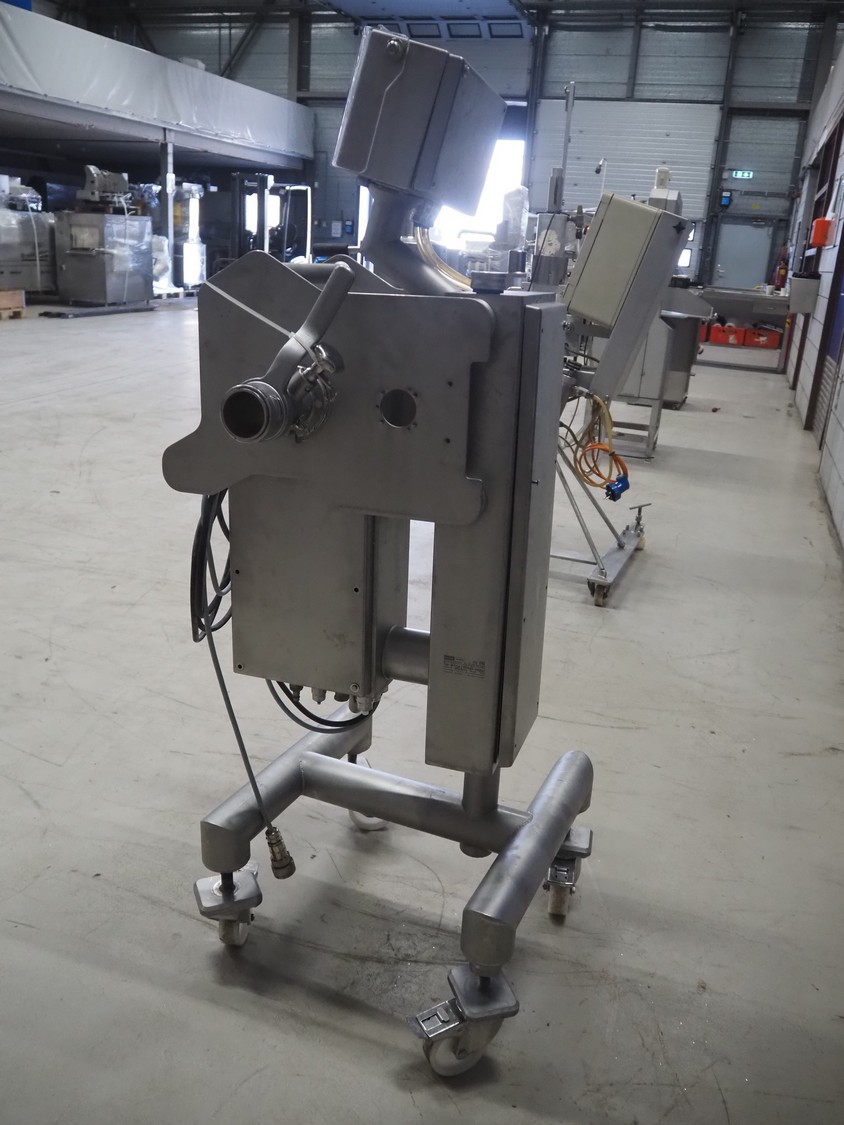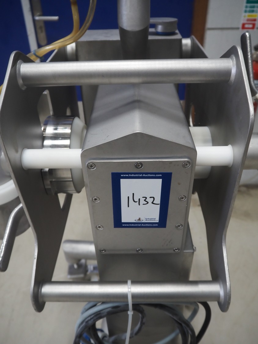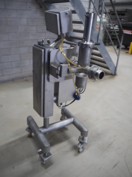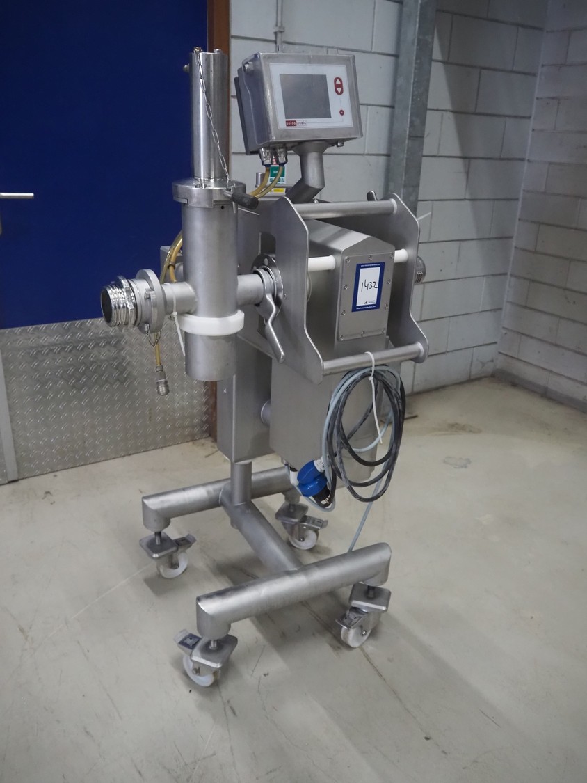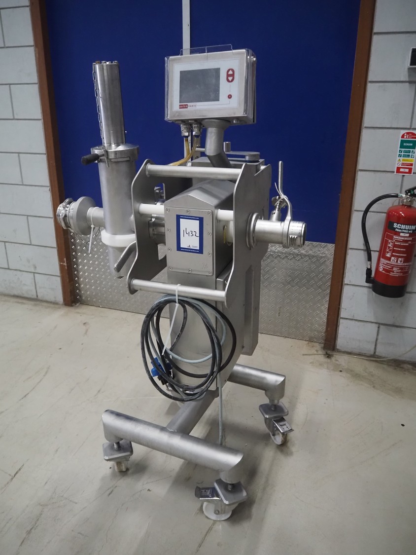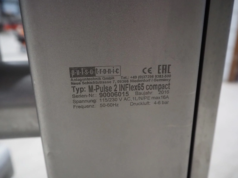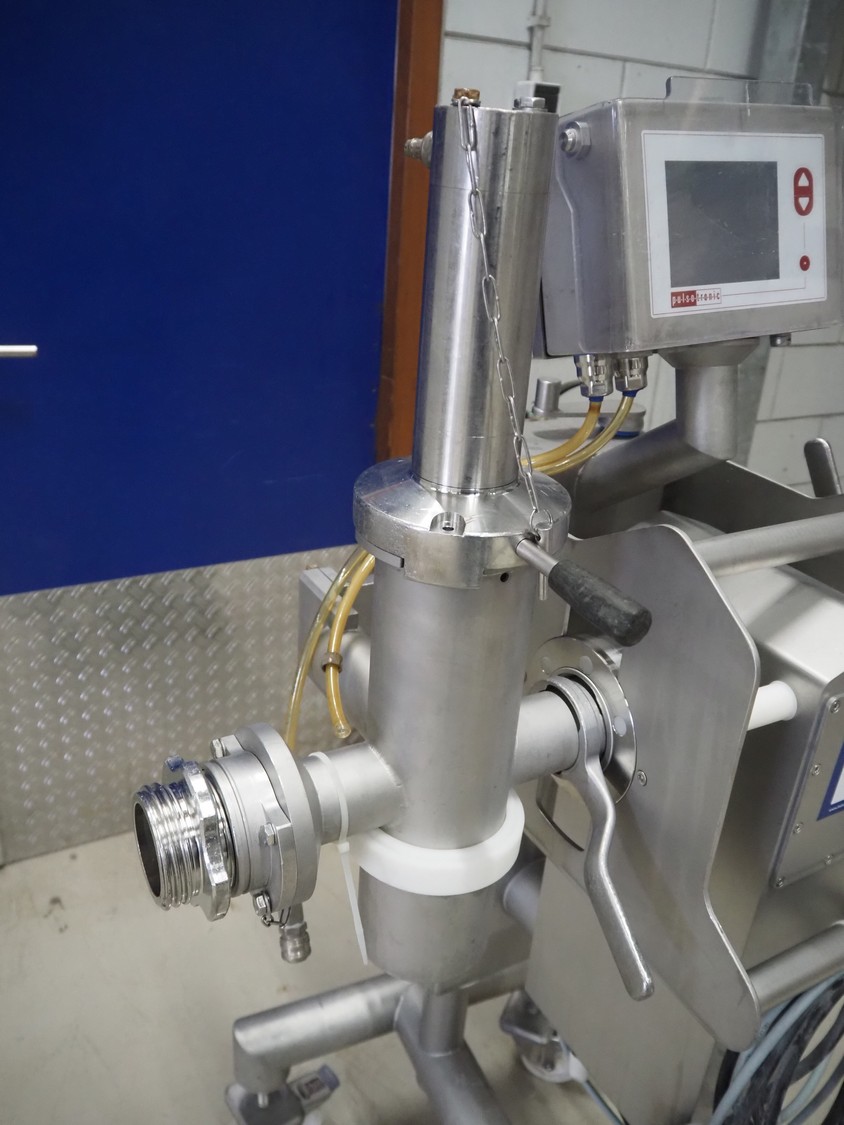 Pulso Tronic mobile pipe line metal detector with rejector, type: M-Pulse 2 INFlex65 compact, serial number: 90006015, year of construction: 2016, 115/230 V, 1 Ph, 50/60 Hz, 16 A, 4/6 bar, clearance: Ø 55 mm, total dimensions: 850 mm x 600 mm x 1500 mm.