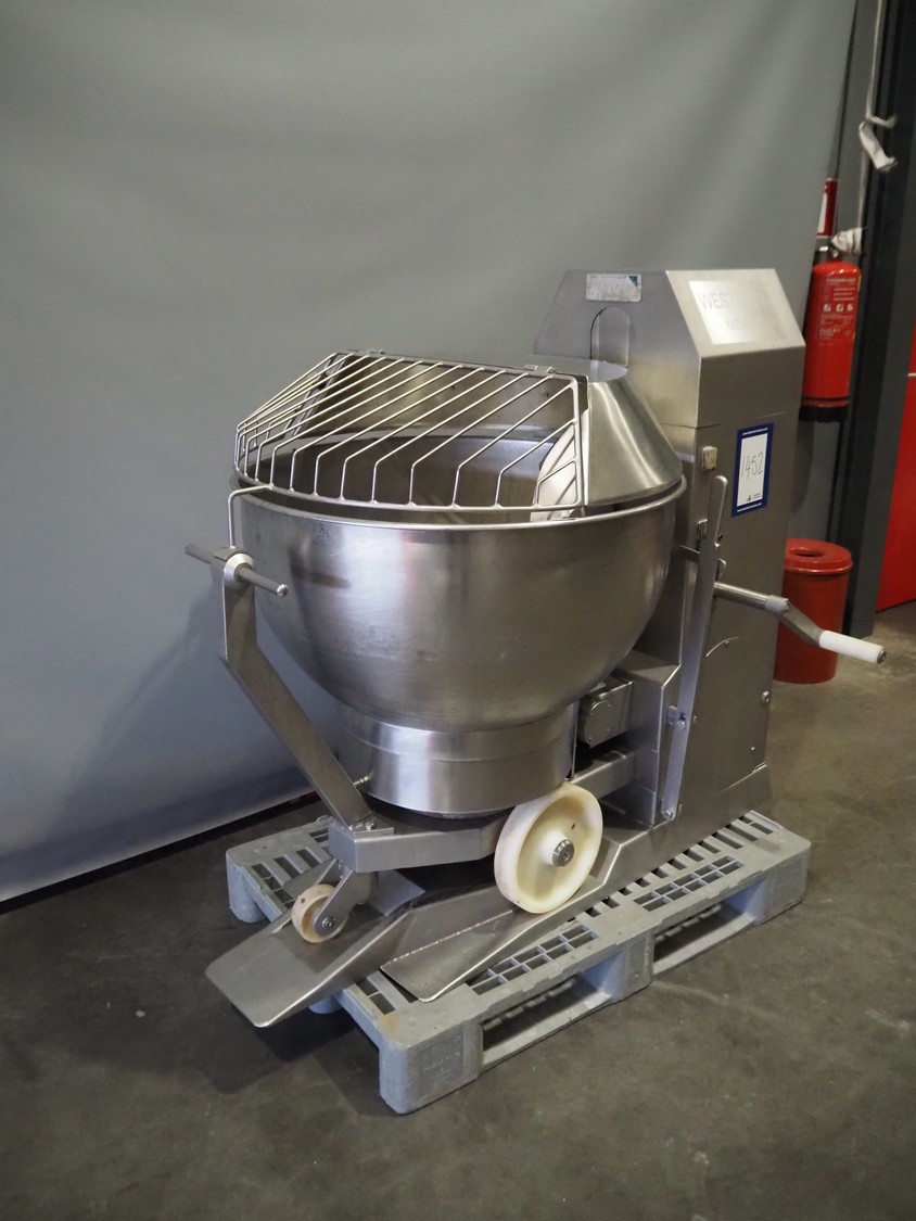 Westfalia / Stork & Herrmann GmbH mixer, type: M2A, serial number: 0202, year of construction: 1995, inside dimensions bowl: Ø 840 mm x 500 mm, total dimensions: 1400 mm x 900 mm x 1330 mm.