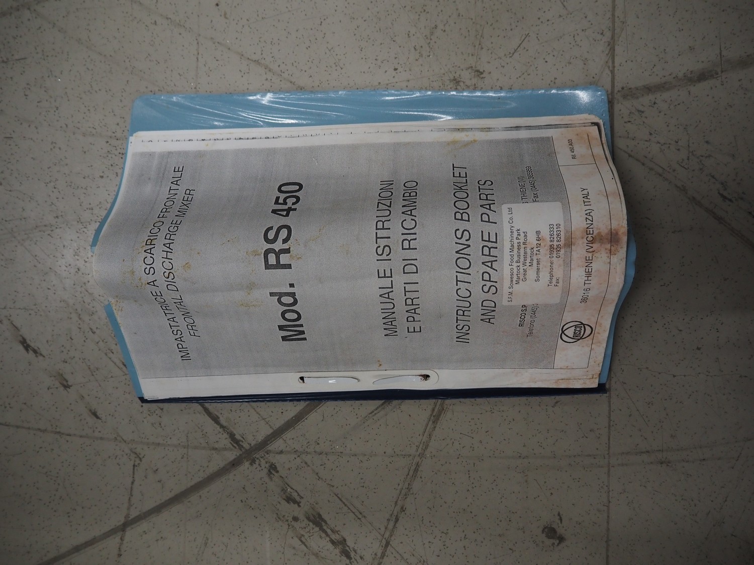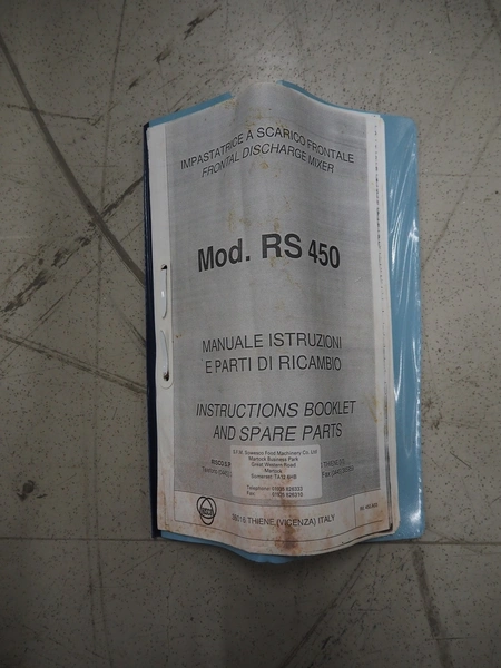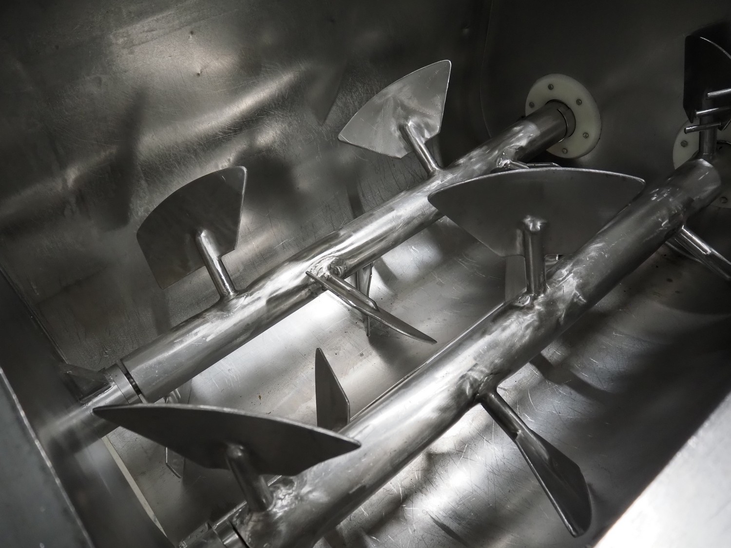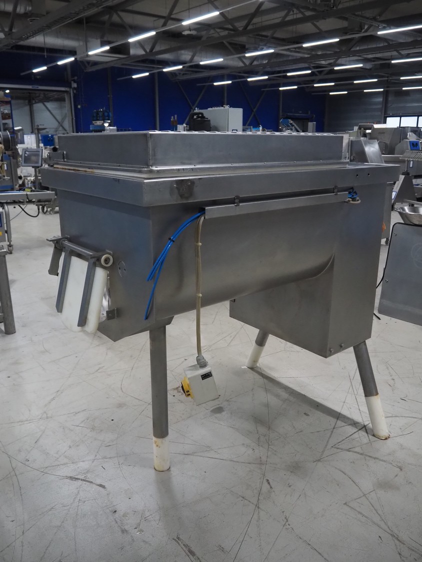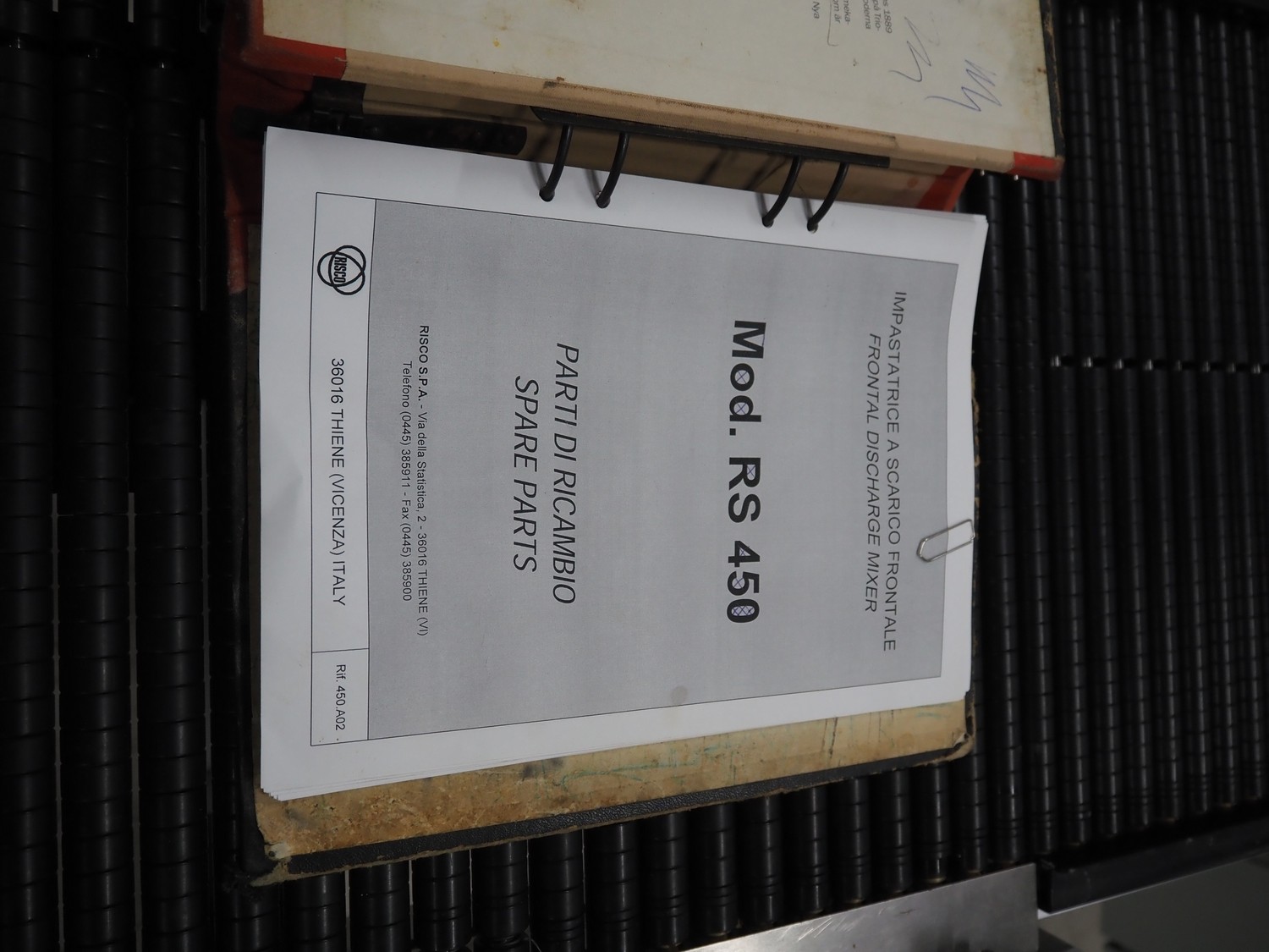 Risco S.p.a. double shaft paddle mixer, model Risco: RS 450, serial number: 0672, year of construction: 1992, volume: 450 liter, dimensions: 1600 mm x 1200 mm x 1600 mm.