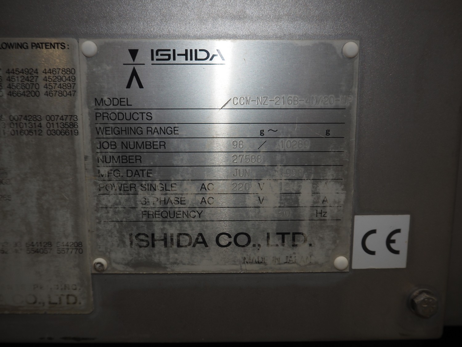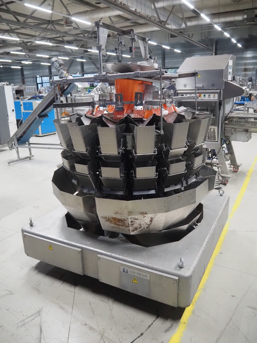 Ishida 16-heads multihead weigher, model: CCW-NZ-216B-4M/20WP, number: 27588, year of construction: June 1998, 220 V, 50 Hz, 12.5 A, dimensions: 1500 mm x 1500 mm x 2000 mm.