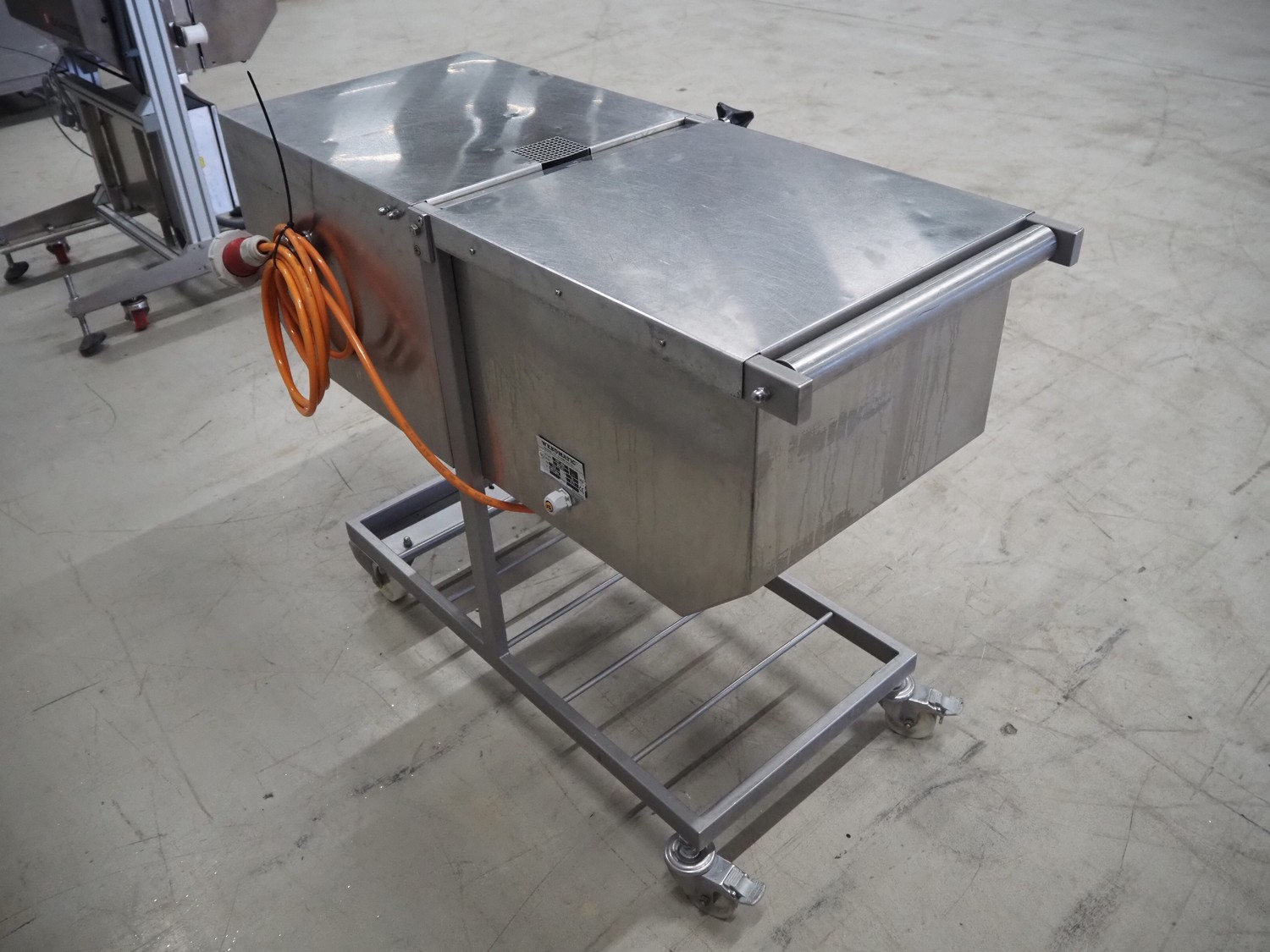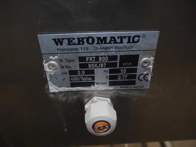 Webomatic mobile bag blower, type: FKT 800, machine number: 95KJ97, 400 V, 3 Ph, 50 Hz, 0.77 A, 0.9 kW, dimensions: 1150 mm x 600 mm x 900 mm.