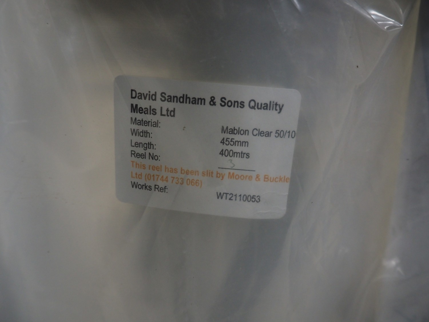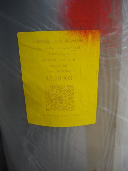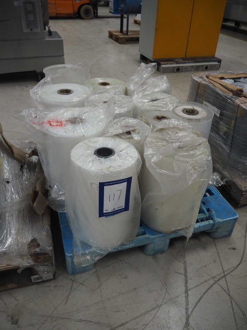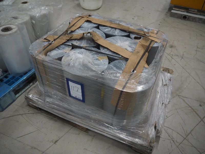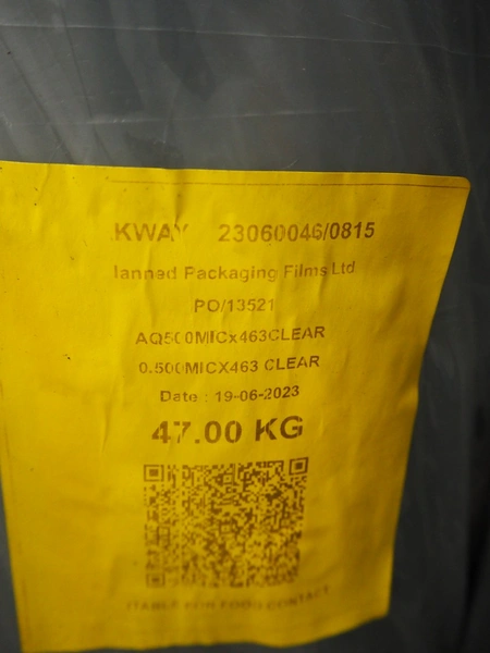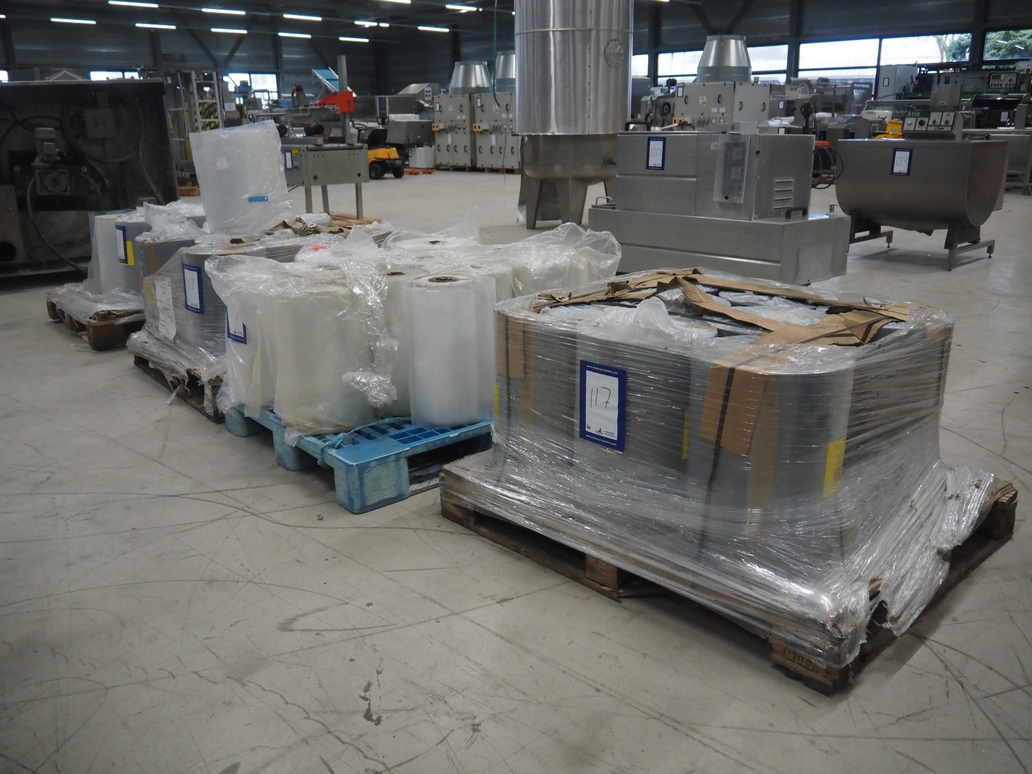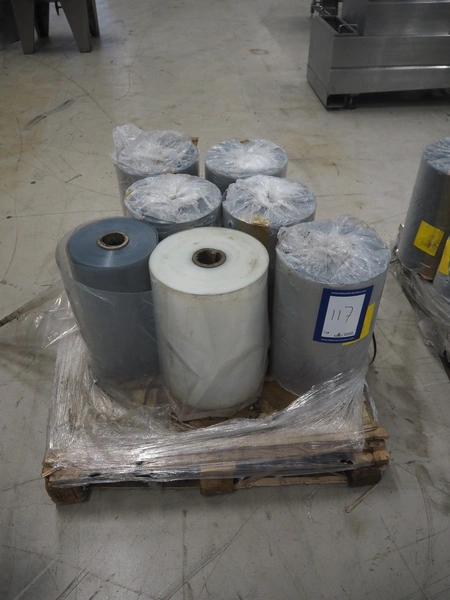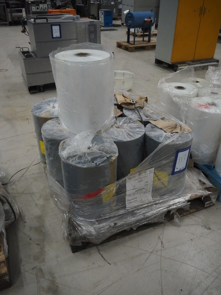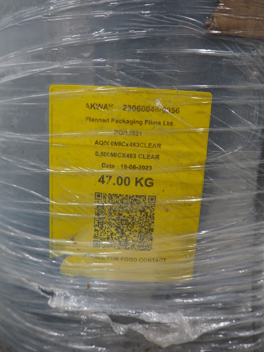 4 pallets with Planned Packaging Films Ltd film, consisting of soft and hard film, film width: 463 mm, 455 mm and 465 mm.