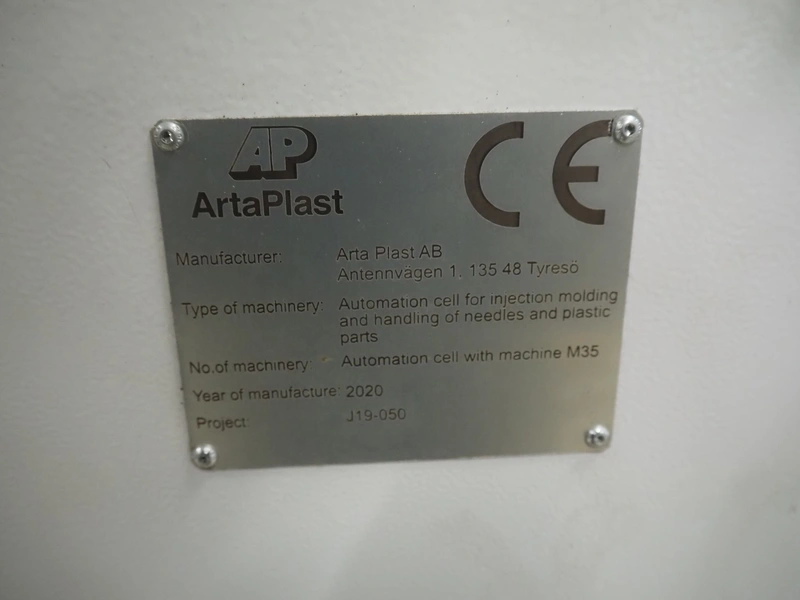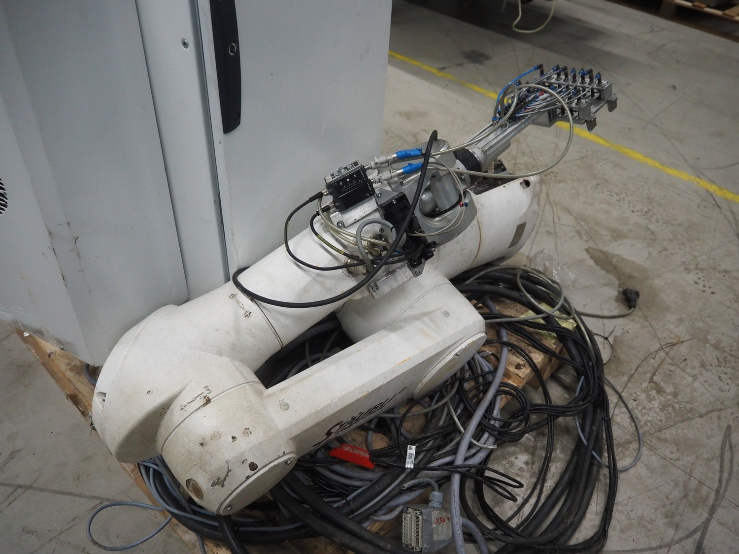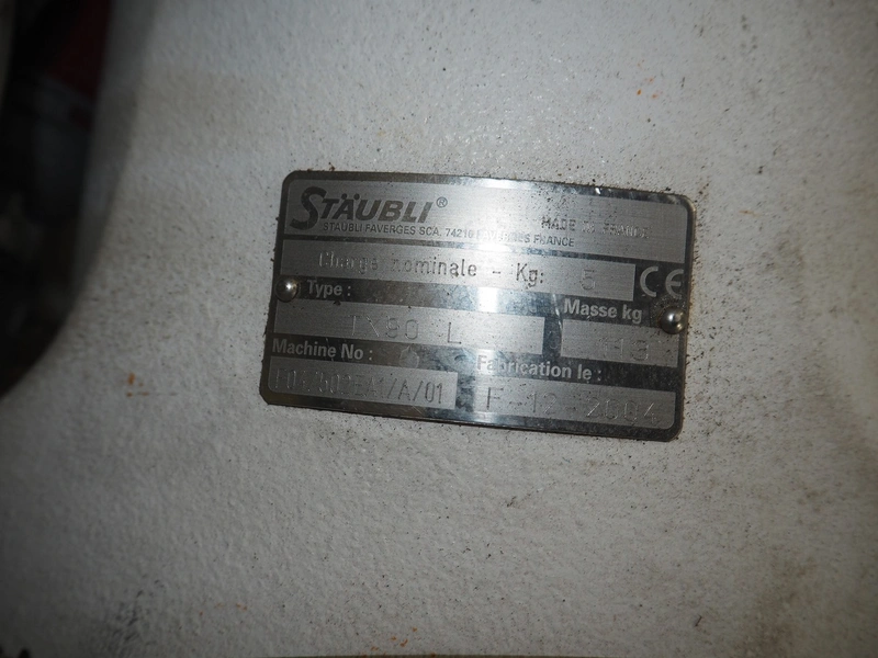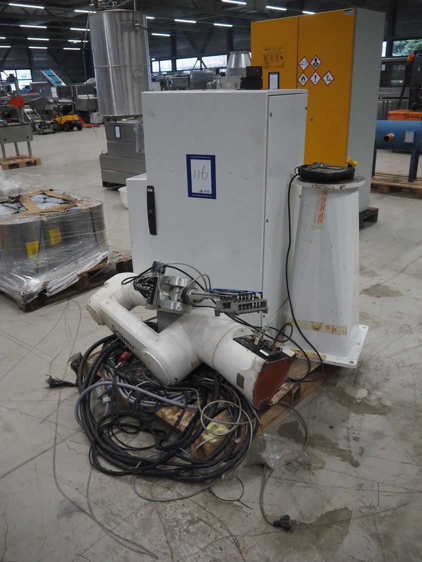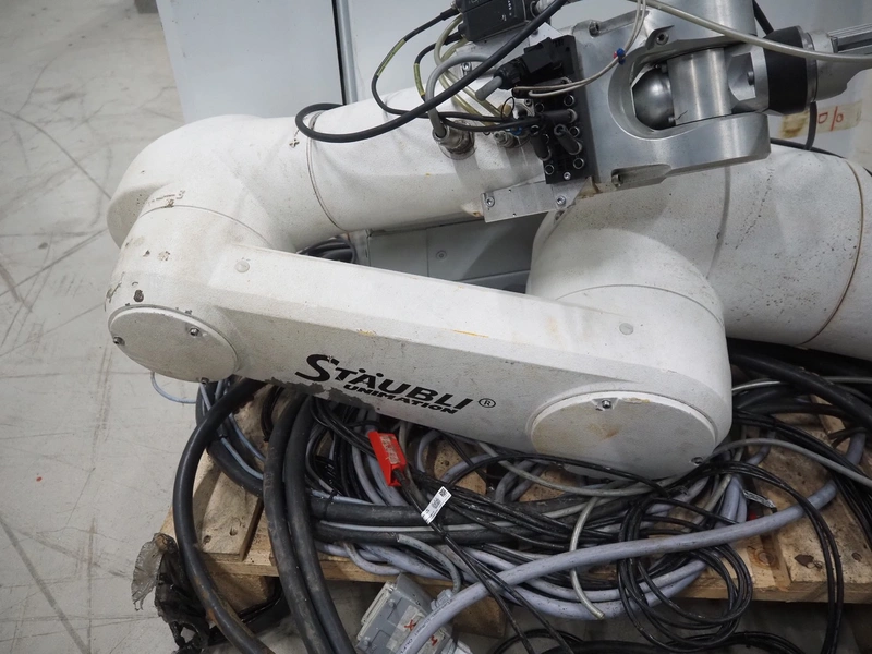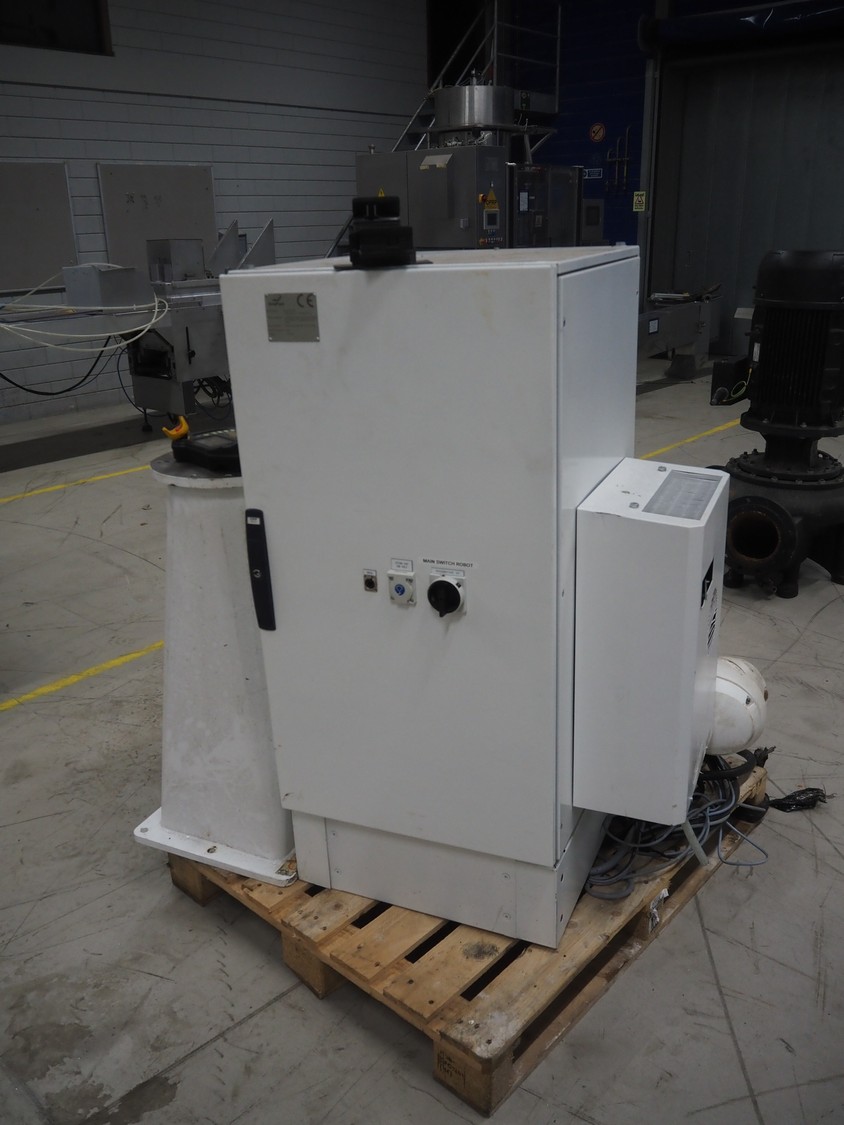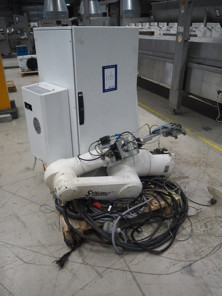 Stäubli / AP Artaplast AB robot, type: TX90 L, number: F04/502EA1/A/01, weight: 113 kg, capacity: 5 kg, dimensions robot arm: 1100 mm x 450 mm x 500 mm, dimensions switch cabinet: 700 mm x 500 mm x 1500 mm.