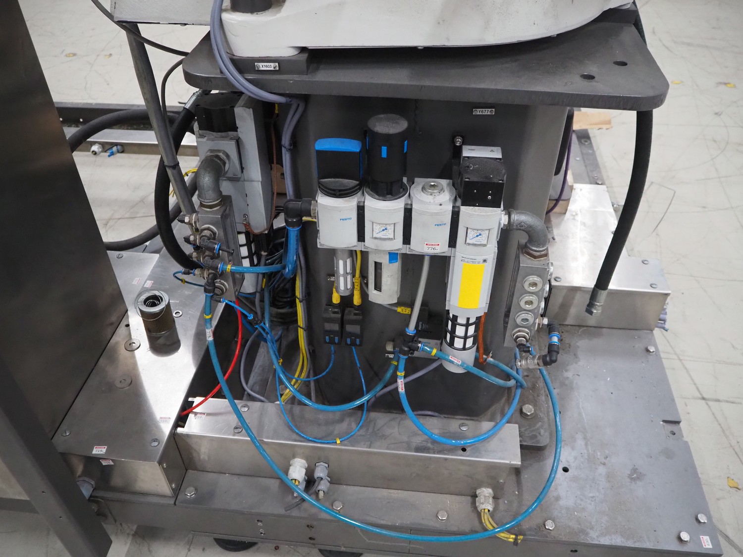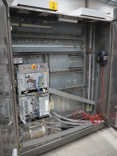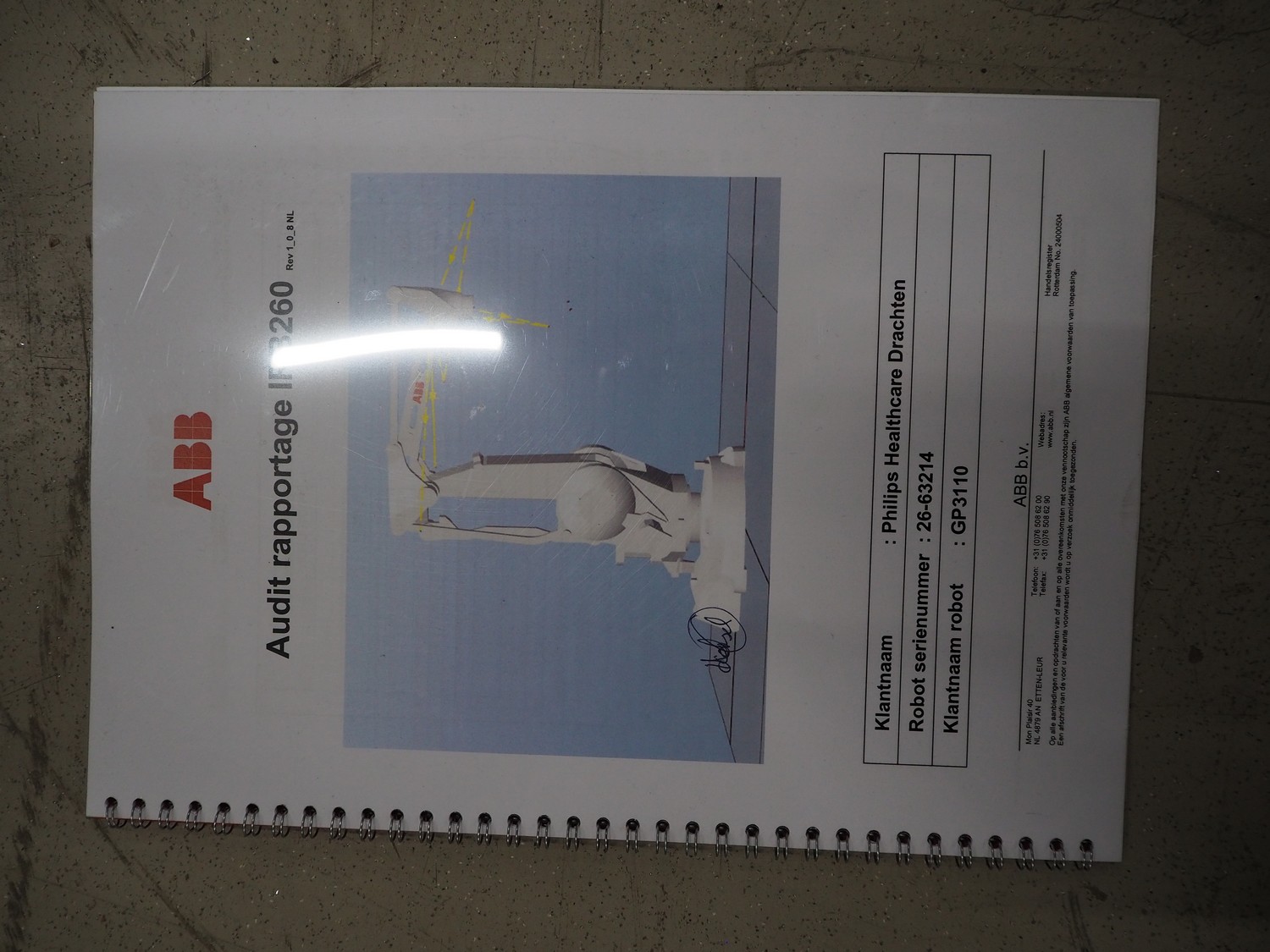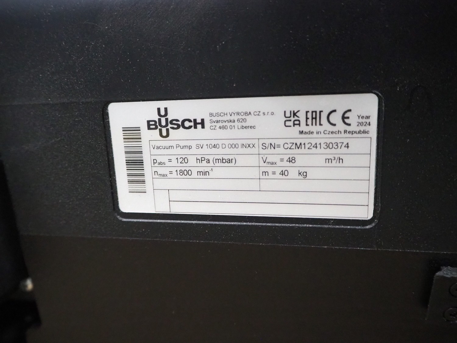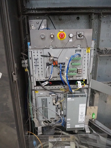 Steel frame with ABB robot, type: IRB 260 M2004, serial number: 26-63214, year of construction: 2011-10-31, weight: 340 kg, Busch vacuum pump, type: SV 1040 D 000 INXX, capacity: 48 m³ per hour, total dimensions: 3000 mm x 2200 mm x 2570 mm.
