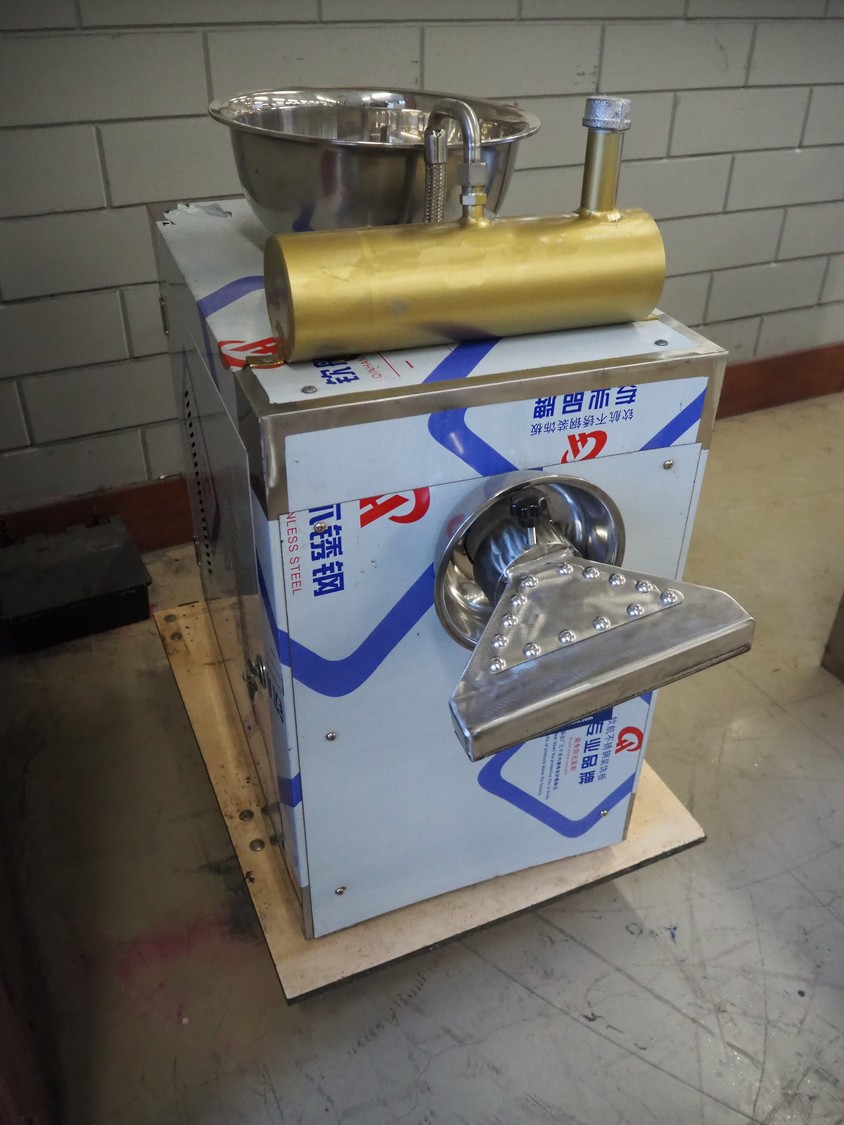 Pasta machine on rollie, dimensions: 1000 mm x 450 mm x 880 mm.