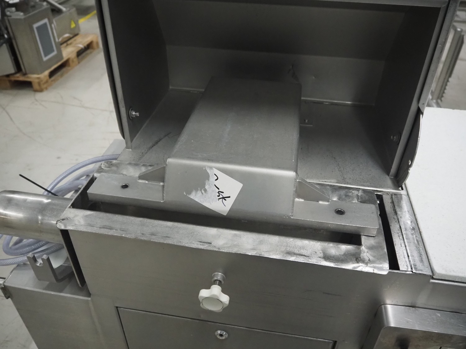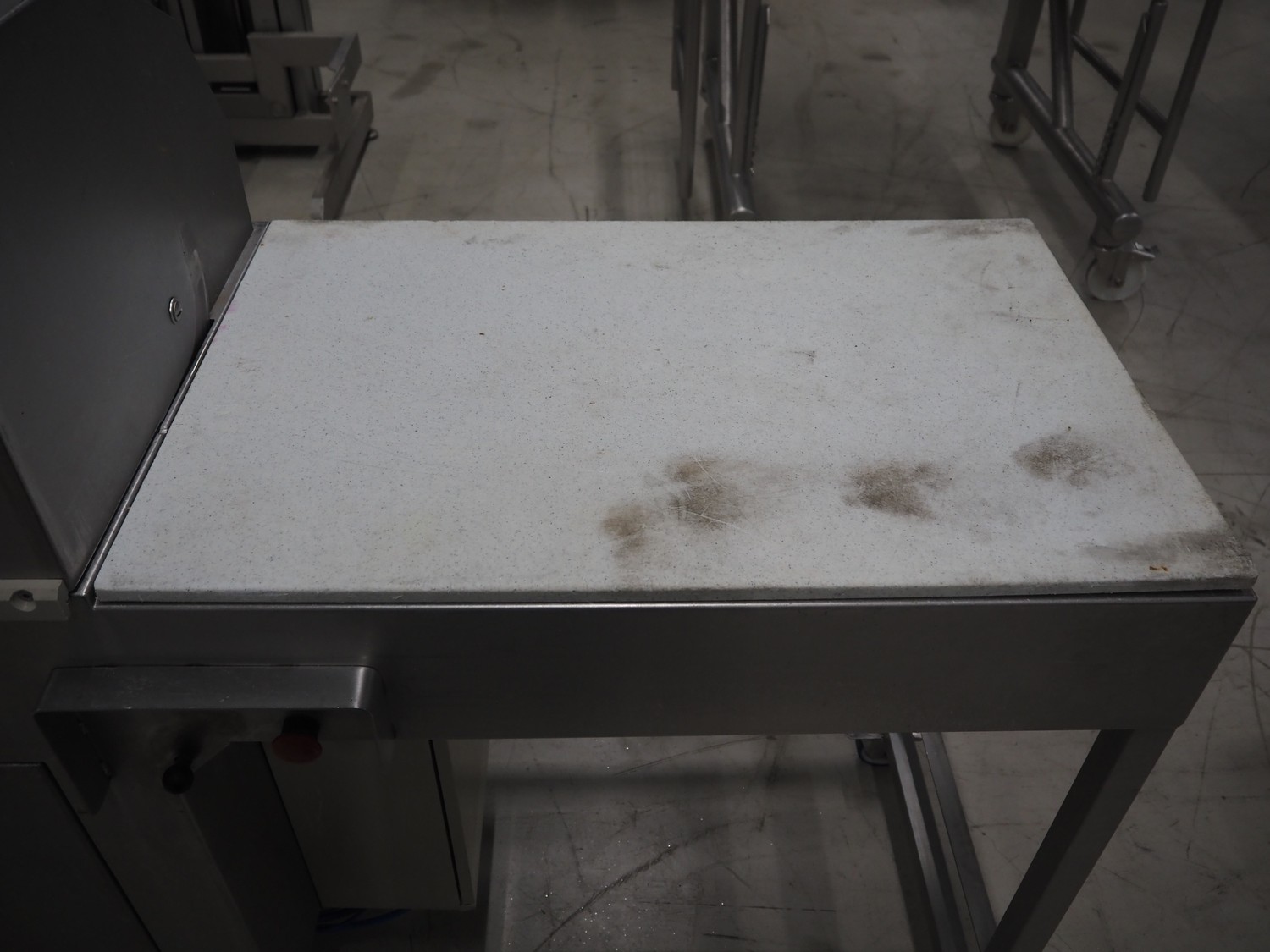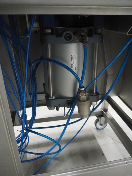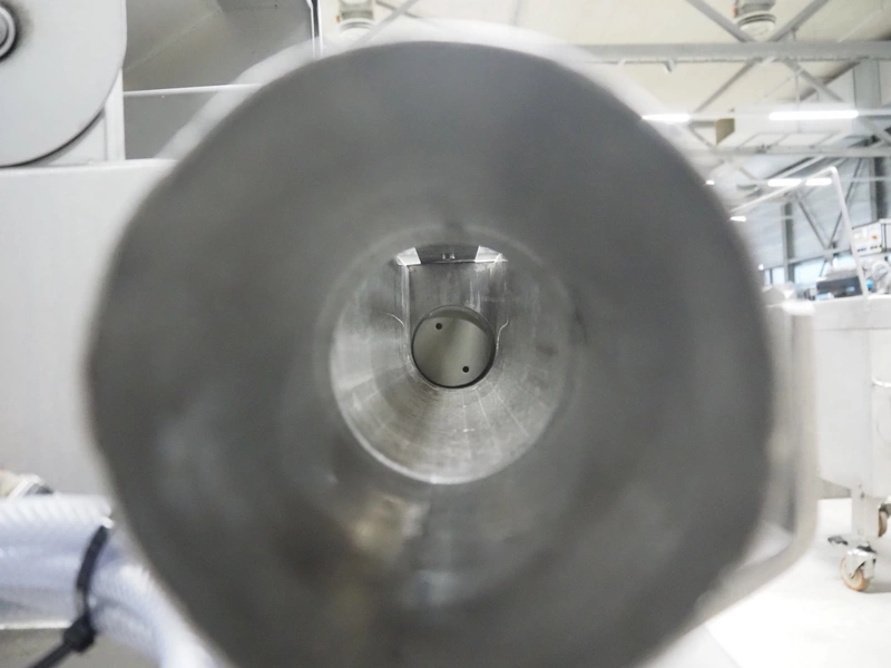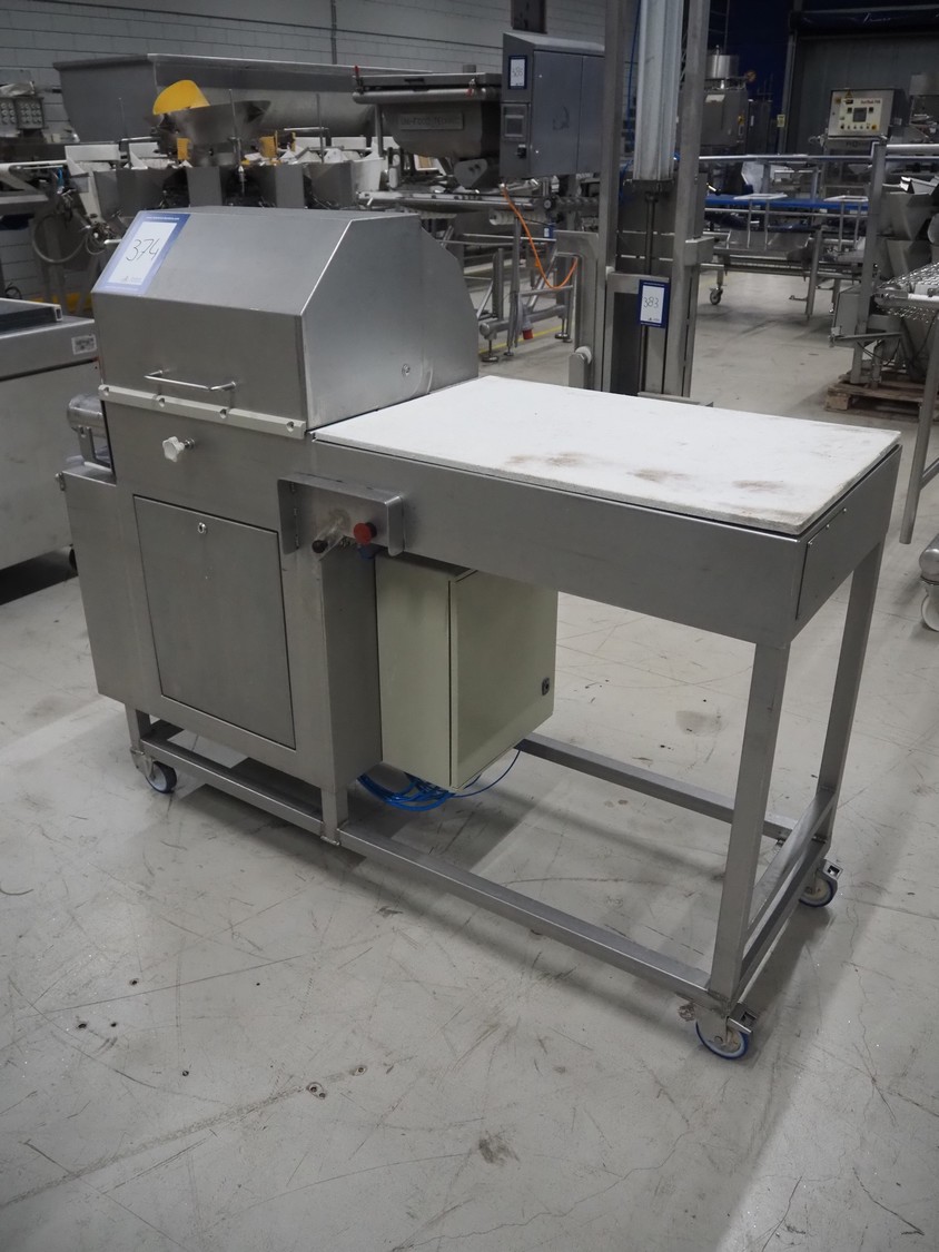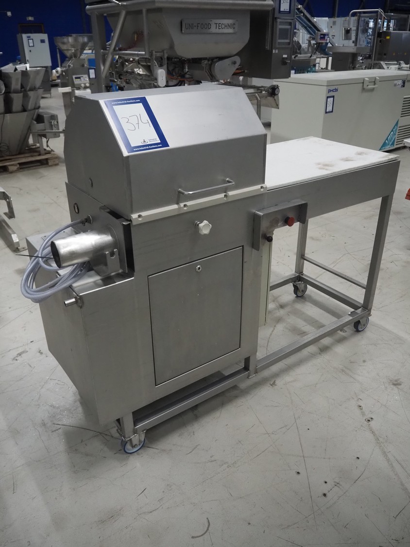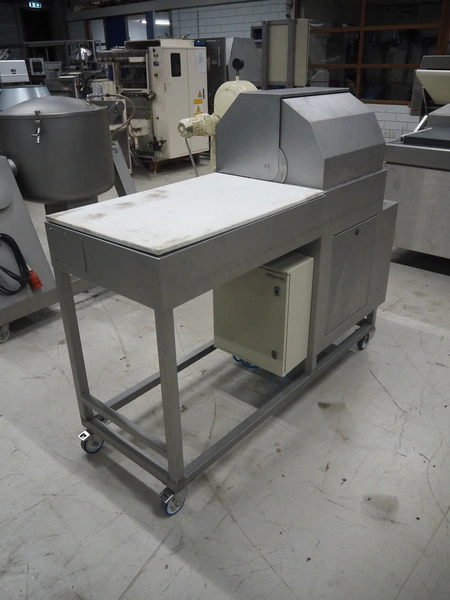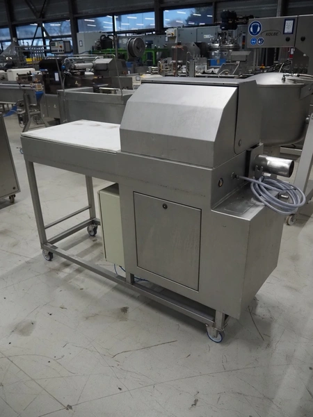 Mobile meat press, diameter press: 100 mm, total dimensions: 1800 mm x 580 mm x 1460 mm.