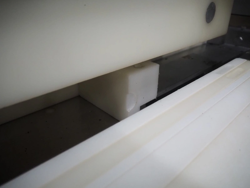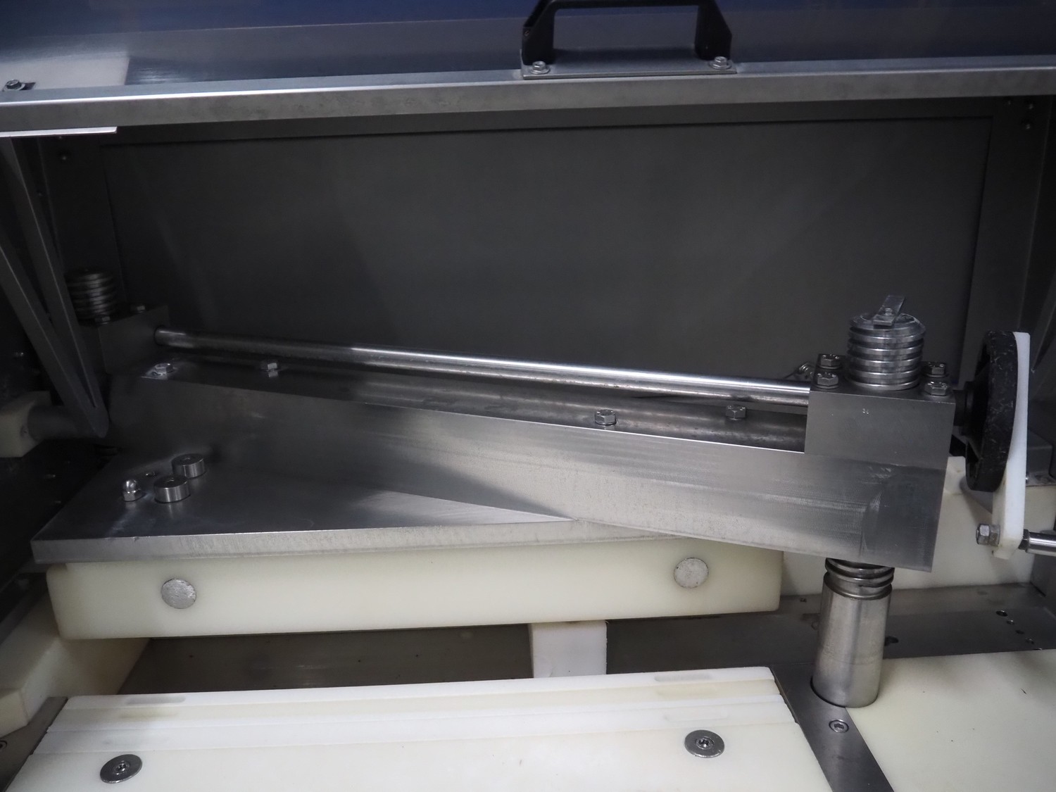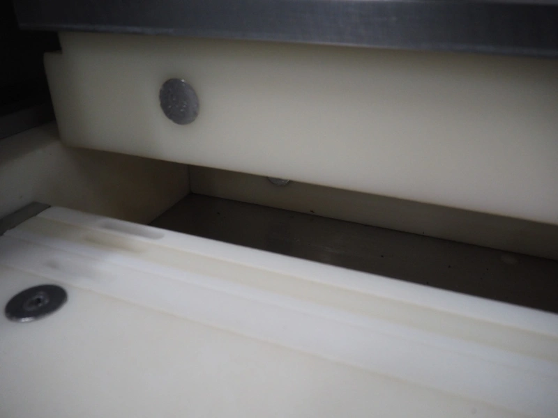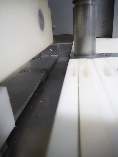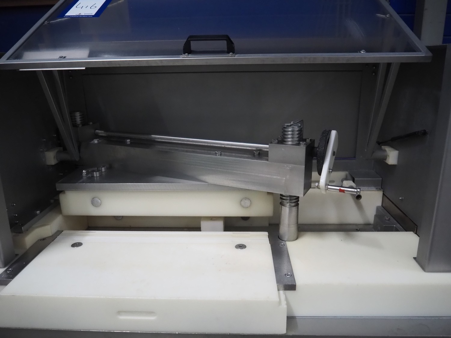 Hoegger AG meat press, type: SP-280 890, machine number: 7105, year of construction: 1997, 240 V, 50 Hz, 0.5 kW, dimensions: 2500 mm x 830 mm x 1700 mm.