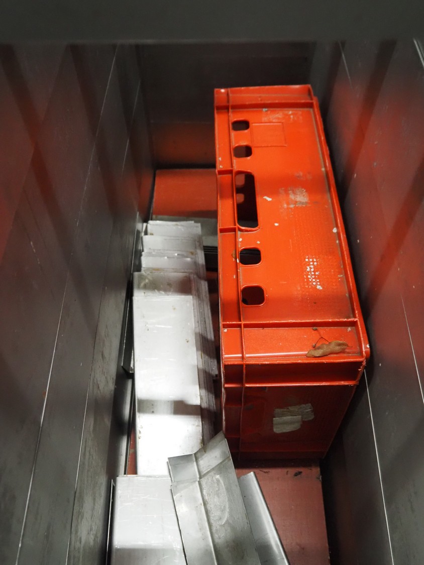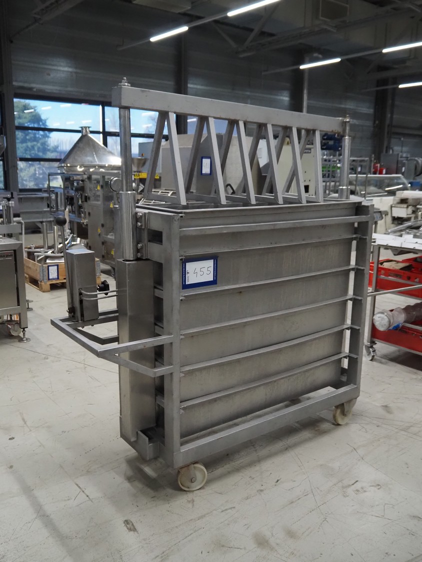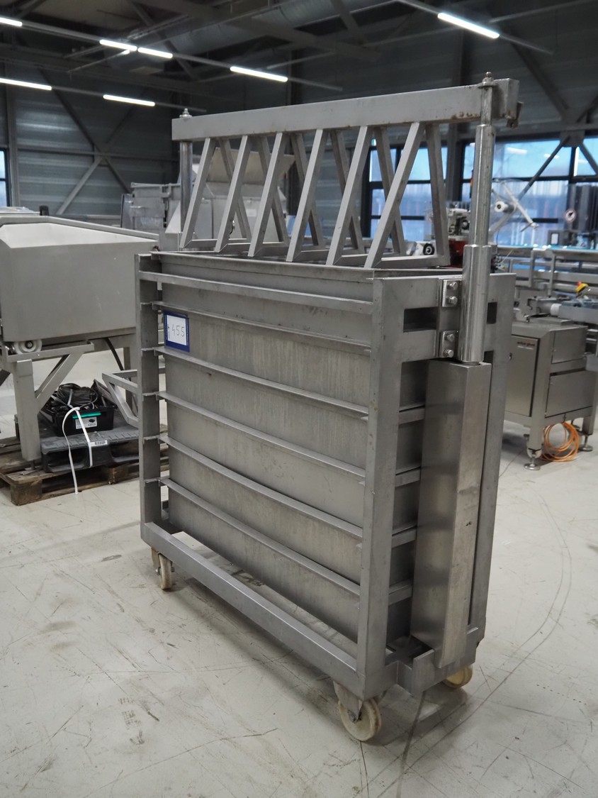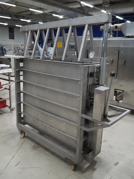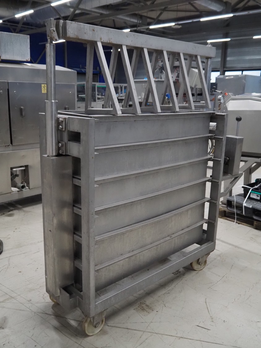Mobile meat press, dimensions: 1800 mm x 600 mm x 950 mm.