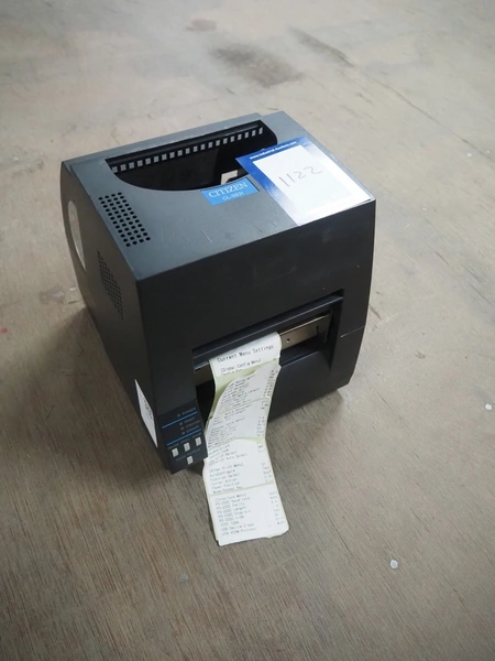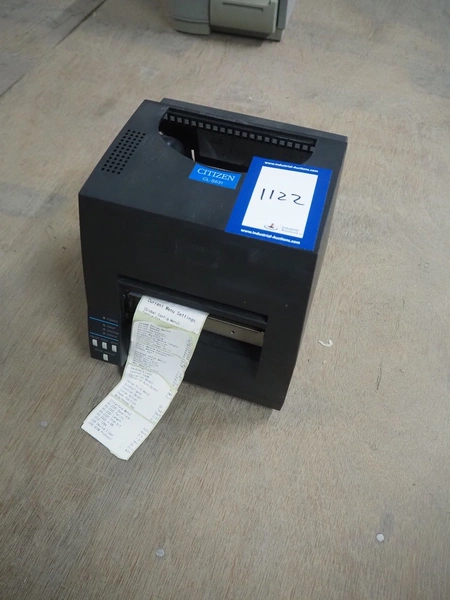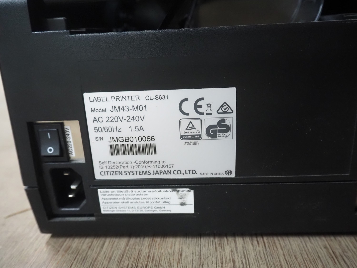 Citizen Systems label printer, model: JM43-M01, serial number: JMGB010066, 220-240 V, 50/60 Hz, 1.5 A, dimensions: 270 mm x 230 mm x 260 mm.