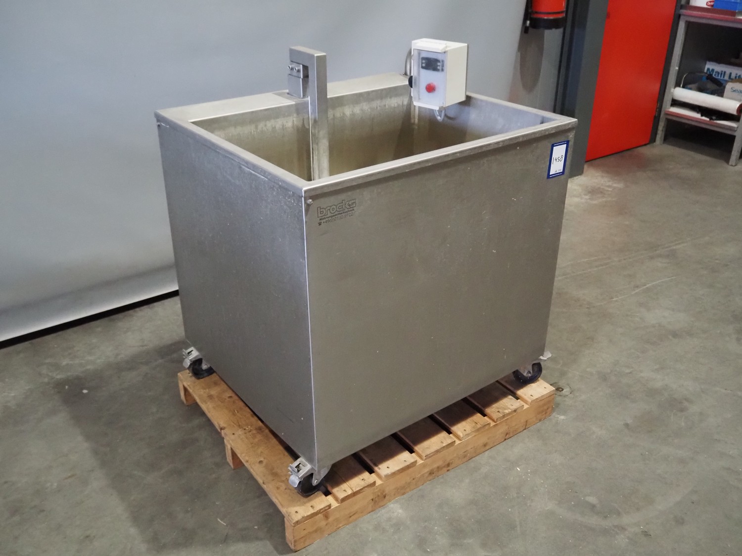 Henkelman mobile diptank, type: DT100, inside dimensions: 600 mm x 800 mm x 220 mm, total dimensions: 880 mm x 1000 mm x 1320 mm.