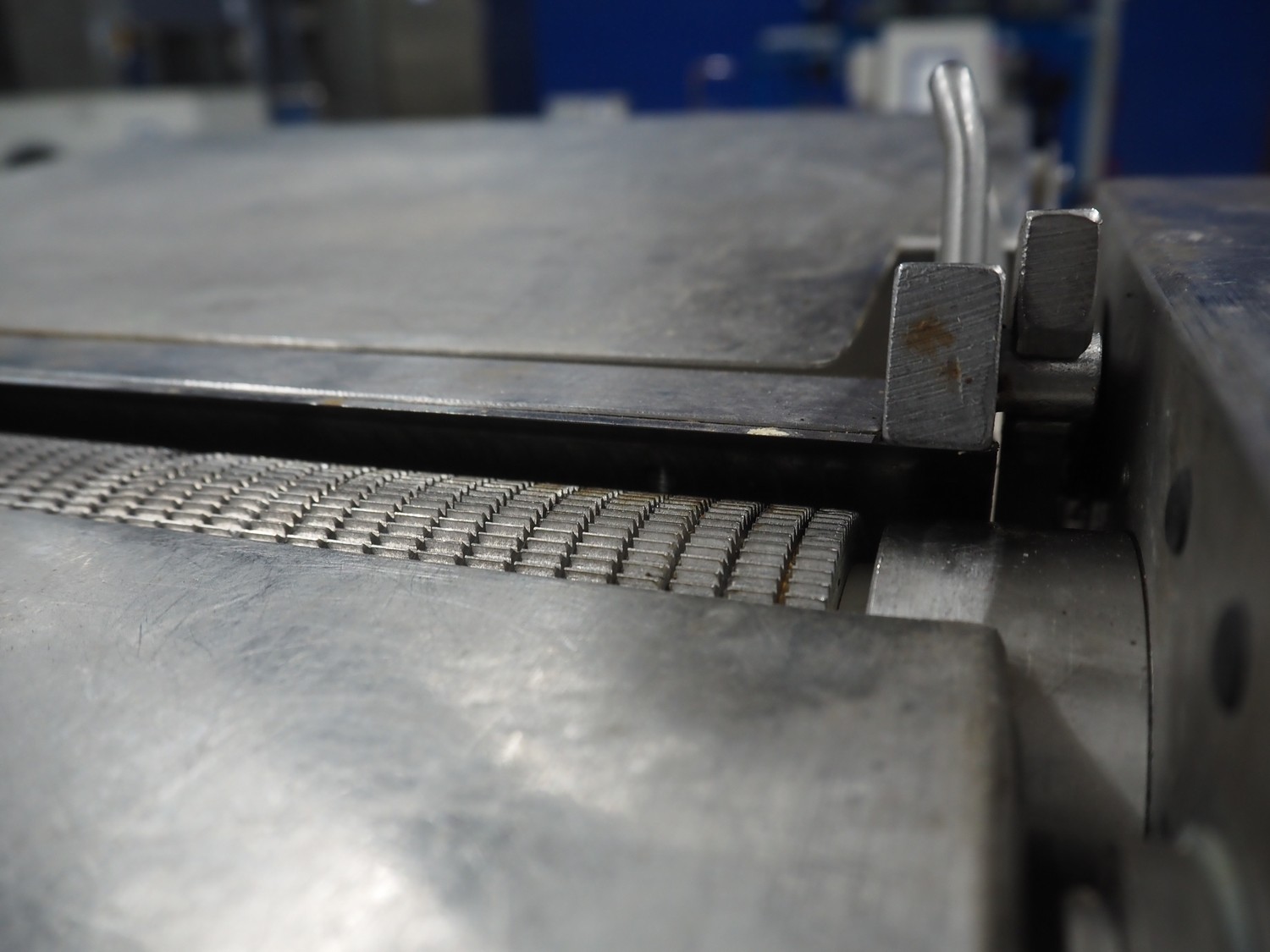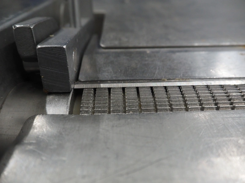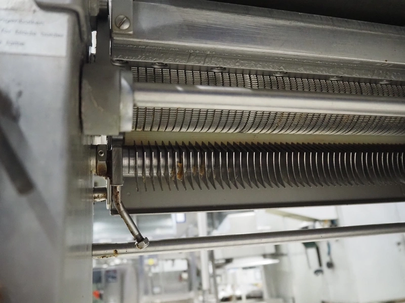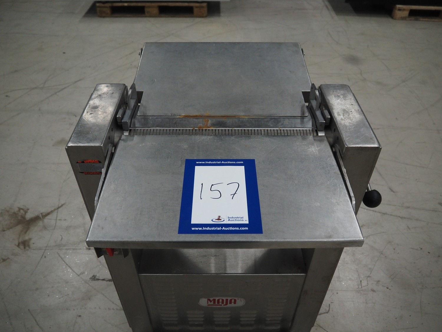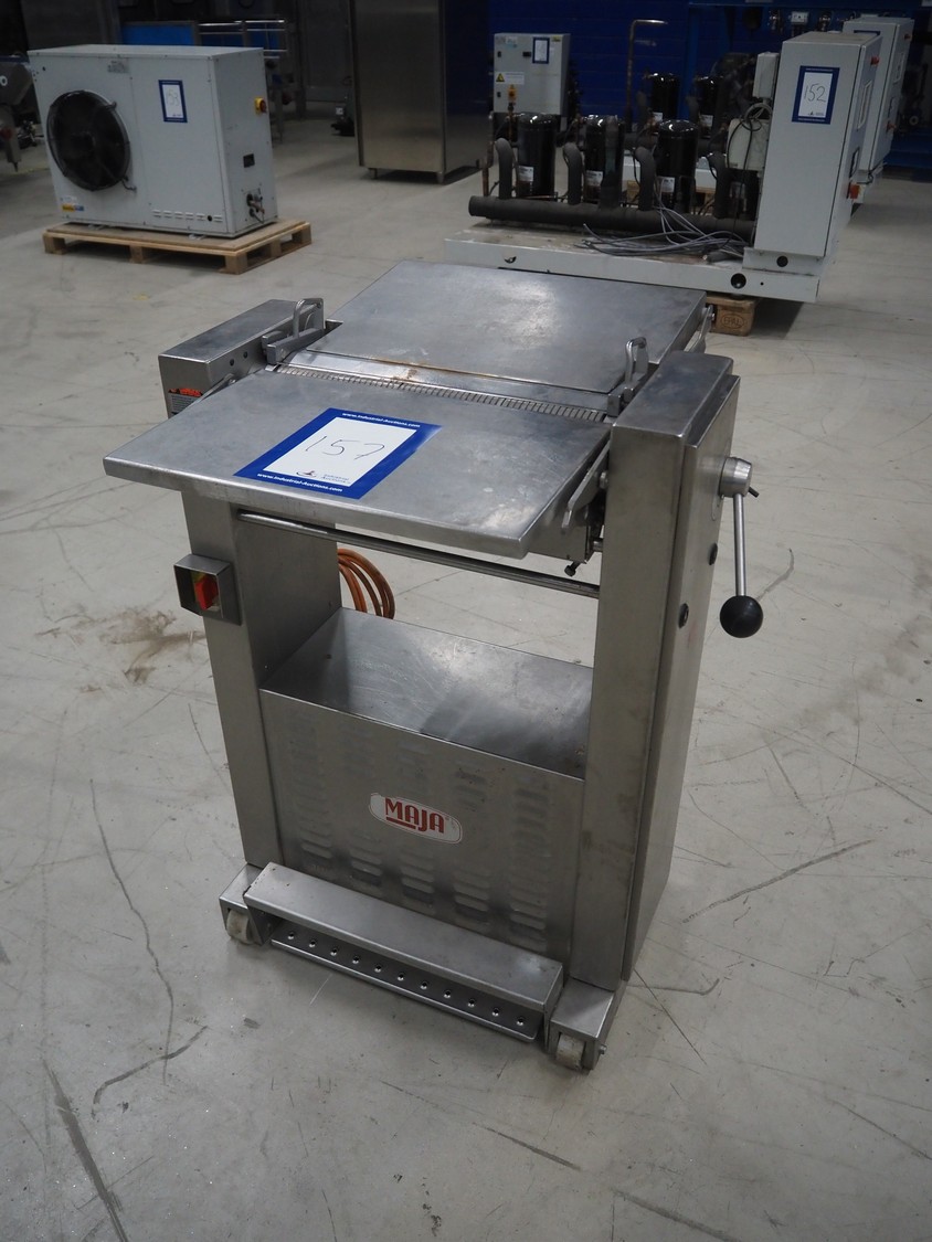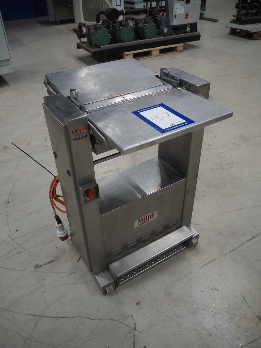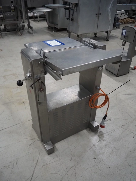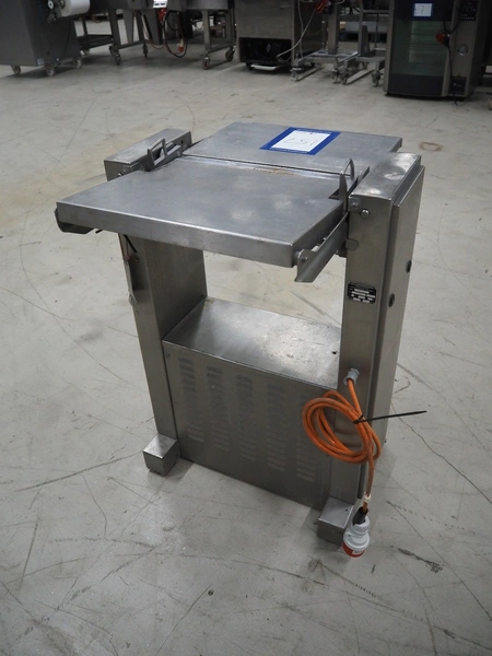 Maja Maschinenfabrik mobile skinning machine, type: EVM 437, number: 36305, year of construction: 1992, 380 V, 3 Ph, 50 Hz, 2.2 A, 0.75 kW, working width: 420 mm, total dimensions: 780 mm x 720 mm x 1000 mm.