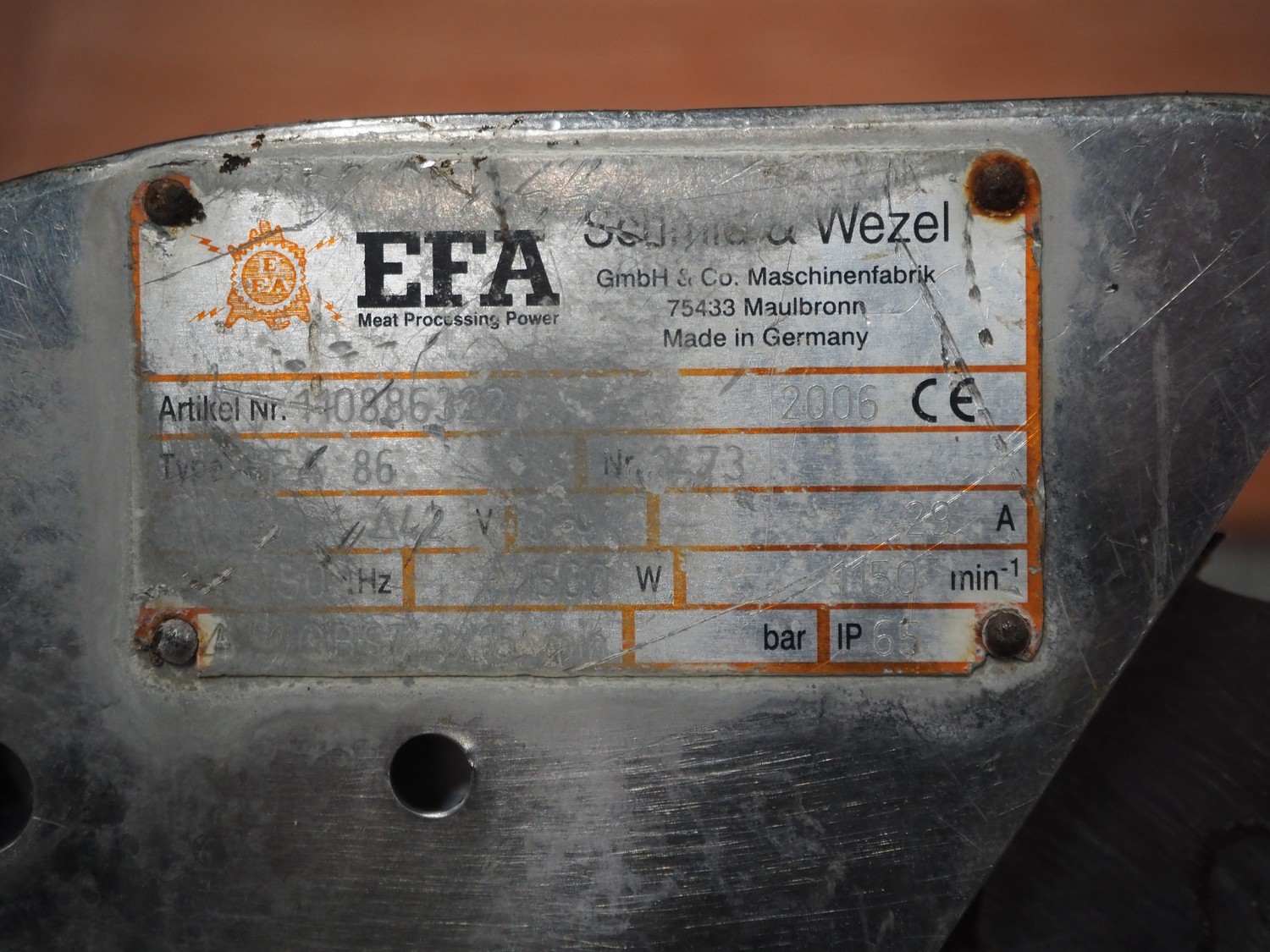 Schmidt & Wezel EFA breaking saw, type: EFA 86, number: 1473, year of construction: 2006, diameter saw: 200 mm, total dimensions: 600 mm x 230 mm x 230 mm. Including balancer.
