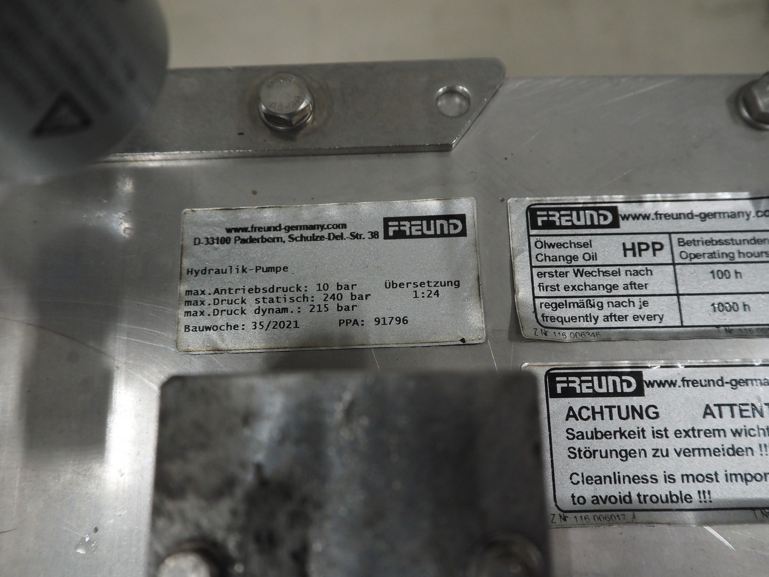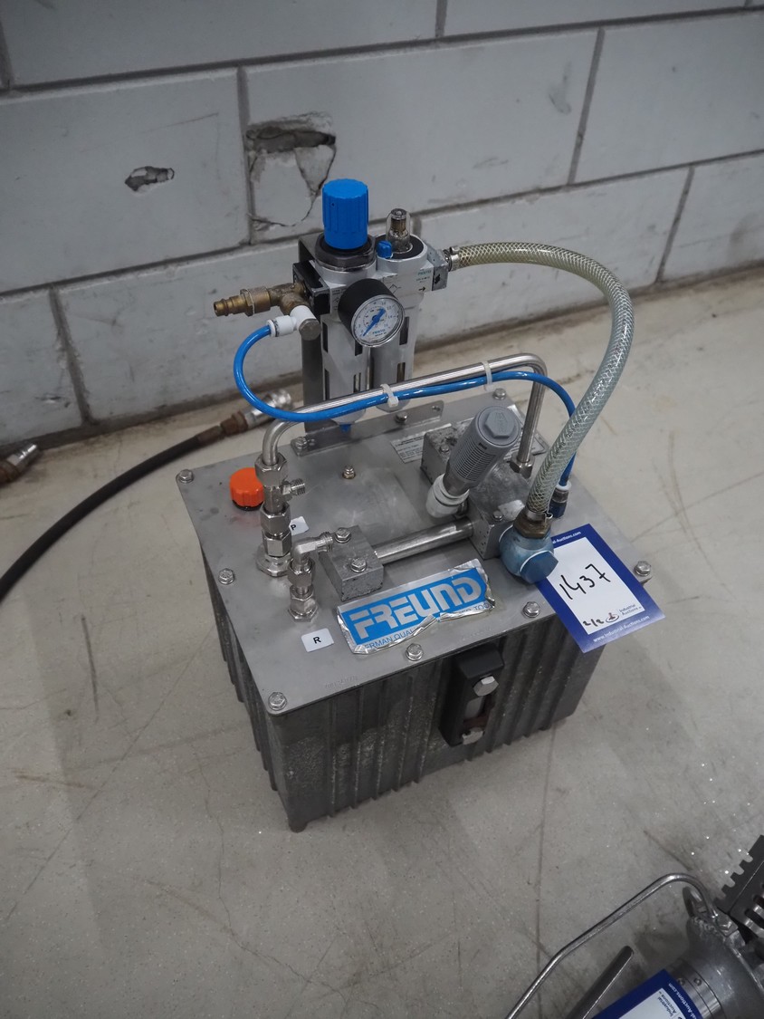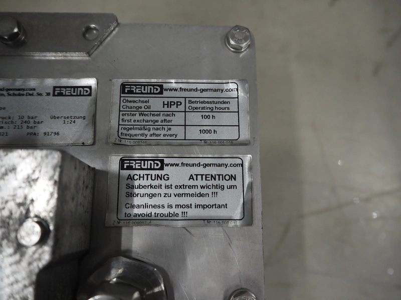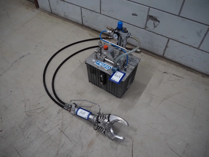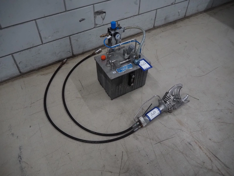 Freund leg cutter, year of construction hydraulic unit: 2021, dimensions: 300 mm x 300 mm x 500 mm, dimensions leg cutter: 450 mm x 150 mm x 150 mm.