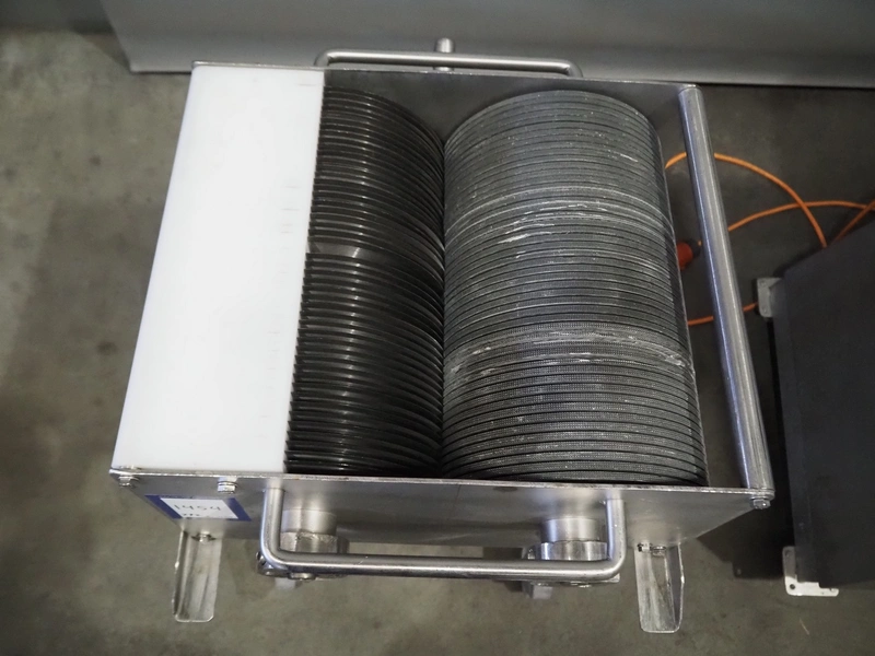Franz Anlagenbau GmbH strip cutter, type: MS 191 / 400-15, serial number: 19019, 380 V, 5.5 A, 2.25 kW, approximately 50 knives, total dimensions: 1170 mm x 520 mm x 1670 mm. Including knive trolley.