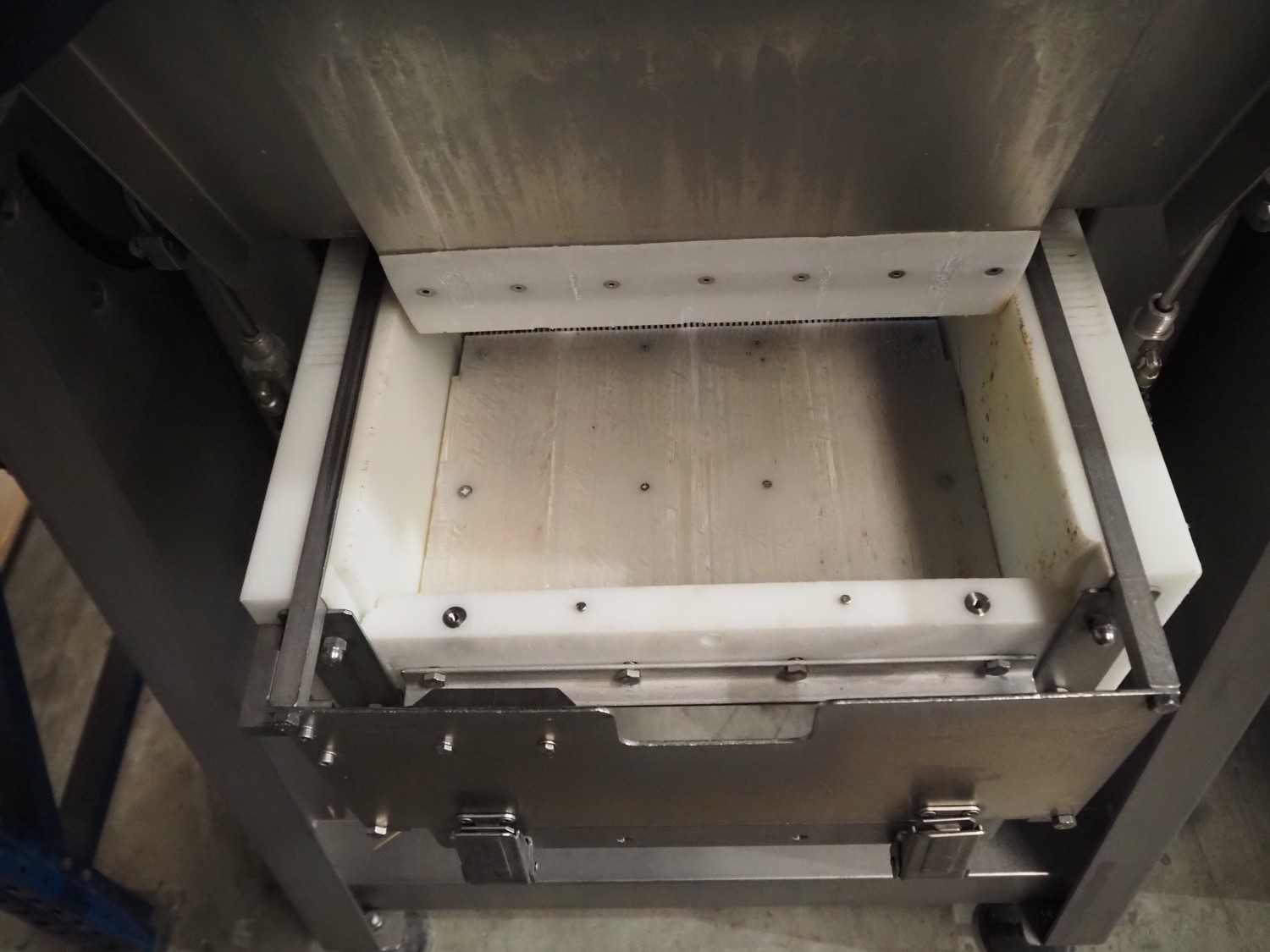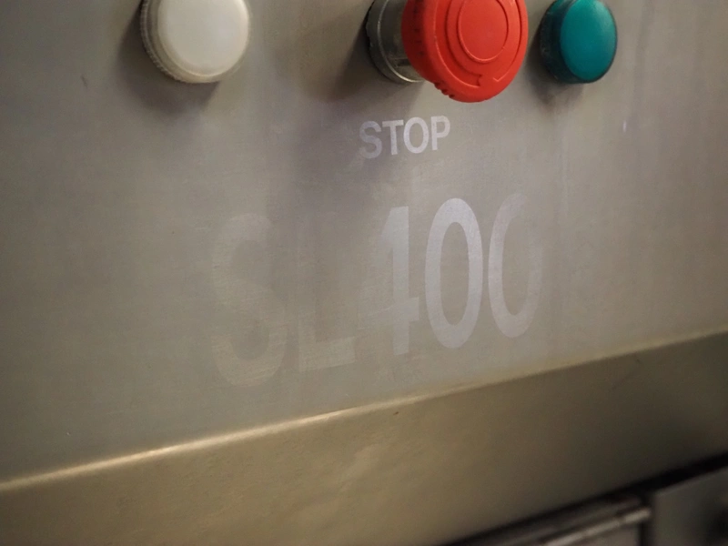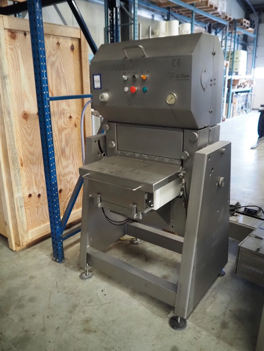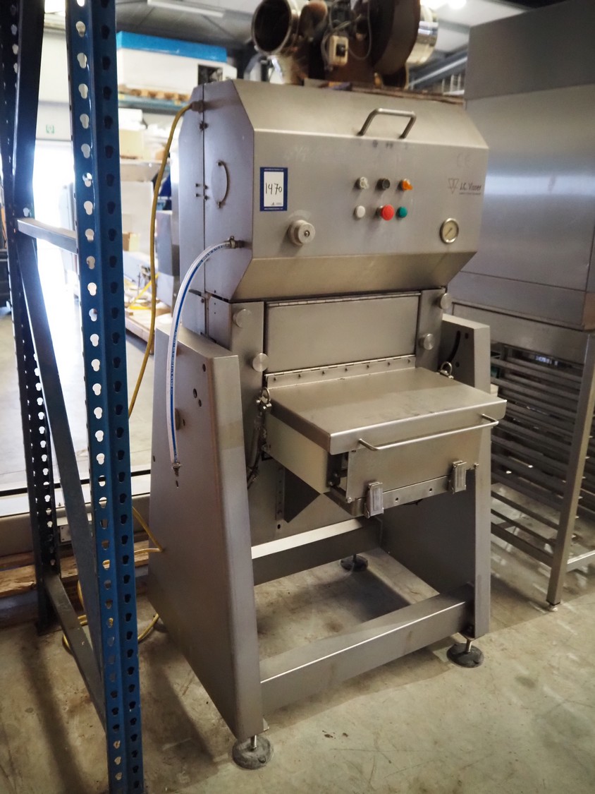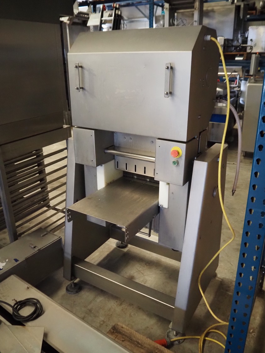 Grasselli slicer, type: SL400, 400 V, 50 Hz, weight: +/- 250 kg, knife distance: 5 mm, total dimensions: 1000 mm x 1000 mm x 1790 mm.