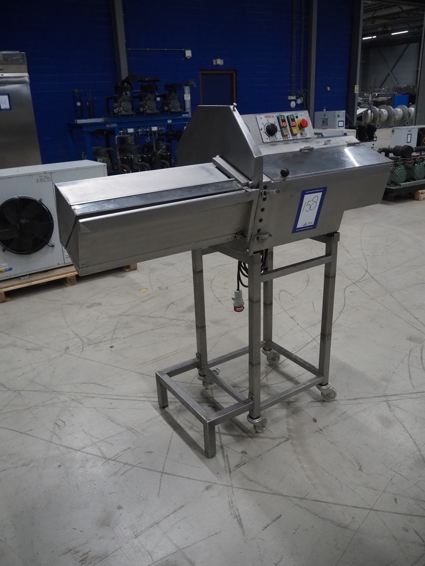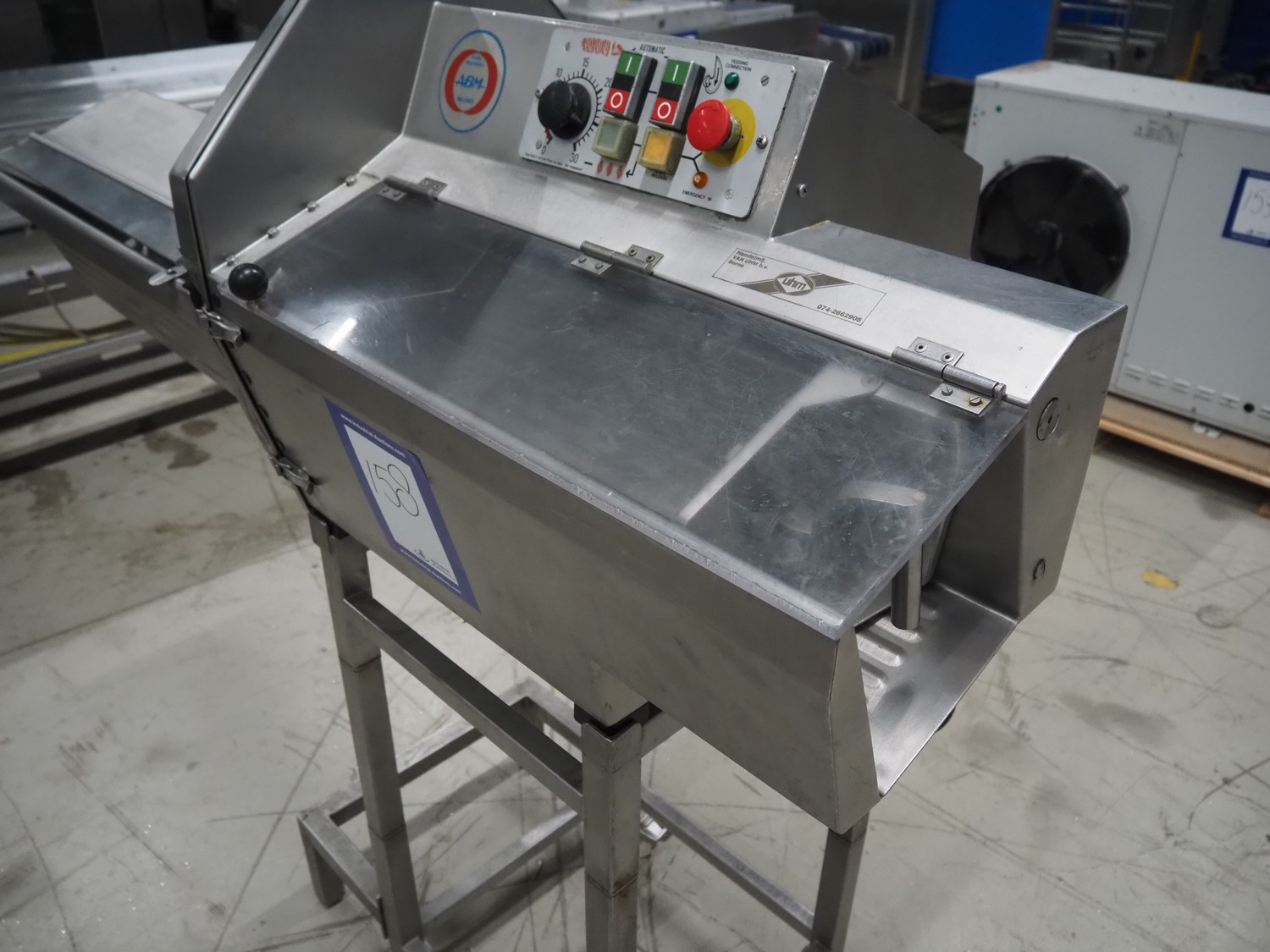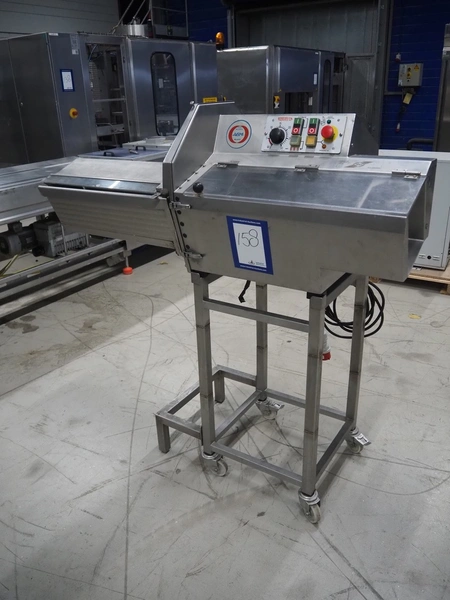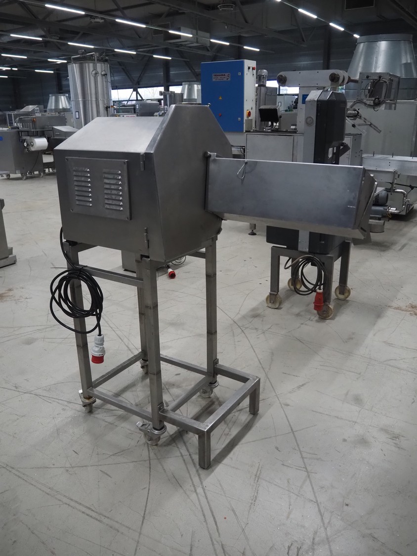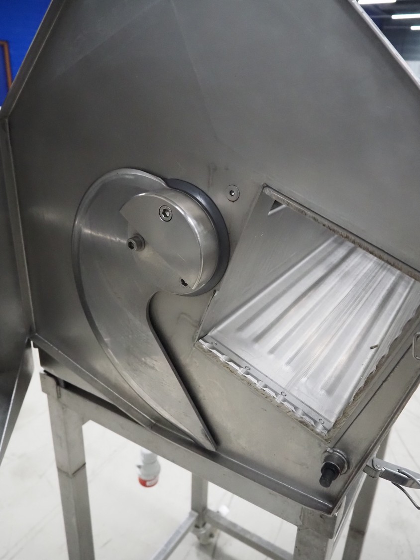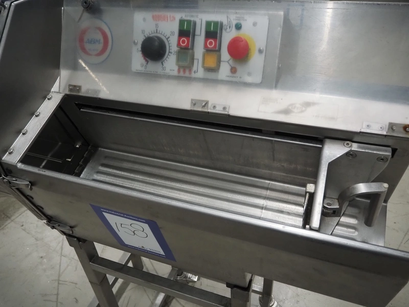 AMB mobile slicer, type: 750L/5.50, machine number: 9212738, year of construction: 1992, 380 V, 3 Ph, 50 Hz, 3.5/10 A, chamber: 180 mm x 200 mm, total dimensions: 1470 mm x 600 mm x 1500 mm.