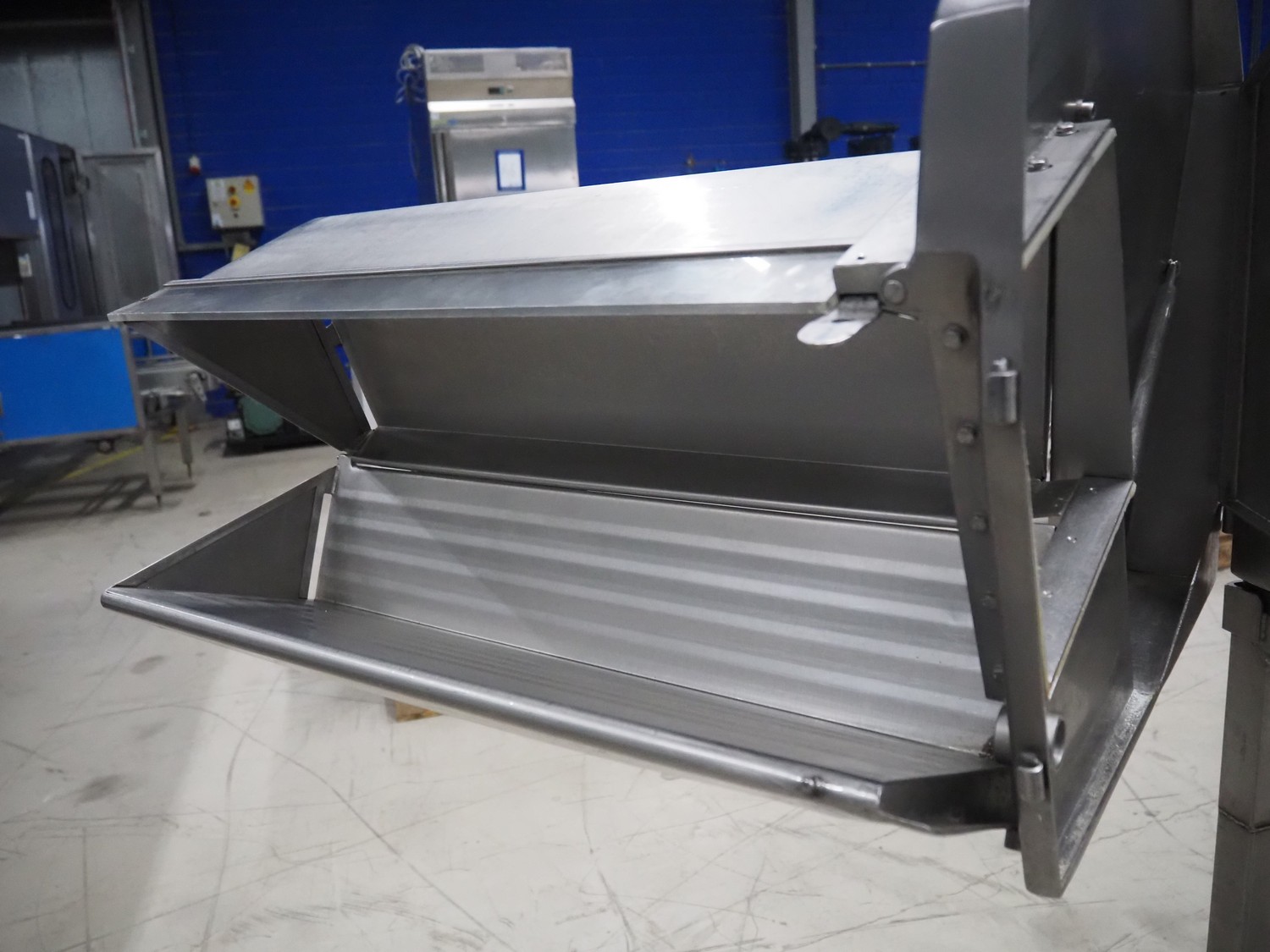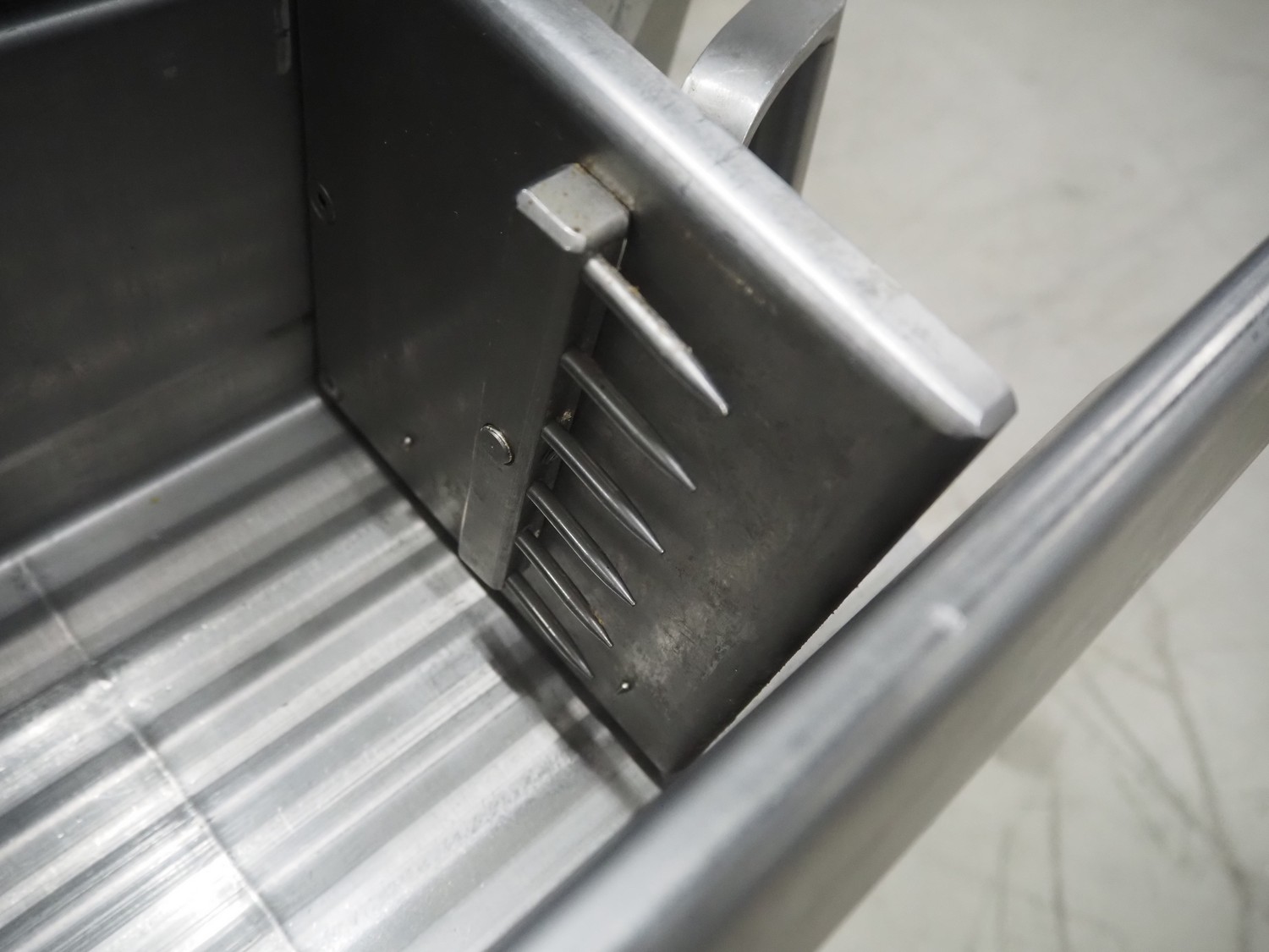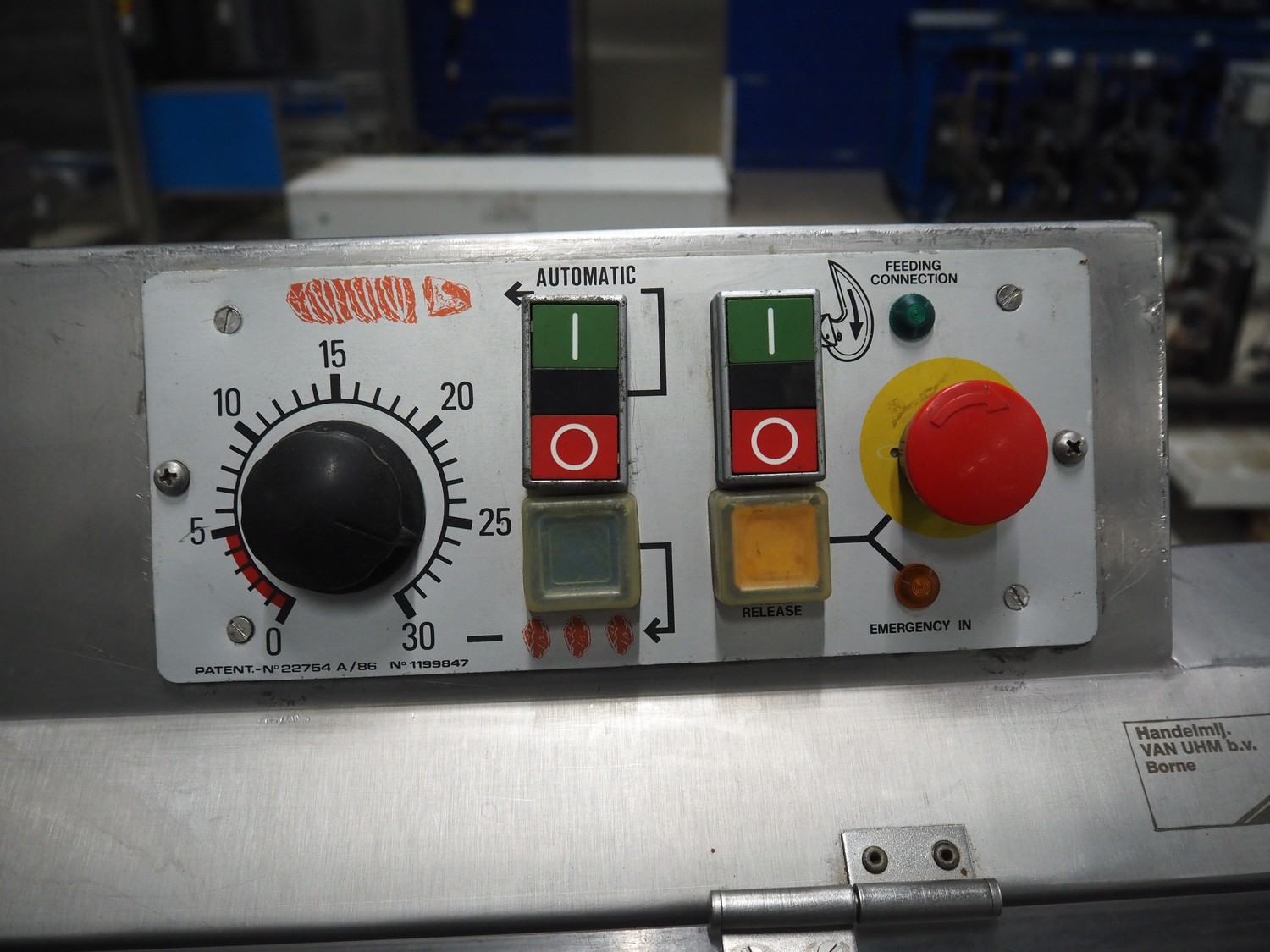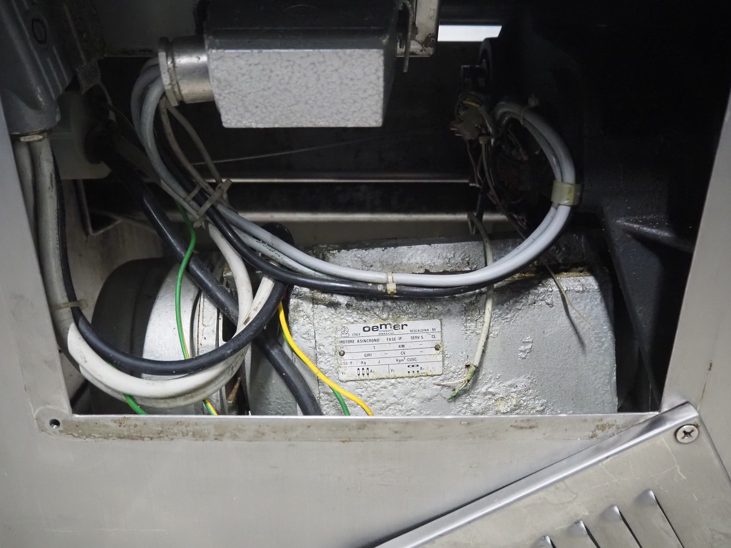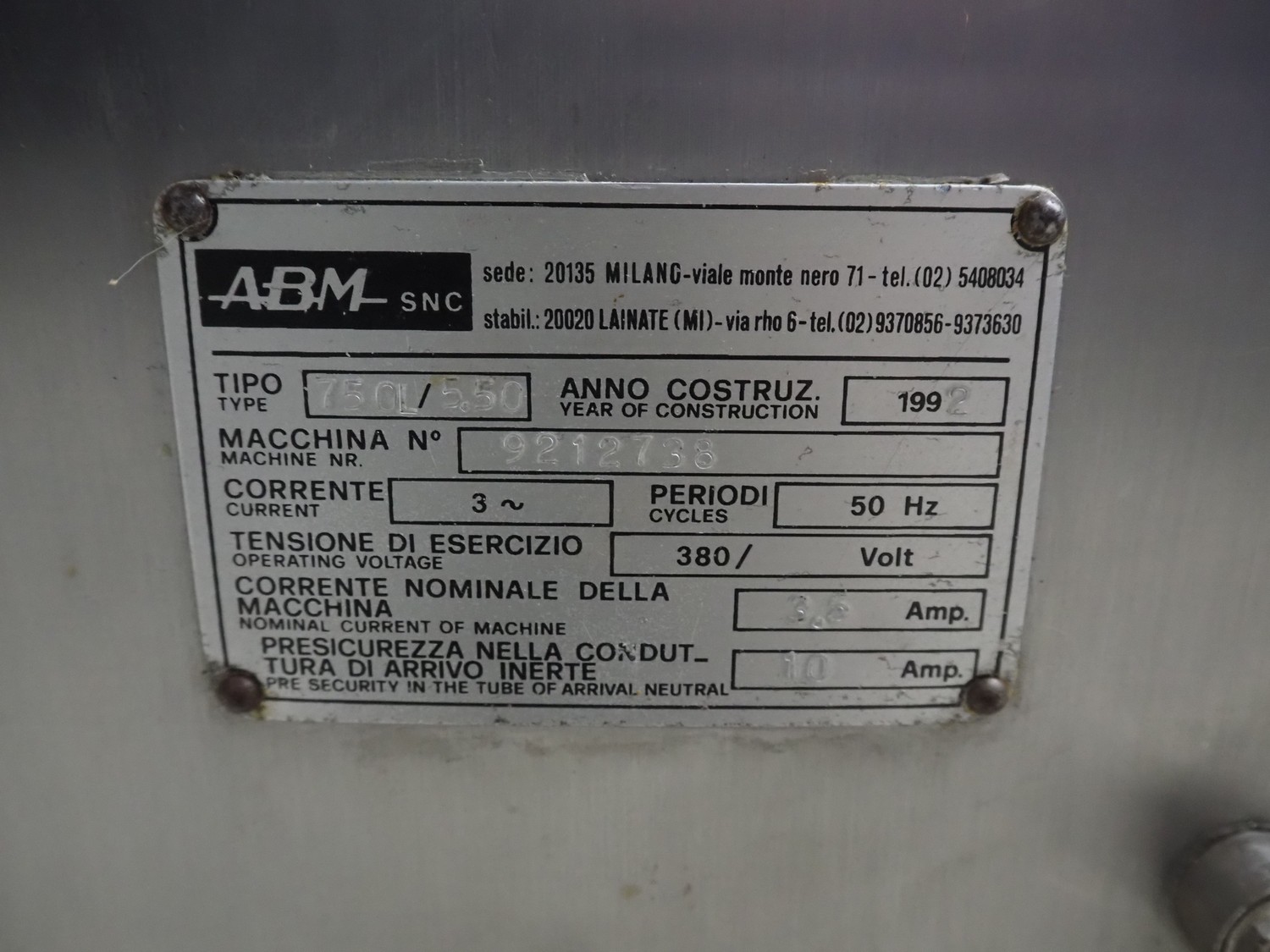 AMB mobile slicer, type: 750L/5.50, machine number: 9212738, year of construction: 1992, 380 V, 3 Ph, 50 Hz, 3.5/10 A, chamber: 180 mm x 200 mm, total dimensions: 1470 mm x 600 mm x 1500 mm.