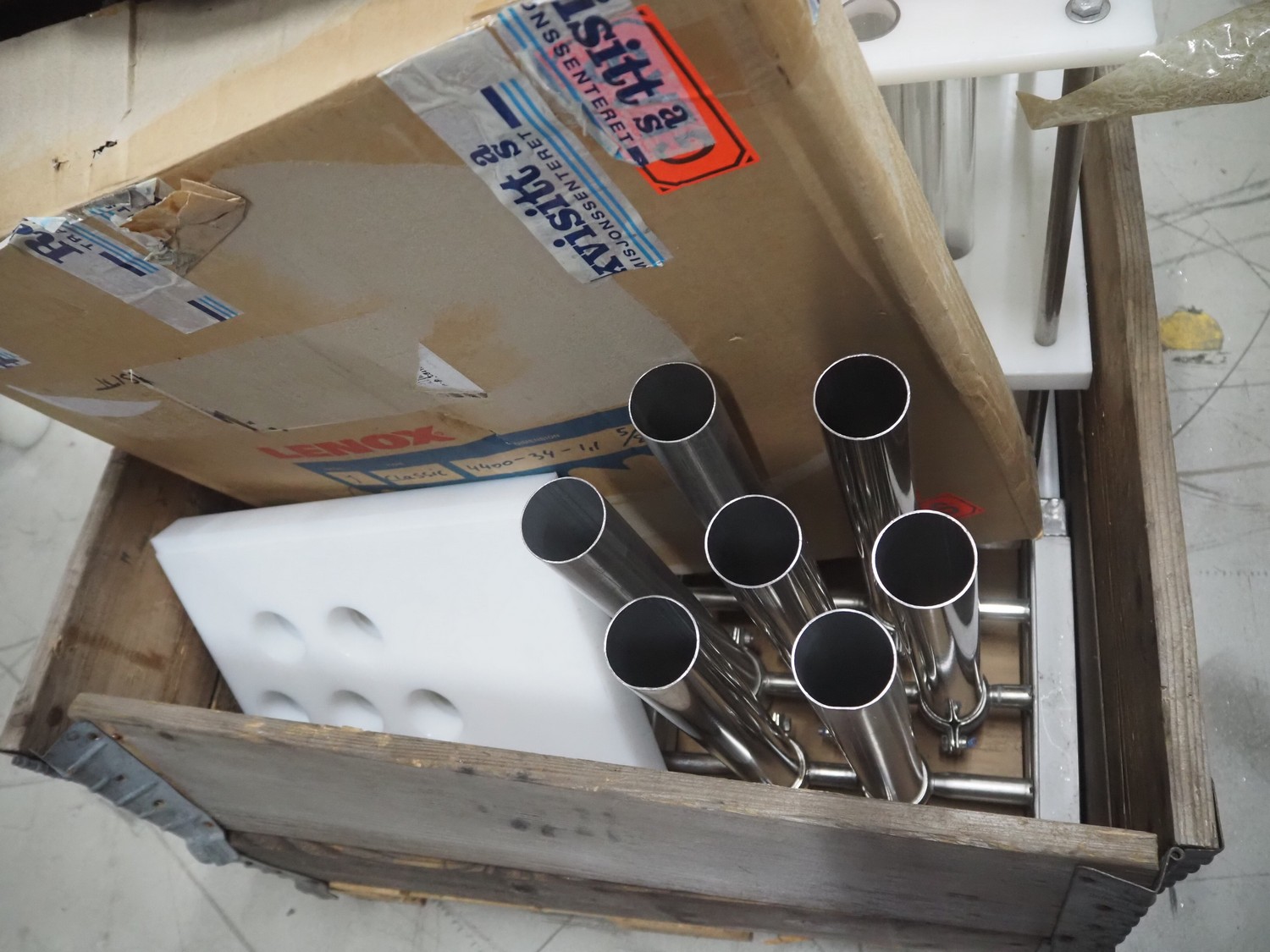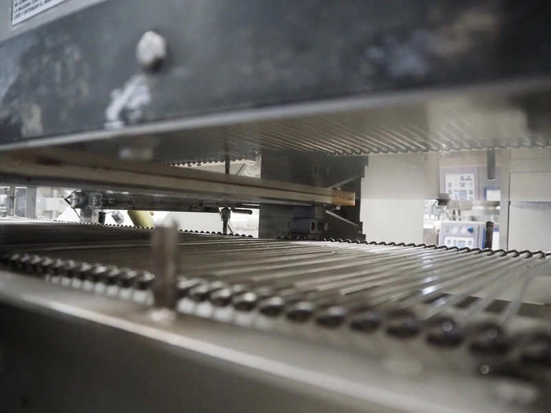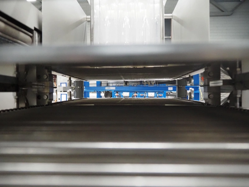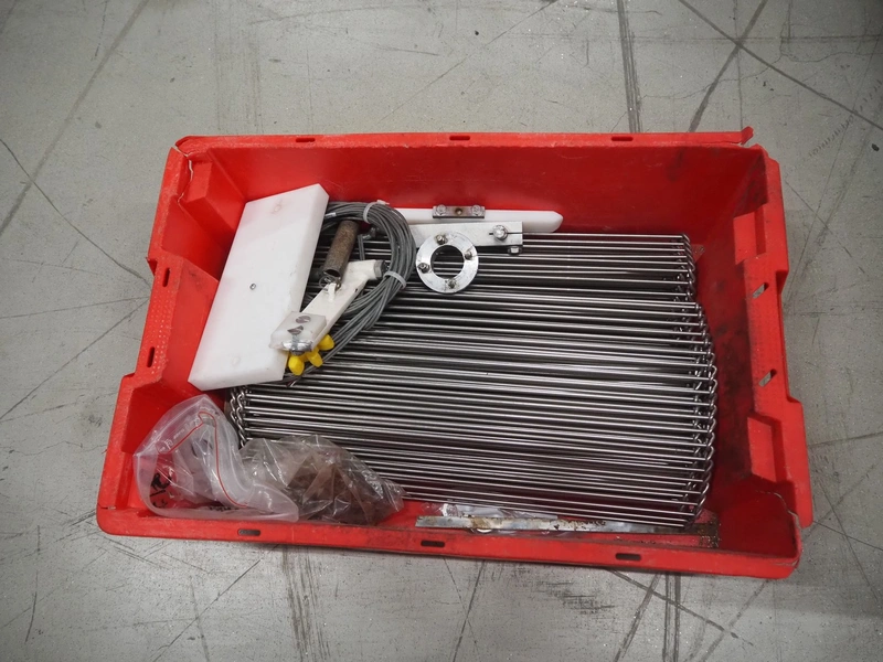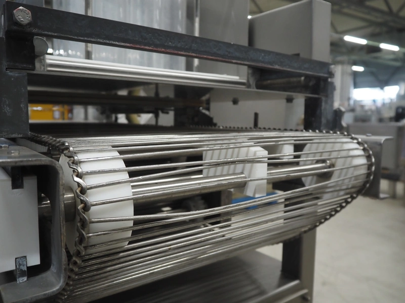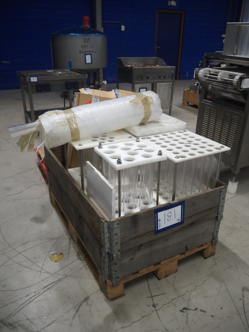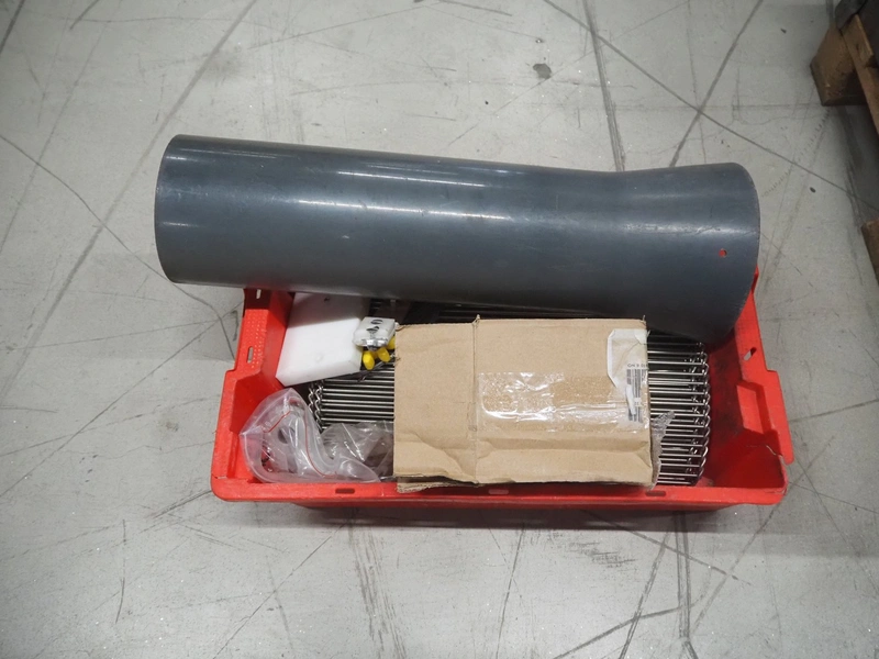 Grote pepperoni slicer, model: FG101-2001, serial number: 1087319, s/s mesh belt, belt width: 460 mm, knife width: 470 mm, diameter pipes: (10x) 50 mm, total dimensions: 1570 mm x 1230 mm x 1840 mm. Including pallet with parts.