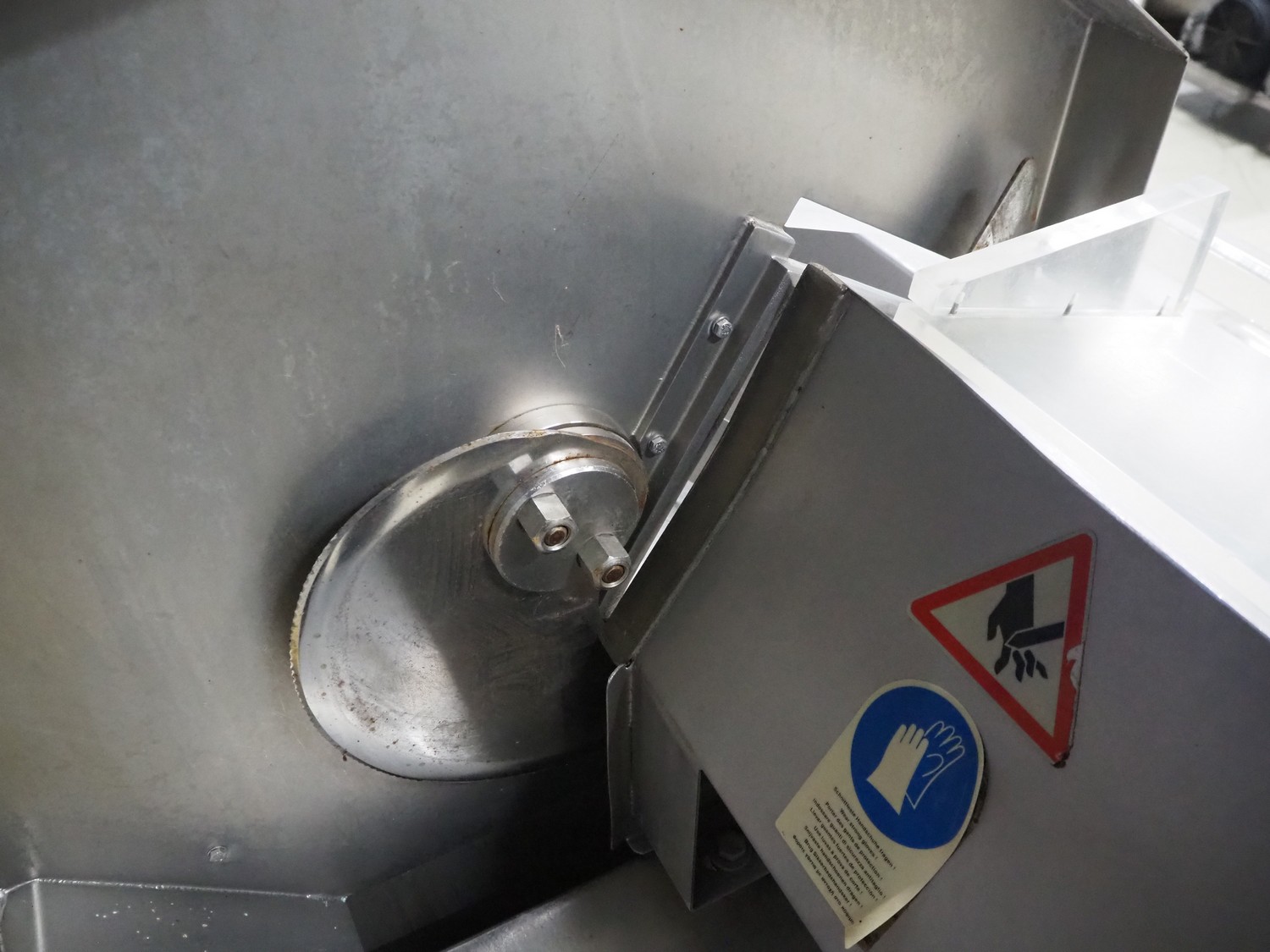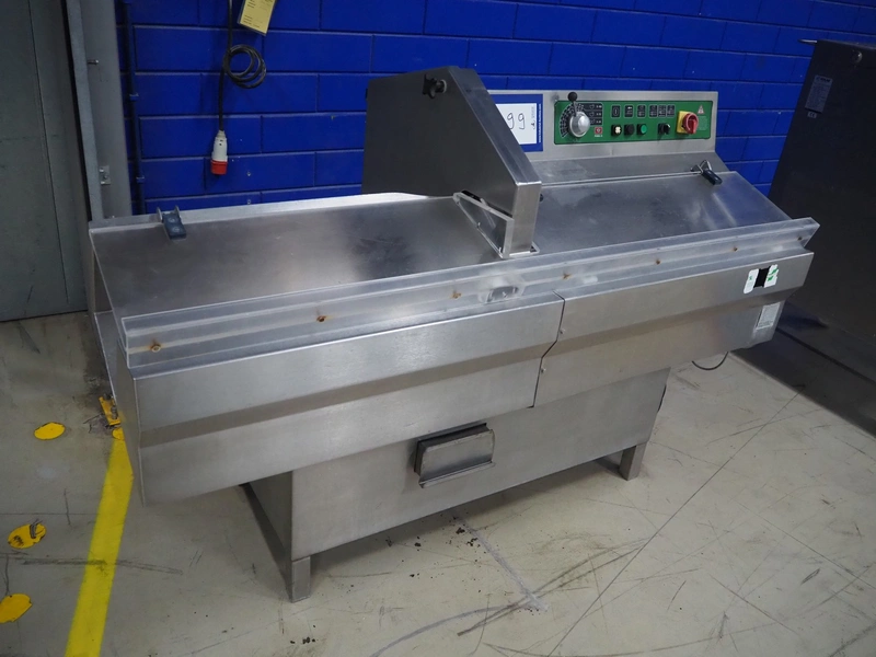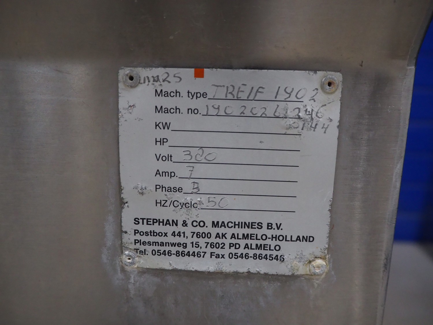 Treif mobile slicer, model: Puma-s, number: 19020261246144, 380 V, 3 Ph, 50 Hz, 7 A, chamber: 250 mm x 225 mm, total dimensions: 1820 mm x 850 mm x 1300 mm.