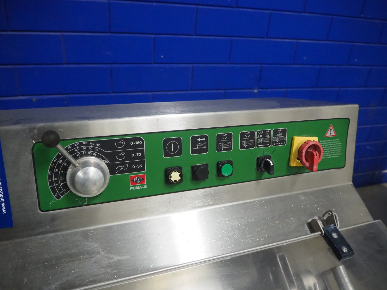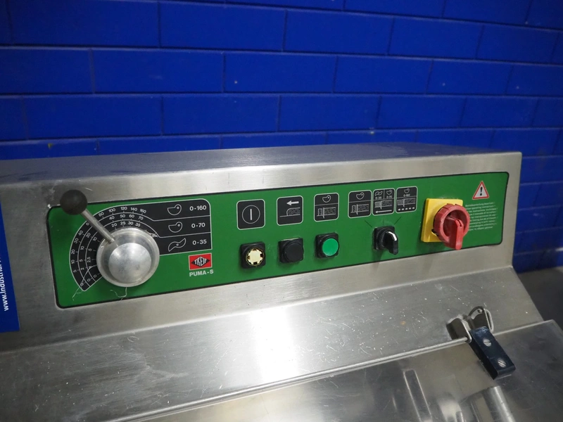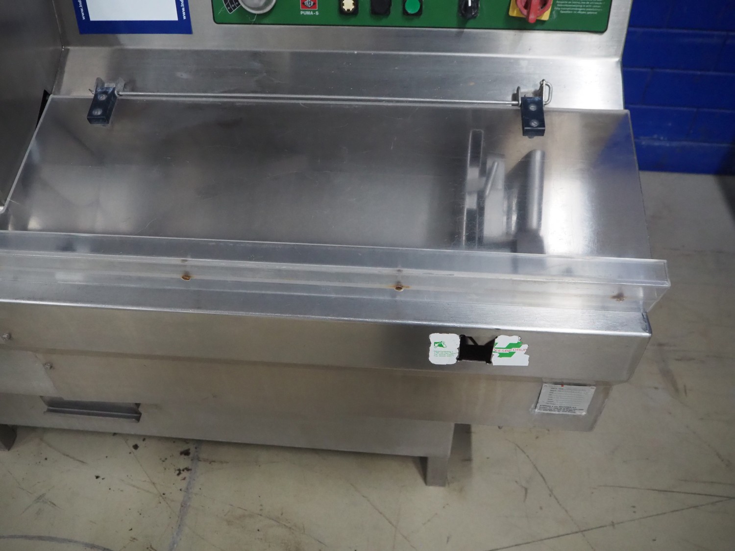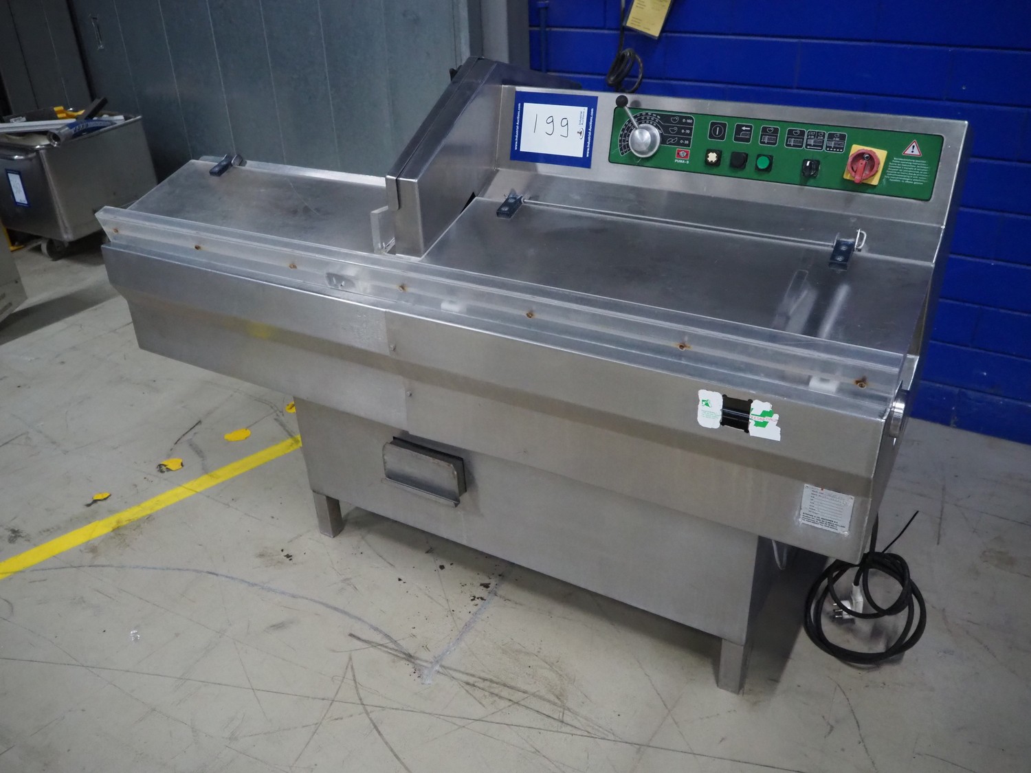 Treif mobile slicer, model: Puma-s, number: 19020261246144, 380 V, 3 Ph, 50 Hz, 7 A, chamber: 250 mm x 225 mm, total dimensions: 1820 mm x 850 mm x 1300 mm.