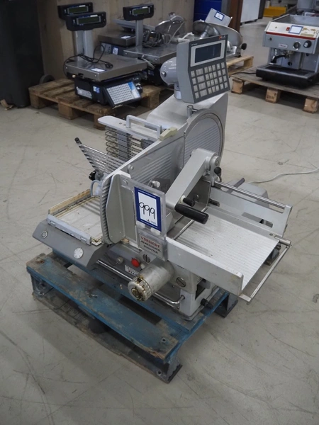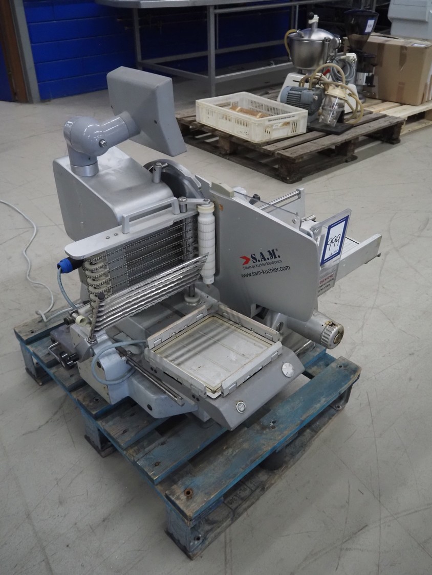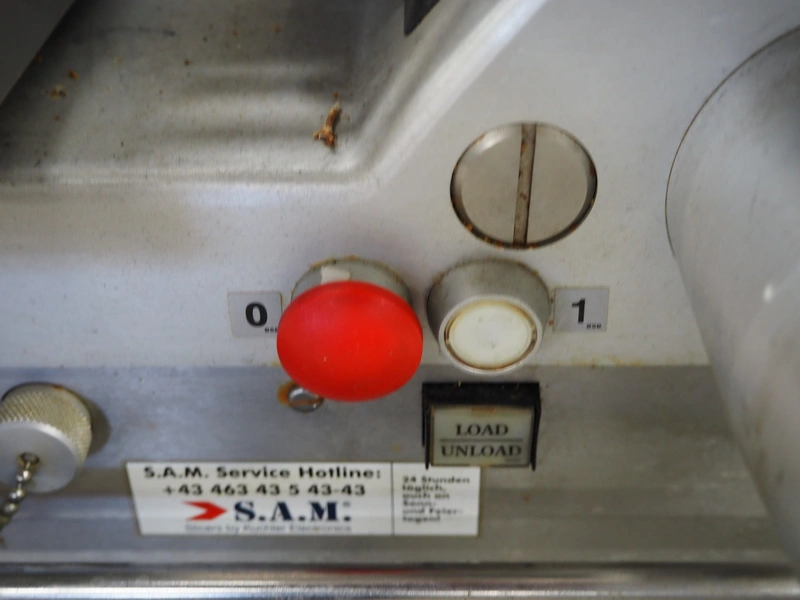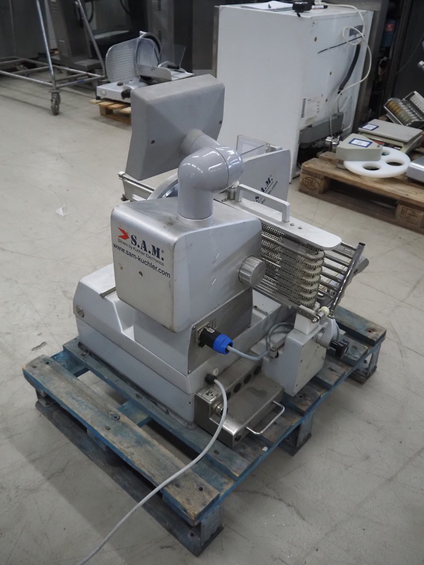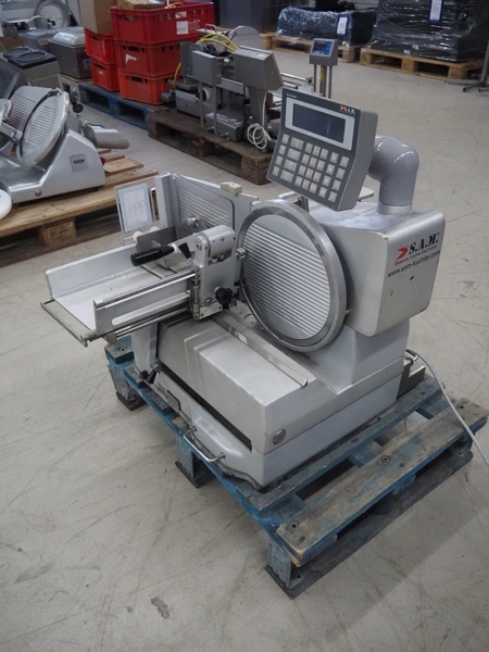 S.A.M. automatic slicer, model: S.A.M. 310i T21, serial number: 19813, year of construction: 2005, 3.3 A, dimensions: 800 mm x 700 mm x 700 mm.
